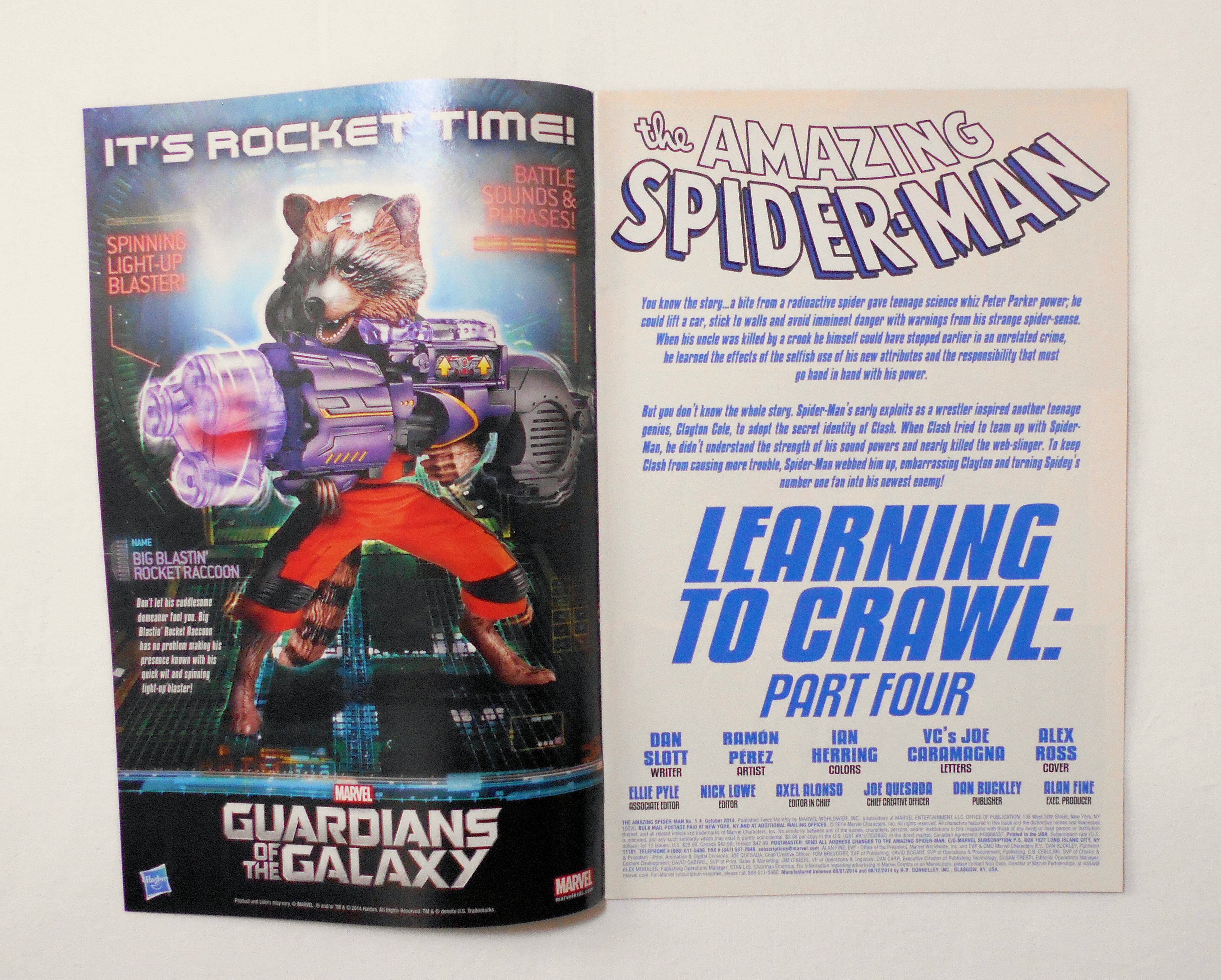 【THE AMAZING SPIDER-MAN】NO.1.4 OCT. 2014 LEARNING TO CRAWL: PART FOUR◆中古アメリカン・コミック。英文表記の洋書となります。◆28ページ カラー 大きさ約26×17センチ◆MARVEL WORLDWIDE, INC.