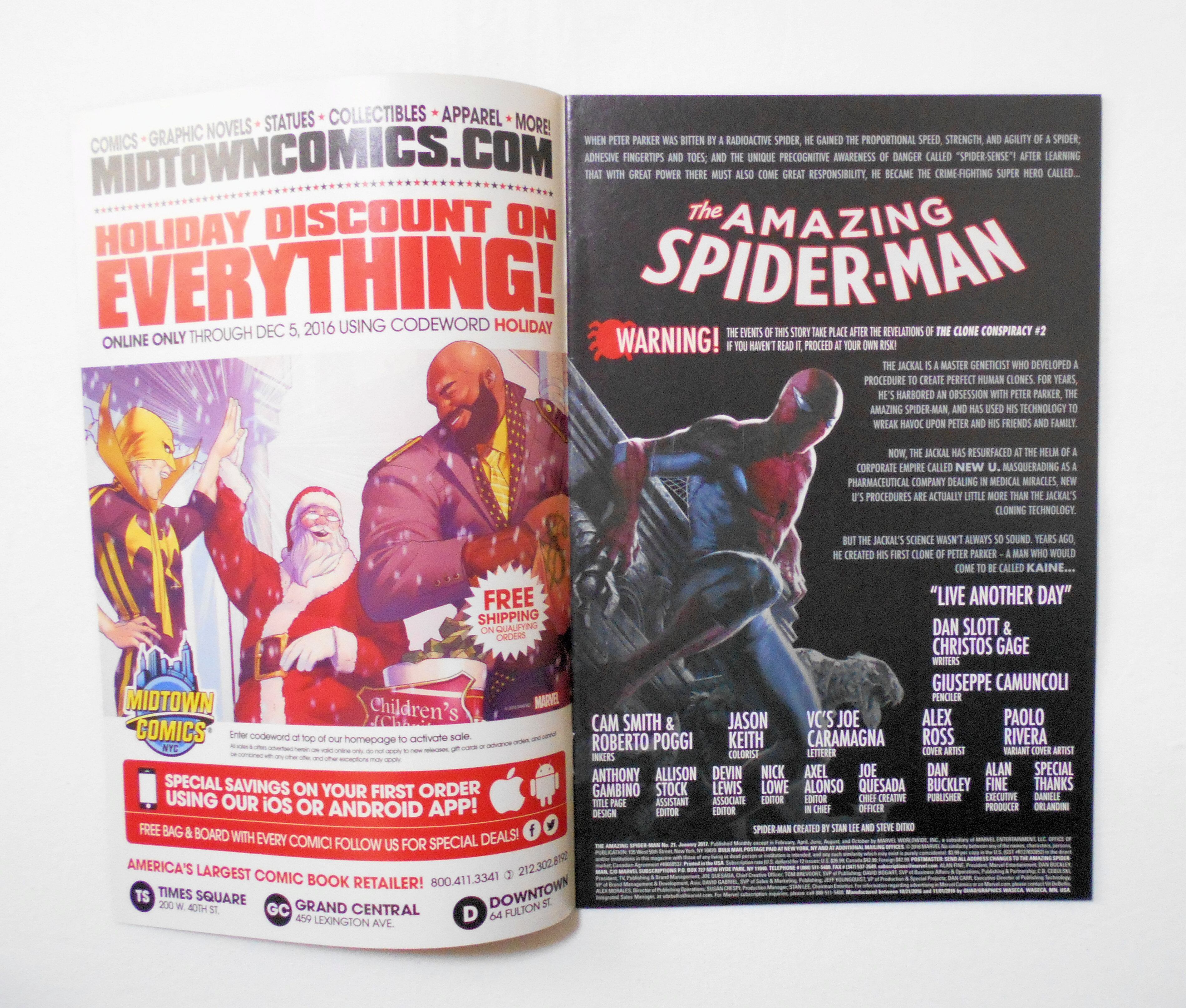 【THE AMAZING SPIDER-MAN A CLONE CONSPIRACY TIE-IN】NO.21 JAN. 2017◆中古アメリカン・コミック。英文表記の洋書となります。◆28ページ カラー 大きさ約26×17センチ◆MARVEL WORLDWIDE, INC.