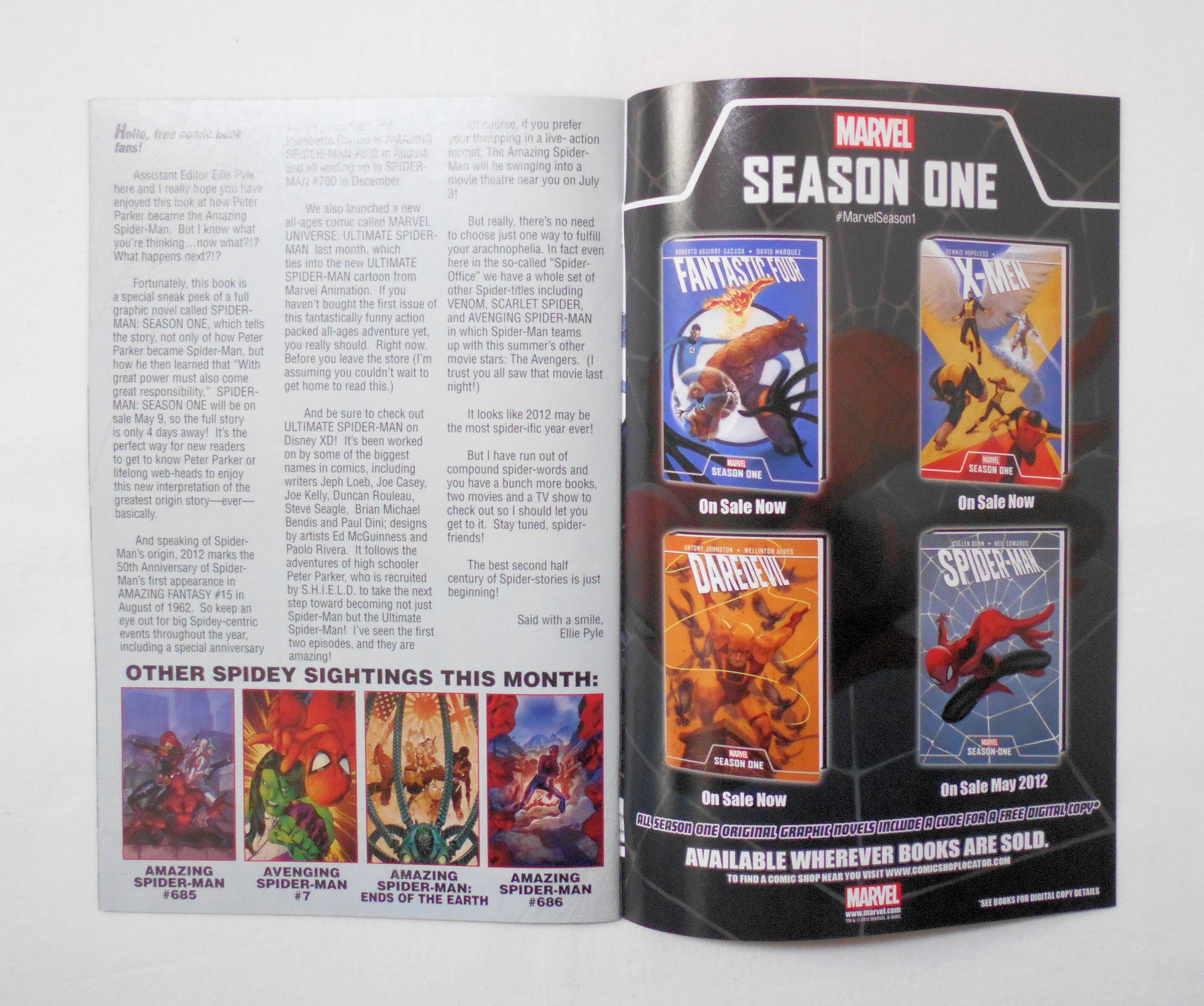 【FREE COMIC BOOK DAY 2012: SPIDER-MAN: SEASON ONE】NO.1 ONE-SHOT◆中古アメリカン・コミック。英文表記の洋書となります。◆32ページ カラー 大きさ約26×17センチ◆MARVEL WORLDWIDE,INC.