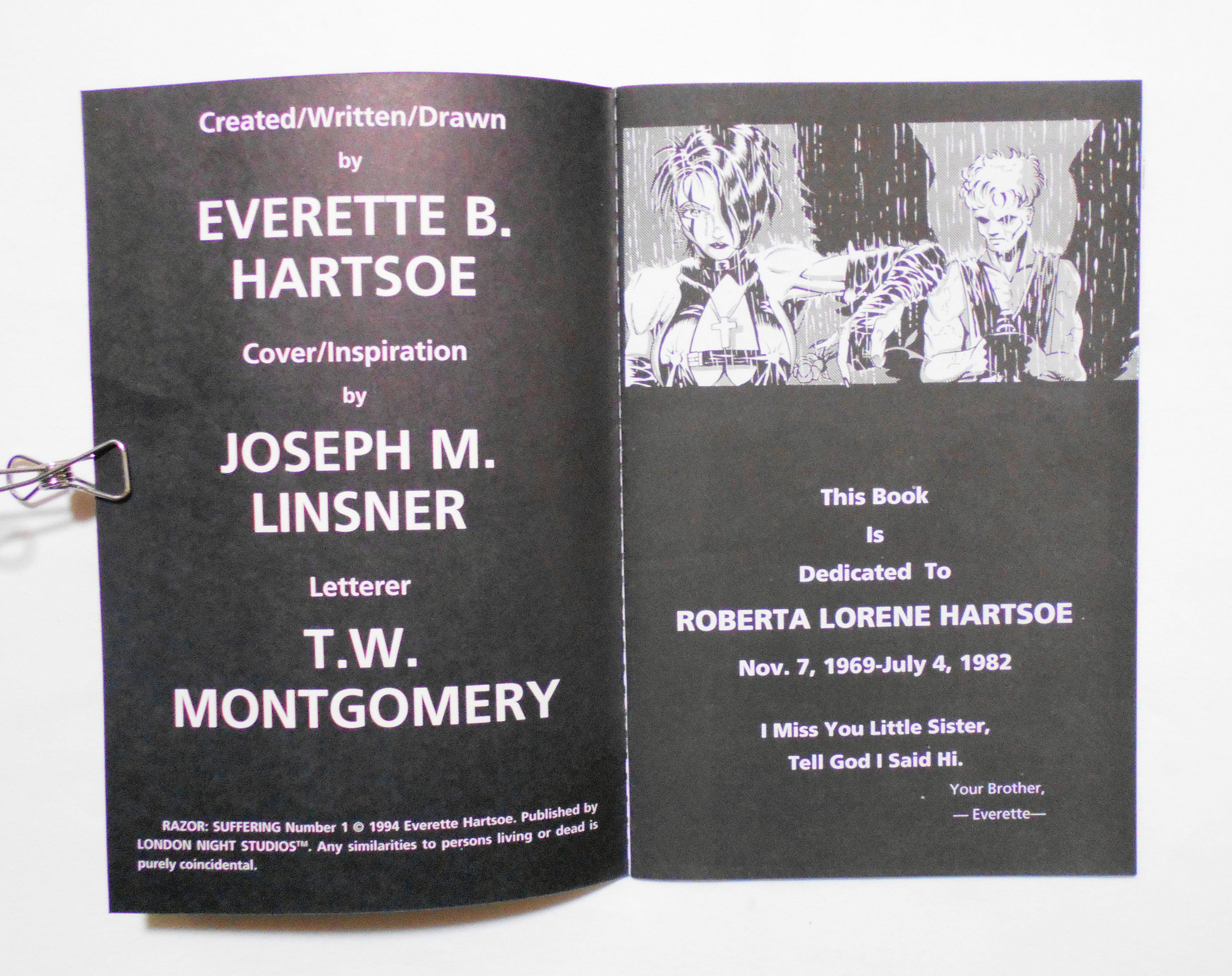【RAZOR: SUFFERING】 NO.1 1994◆中古アメリカン・コミック。英文表記の洋書となります。◆32ページ 白黒 大きさ約26×17センチ◆LONDON NIGHT STUDIOS