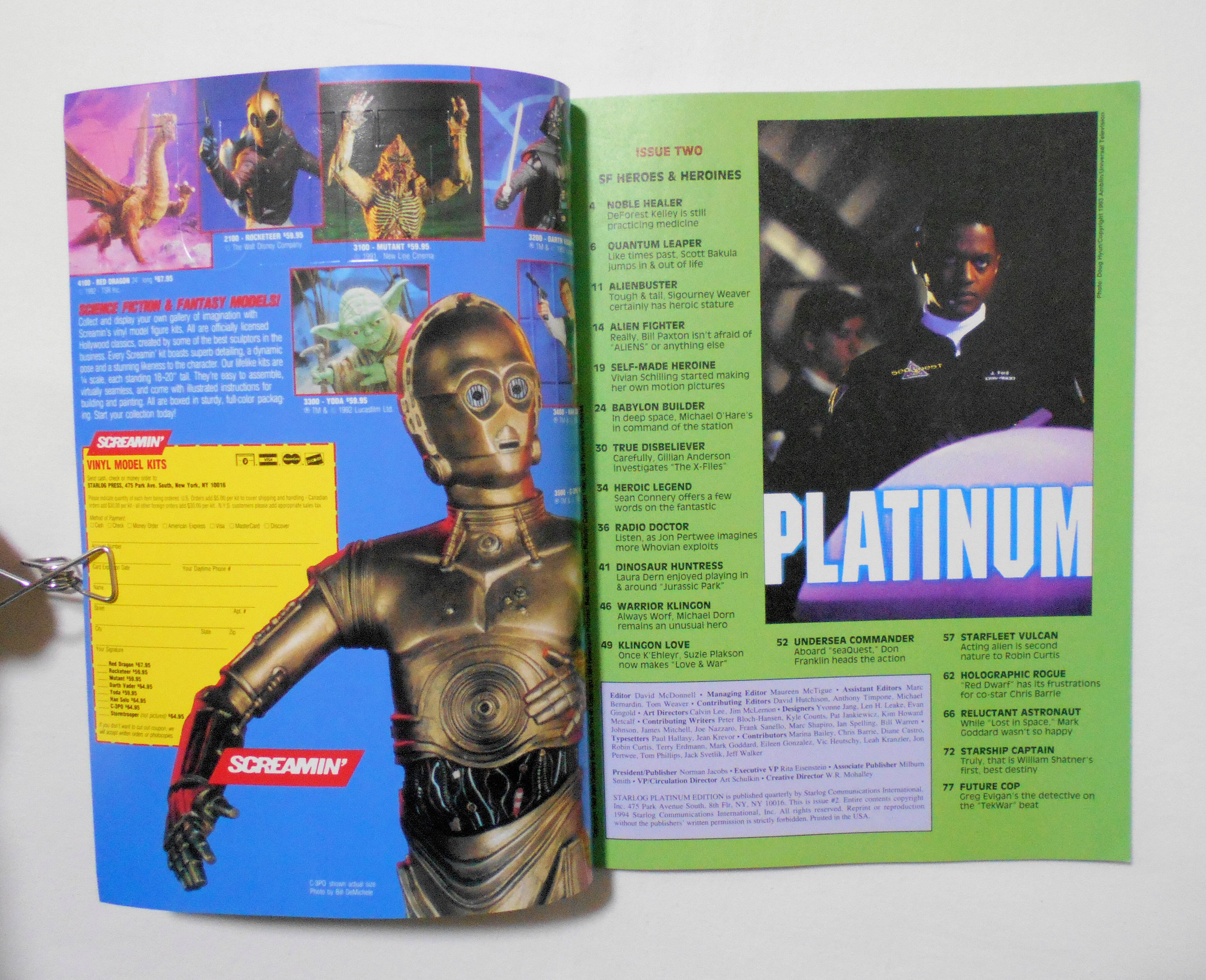 【STARLOG PRESENTS PLATINUM EDITION】 VOLUME #2◆SCIENCE FICTION'S HEROES & HEROINES - AMAZING INTERVIEWS: SEAN CONNERY, SIGOURNEY WEAVER, WILLIAM SHATNER, MARK GODDARD, SCOTT BAKULA, SUZIE PLAKSON, JON PERTWEE, LAURA DERN, MICHAEL DORN, ROBIN CURTIS◆中古マガジン。英文表記の洋書となります。◆82ページ カラー 大きさ約27.5×20.5センチ◆COPYRIGHT 1994 STARLOG COMMUNICATIONS INTERNATIONAL, INC.