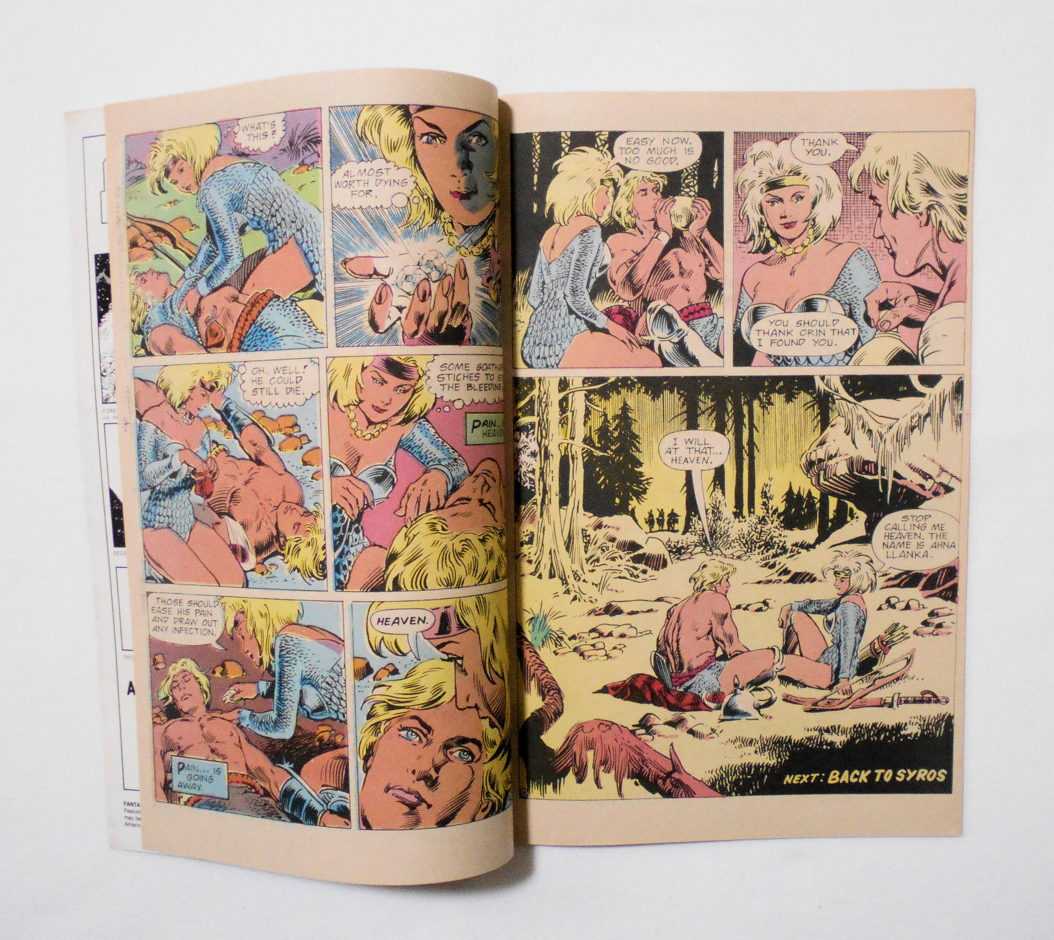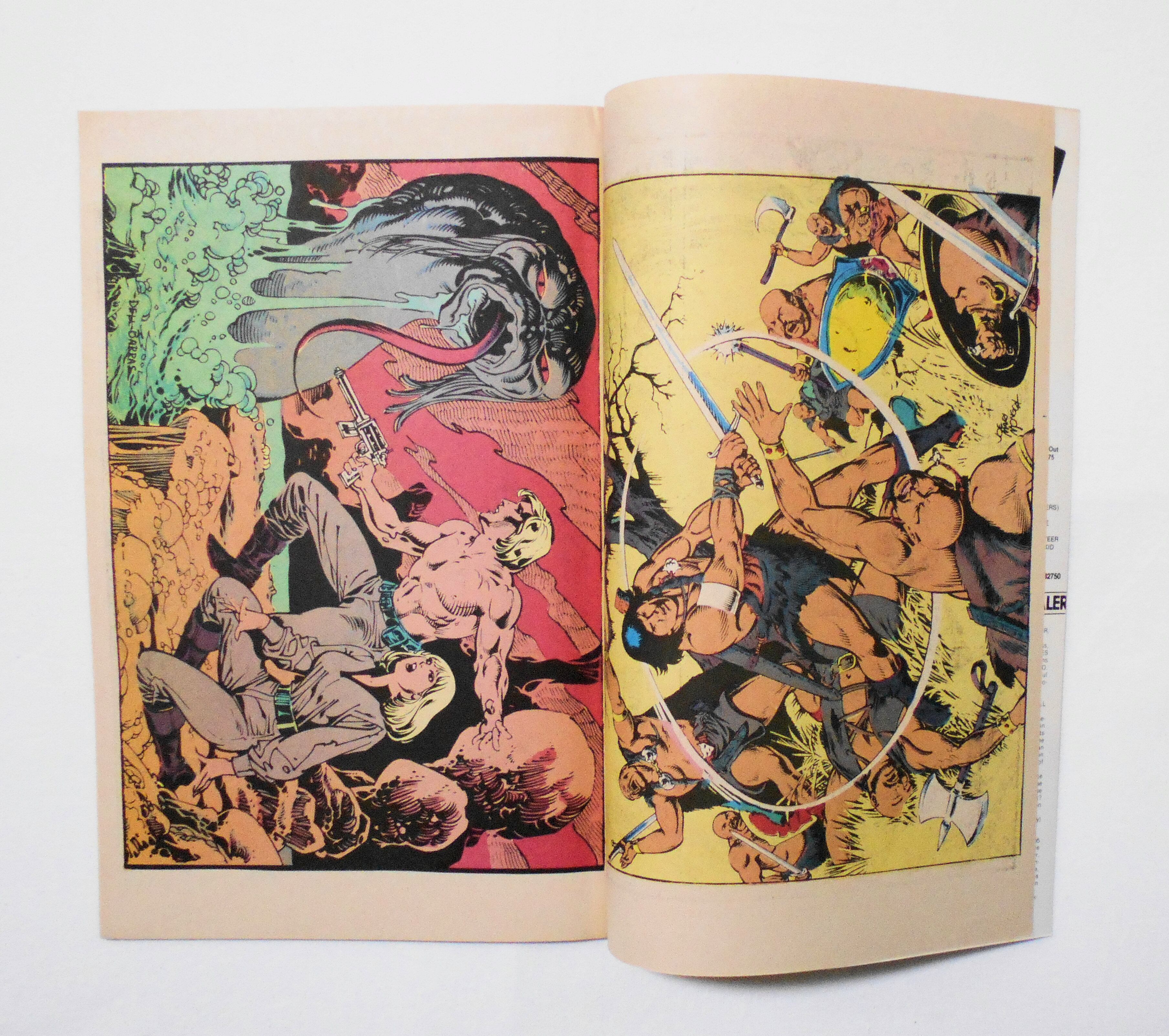 背から内側へ約1センチ縦方向に軽く折れ目が付いています。他、多少の擦れや黒ずみ、シワ、黄ばみ、角や端の傷みや微折れ等があり、経年に伴う使用感は否めませんが、目立った汚れやシミ等はなく、1980年代の輸入中古コミックですので、その点を考慮頂ければ、普通程度~おおむねきれいな状態だと思います。新品同様の美品をお求めの方や、中古品にご理解が頂けない方にはお薦め出来ません。
