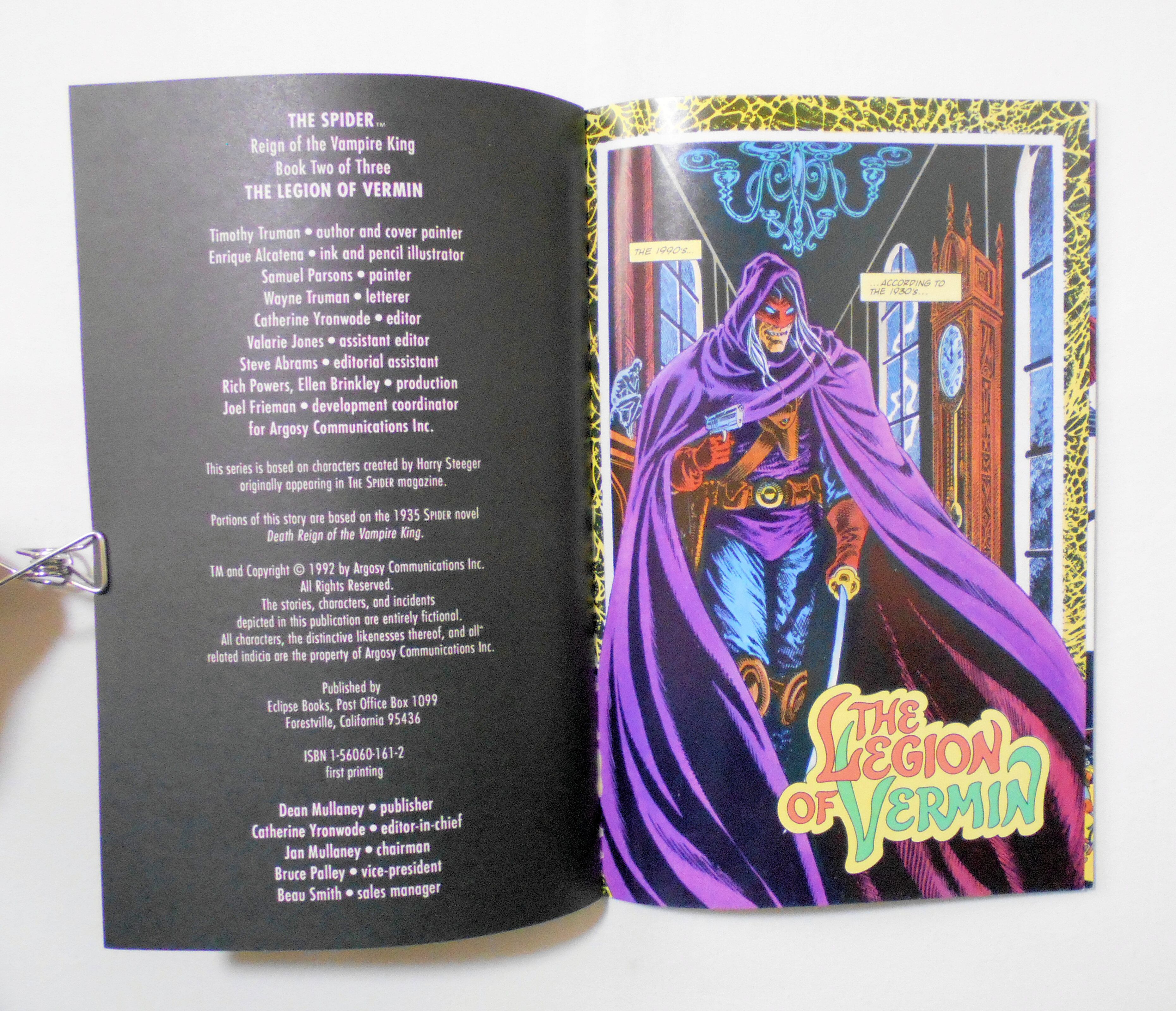 【THE SPIDER: REIGN OF THE VAMPIRE KING BOOK TWO OF THREE LEGION OF VERMIN】FIRST PRINTING◆中古アメリカン・コミック。英文表記の洋書となります。◆48ページ カラー 大きさ約26×17センチ◆ECLIPSE BOOKS◆COPYRIGHT 1992 by ARGOSY COMUNICATIONS, INC.