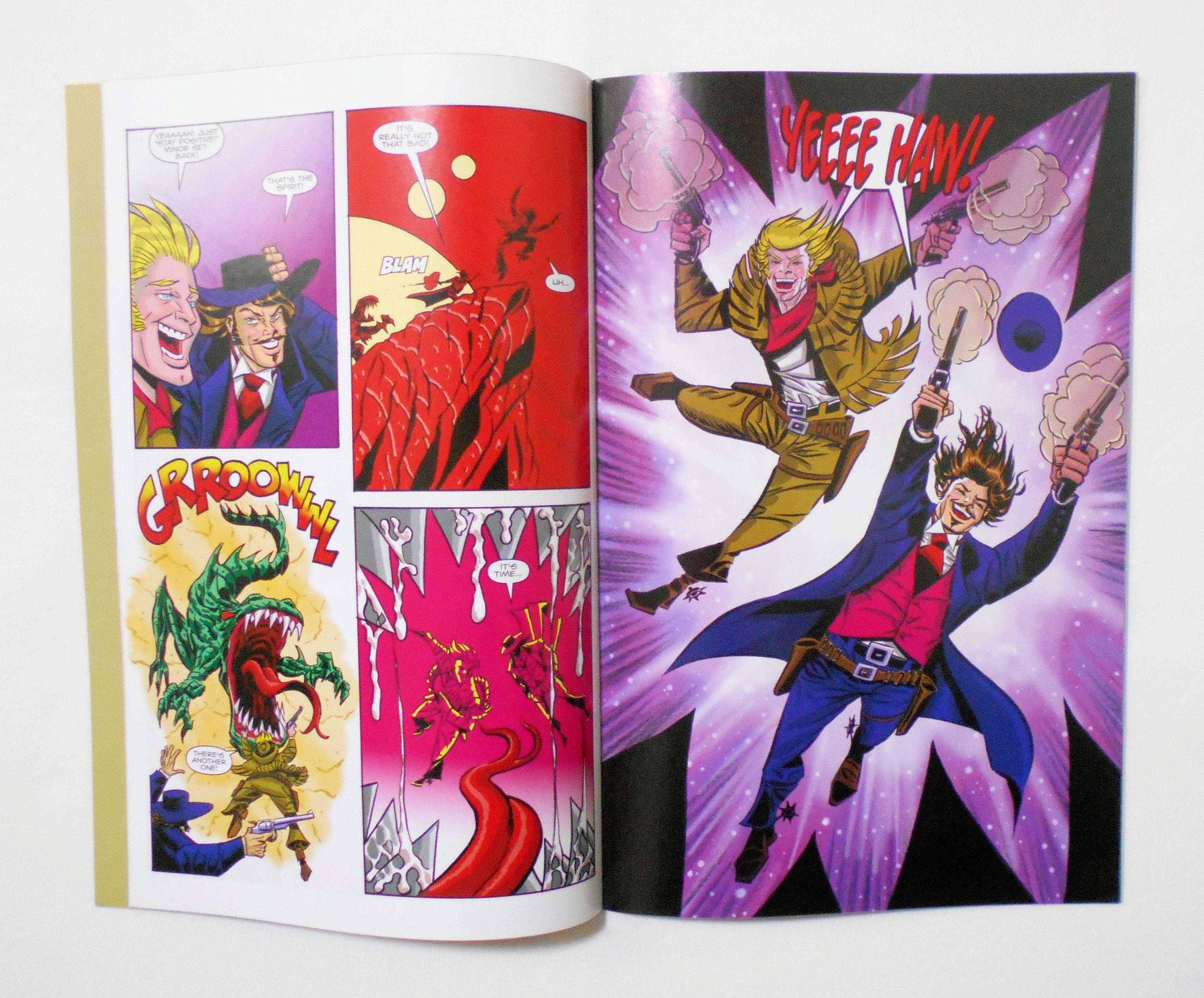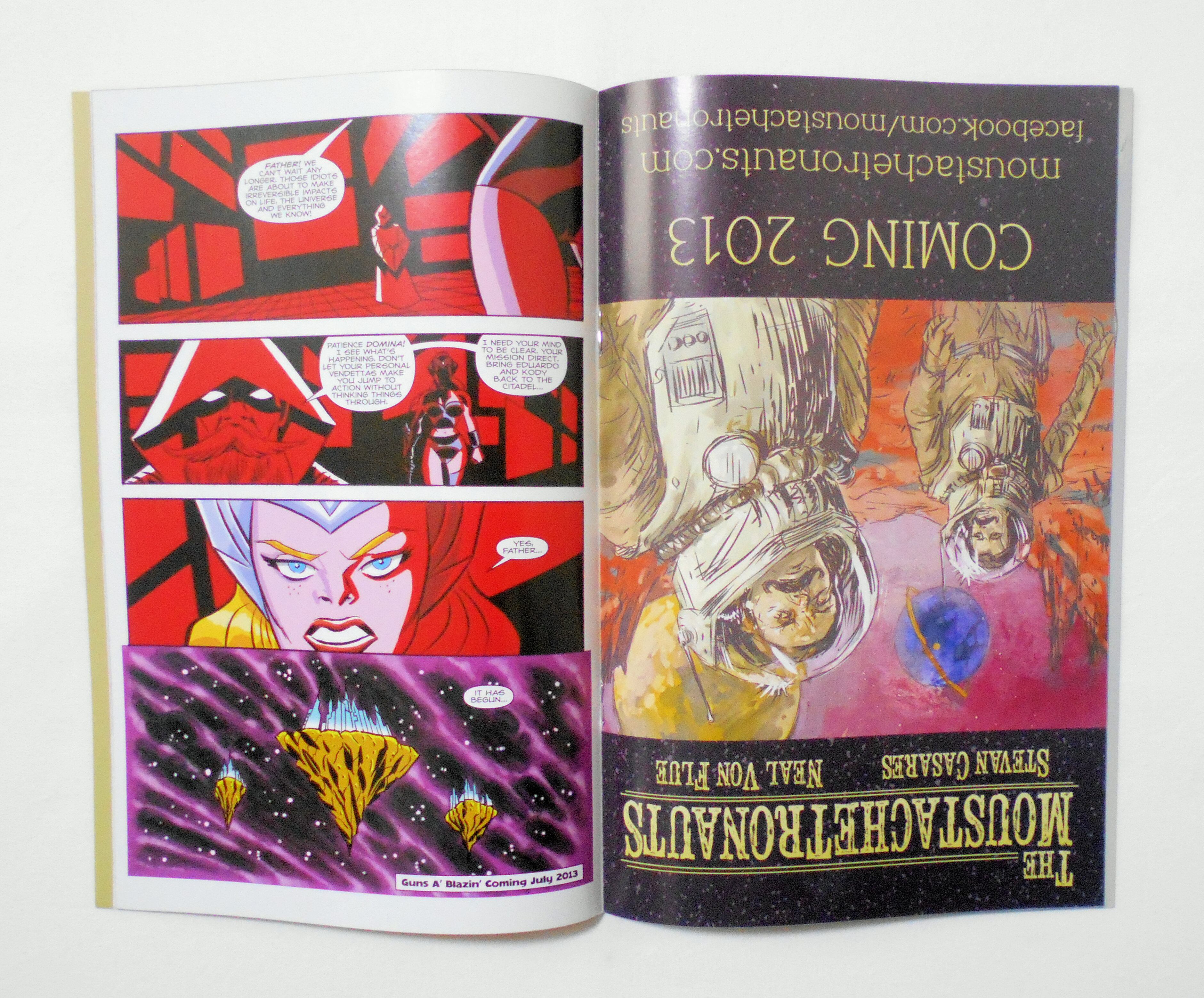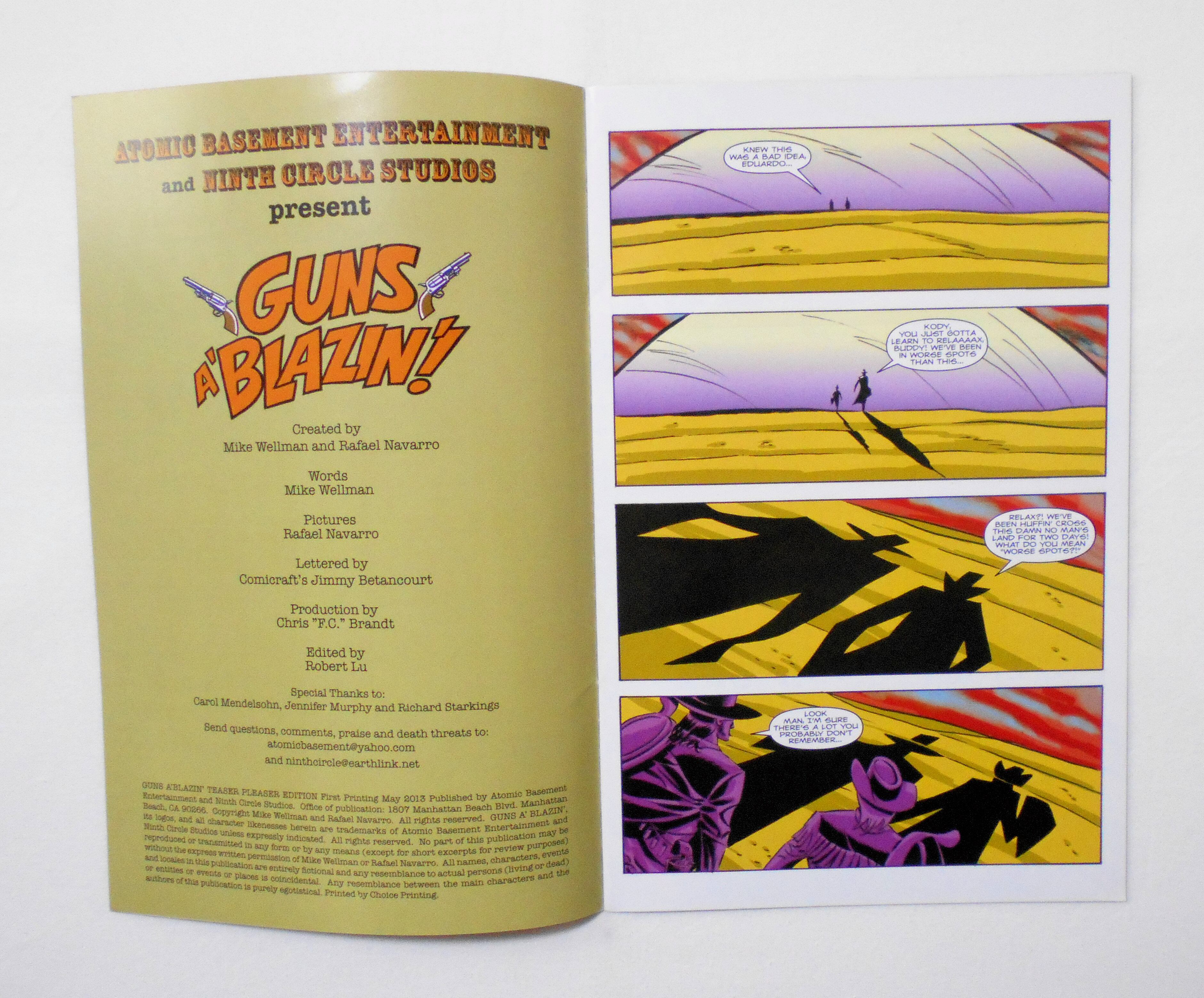 【GUNS A'BLAZIN' TEASER PLEASER EDITION/THE MOUSTACHETRONAUTS FREE COMIC BOOK DAY SPECIAL】 FIRST PRINTING MAY 2013◆中古アメリカン・コミック。英文表記の洋書となります。◆両表紙仕様(フリップ・コミック)で、裏側から "THE MOUSTACHETRONAUTS" が収録されています。◆16ページ カラー 大きさ約26×17センチ◆ATOMIC BASEMENT ENTERTAINMENT AND NINTH CIRCLE STUDIOS