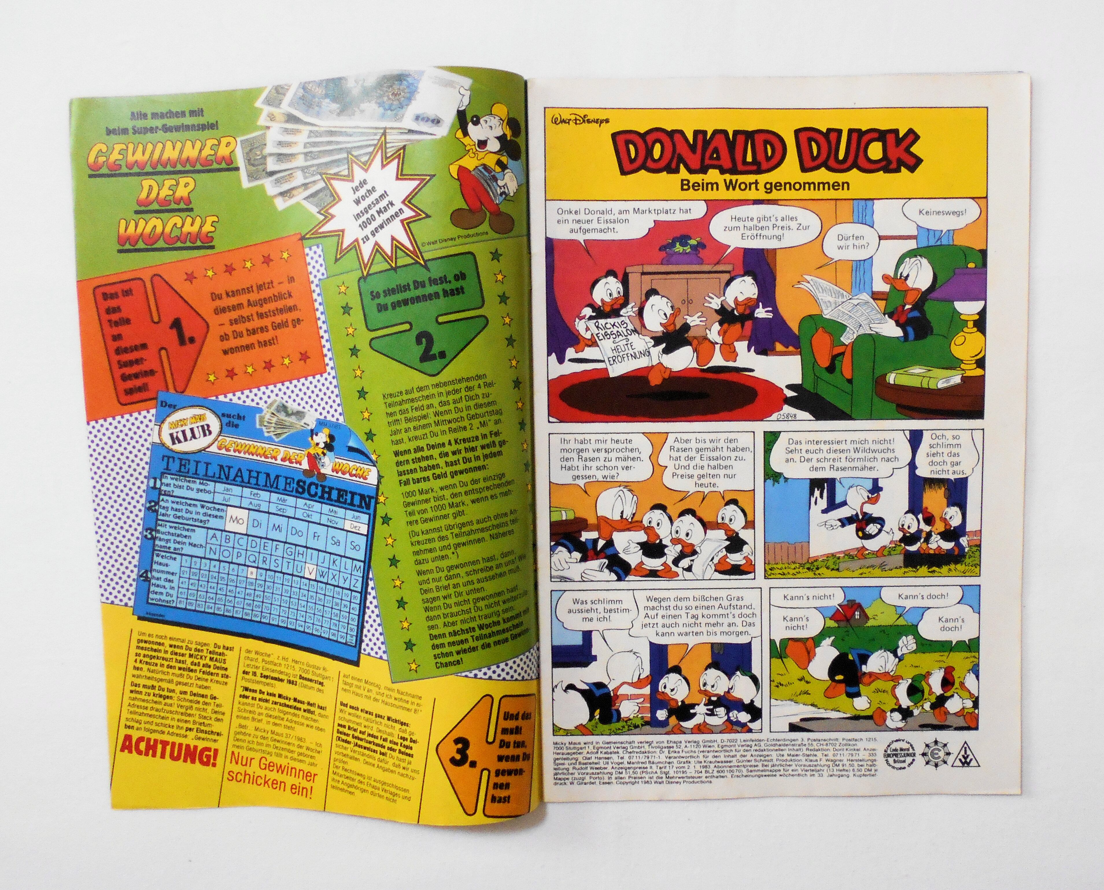 【WALT DISNEY'S MICKY MAUS】 Nr.37/13.9.1983◆中古アメリカン・コミック。ドイツ語表記の洋書となります。◆ページ数表記42ページ フルカラー 大きさ約26×17.5センチ◆WALT DISNEY PRODUCTIONS