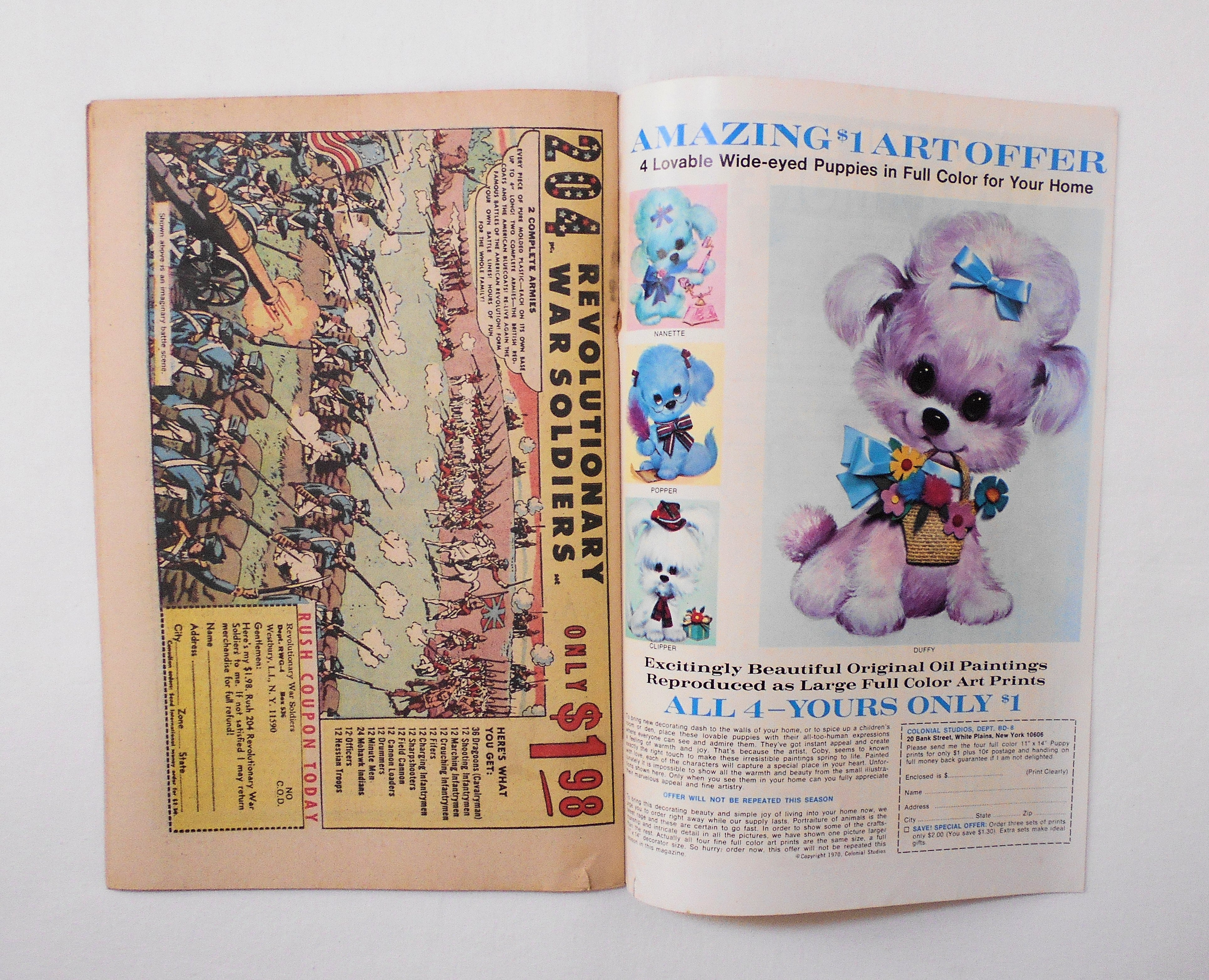 多少の擦れやシワ、黒ずみ、黄ばみ、紙ジミ、角や端の傷みや折れ、破れ等があり、経年に伴う使用感は否めませんが、目立った汚れやシミ等はなく、1970年代の輸入中古コミックですので、その点を考慮頂ければ、普通程度~おおむねきれいな状態だと思います。新品同様の美品をお求めの方や、中古品にご理解が頂けない方にはお薦め出来ません。
