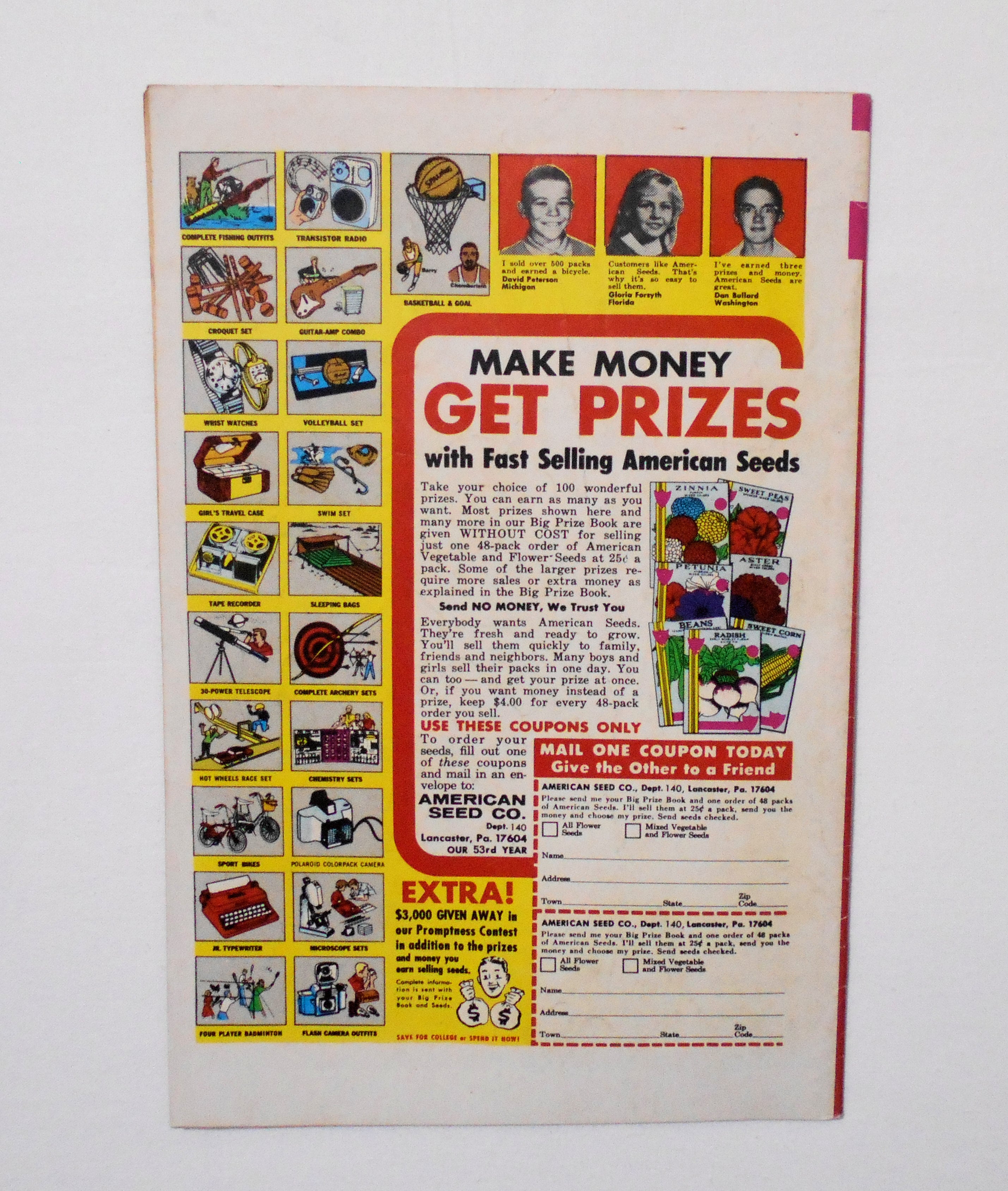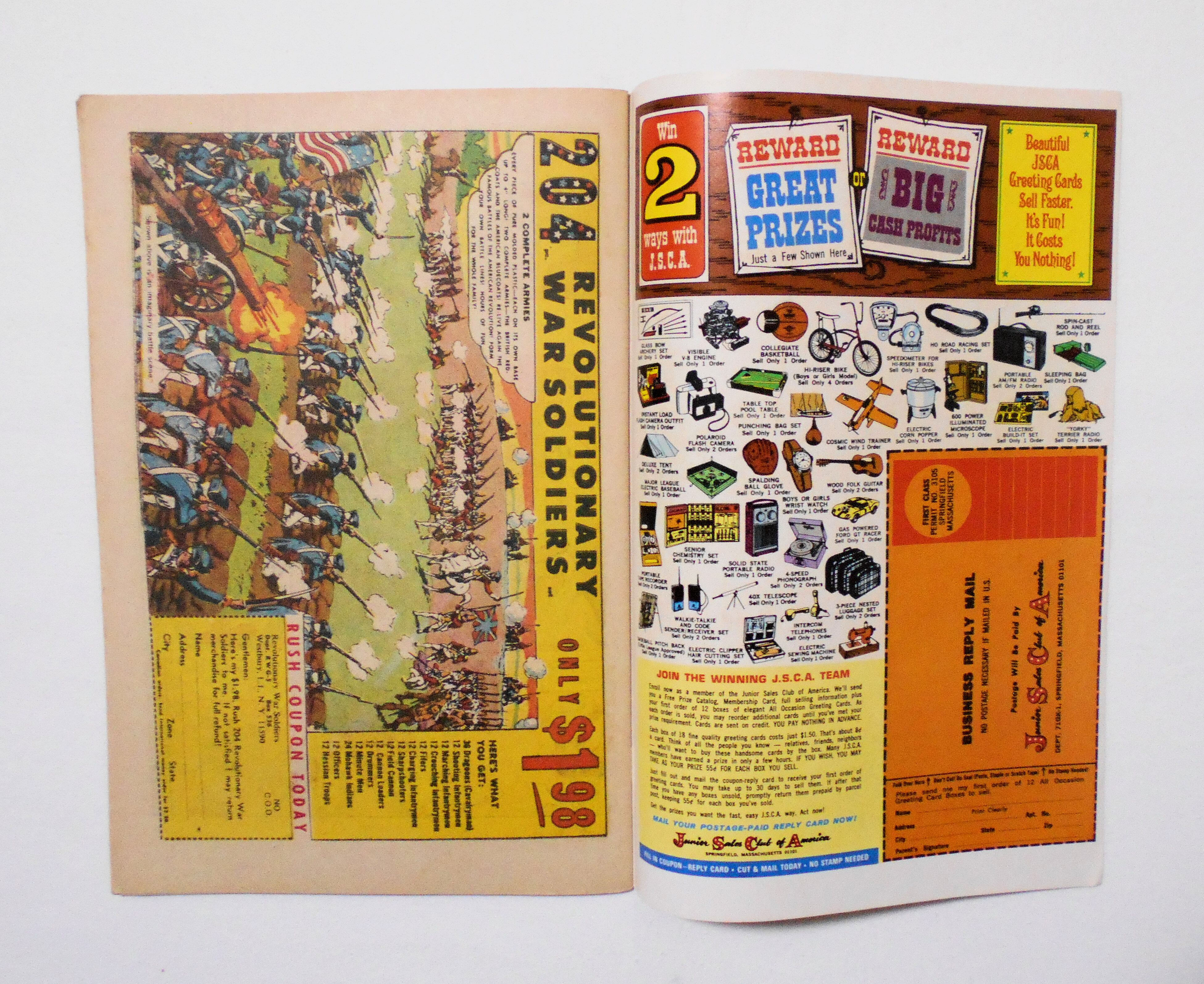 背から内側へ約0.5センチ縦方向に折れ目が付いています。他、多少の擦れやシワ、黄ばみ、角や端の傷みや折れ等があり、経年に伴う使用感は否めませんが、1970年代の輸入中古コミックですので、その点を考慮頂ければと思います。中は多少黄ばんでいますが、目立った汚れやシミ等はなく、おおむねきれいな状態ですので、読むのに支障はございません。新品同様の美品をお求めの方や、中古品にご理解が頂けない方にはお薦め出来ません。
