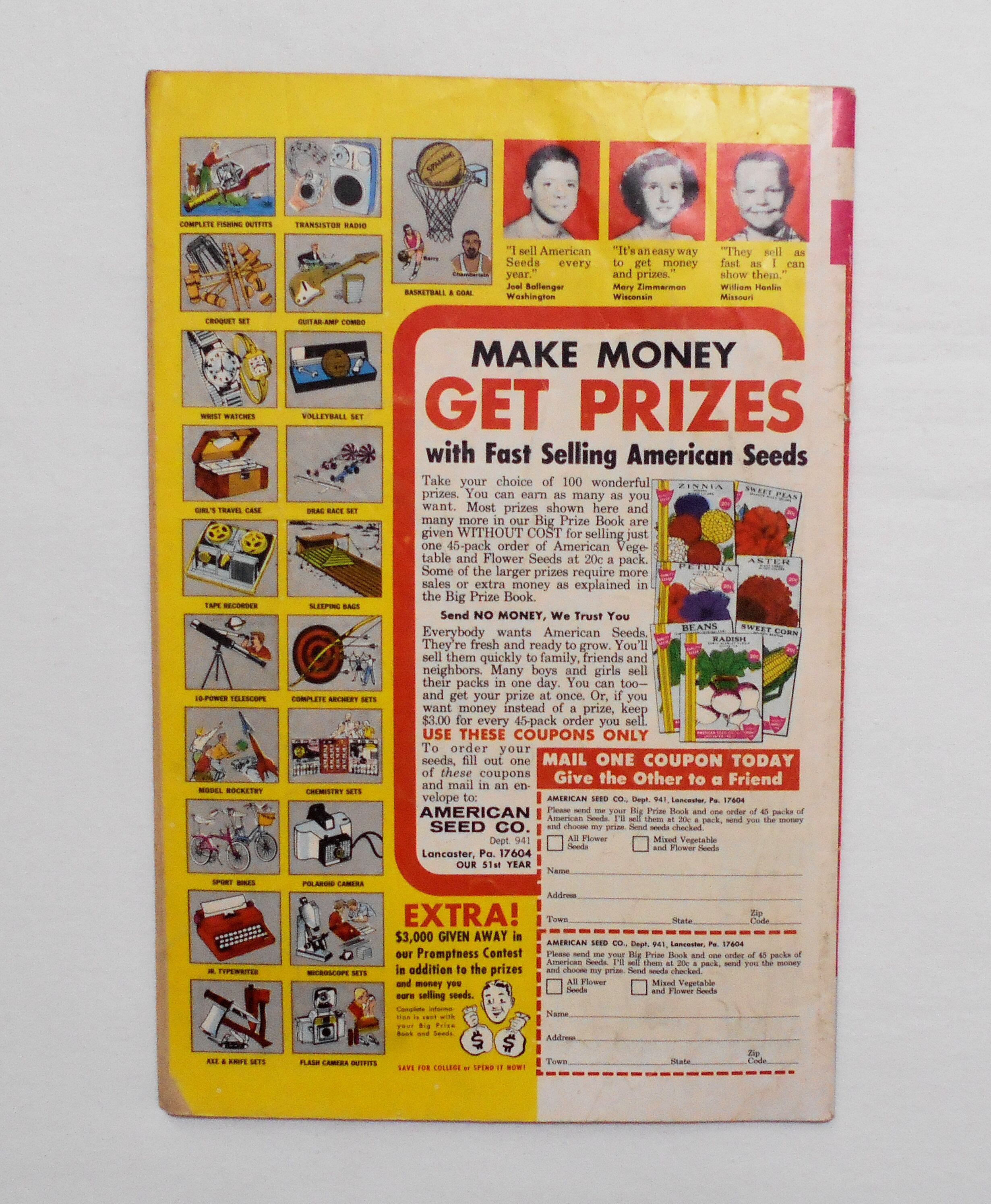 多少の擦れやシワ、黄ばみ、紙ジミ、角や端の傷みや折れ、微破れ等があり、経年に伴う使用感は否めませんが、1960年代の輸入中古コミックですので、その点を考慮頂ければと思います。中は多少黄ばんでいますが、目立った汚れやシミ等はなく、おおむねきれいな状態ですので、読むのに支障はございません。新品同様の美品をお求めの方や、中古品にご理解が頂けない方にはお薦め出来ません。