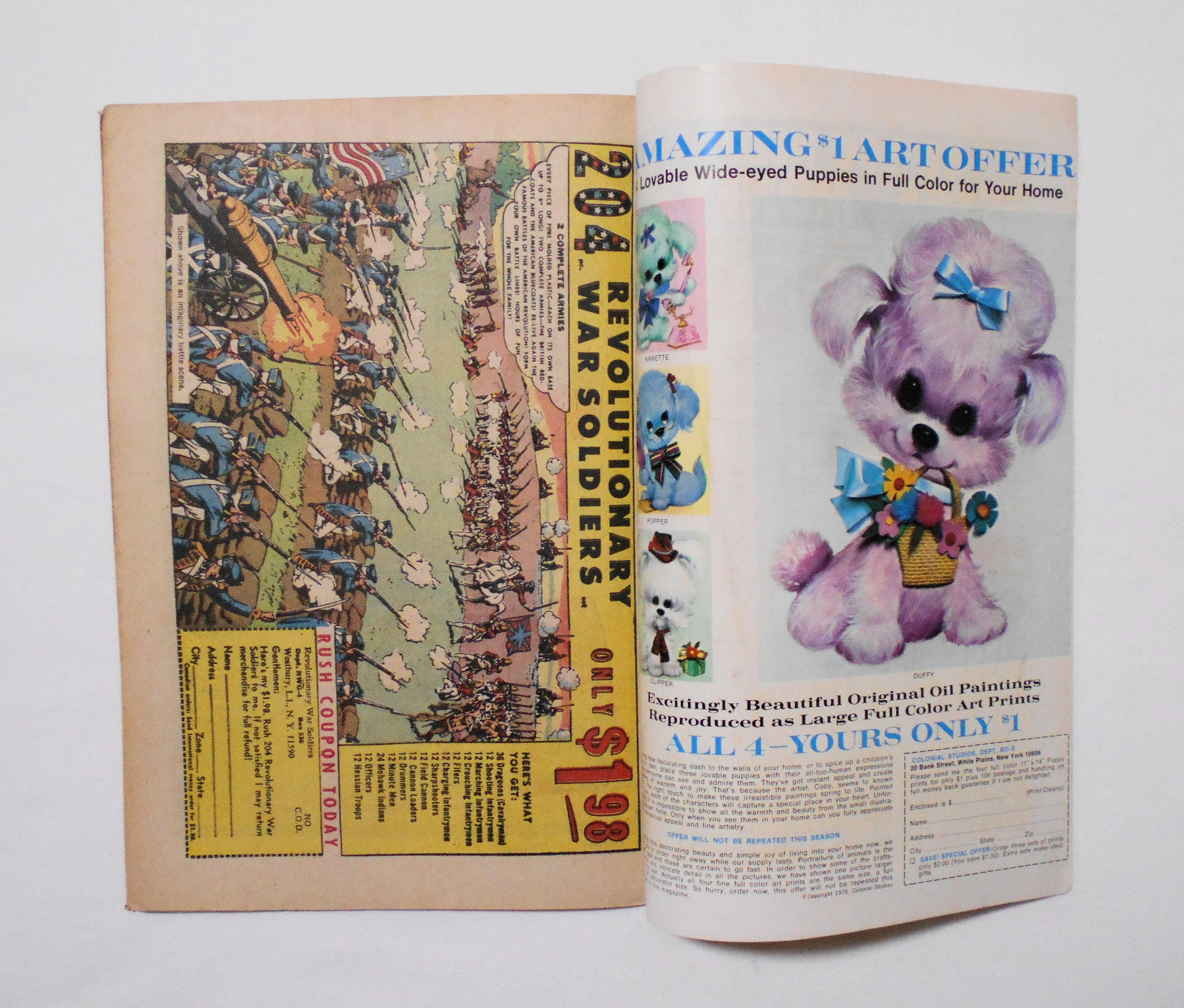 多少の擦れやシワ、黄ばみ、紙ジミ、角や端の傷みや折れ、微破れ等があり、表紙の傷みが目立ち、経年に伴う使用感はやや強めと言えますが、1970年代の輸入中古コミックですので、その点を考慮頂ければと思います。中は多少黄ばんでいますが、目立った汚れやシミ等はなく、おおむねきれいな状態ですので、読むのに支障はございません。新品同様の美品をお求めの方や、中古品にご理解が頂けない方にはお薦め出来ません。