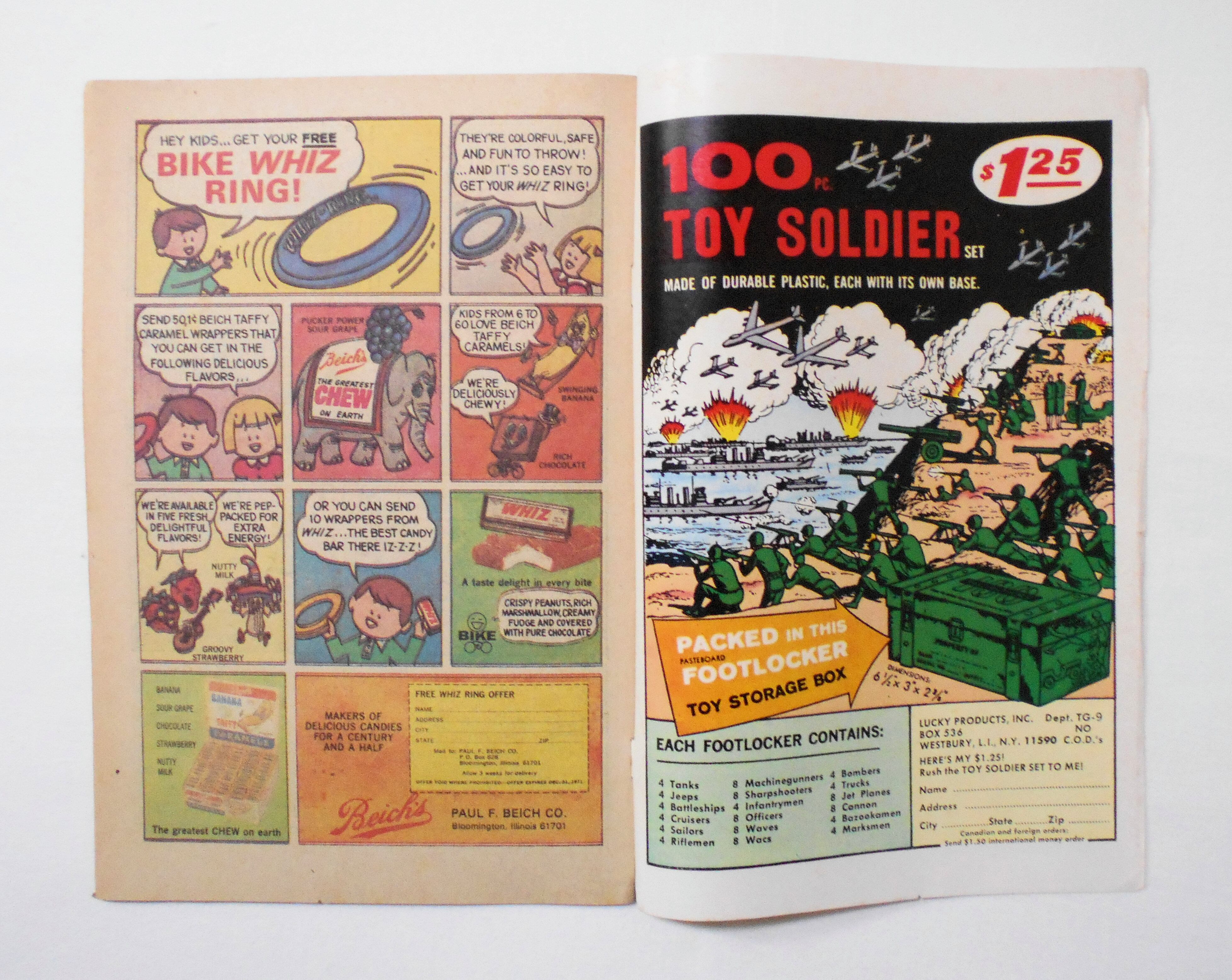 多少の擦れやシワ、黄ばみ、紙ジミ、角や端の傷みや折れ、微破れ等があり、表紙の傷みが目立ち、経年に伴う使用感はやや強めと言えますが、1970年代の輸入中古コミックですので、その点を考慮頂ければと思います。中は多少黄ばんでいますが、目立った汚れやシミ等はなく、おおむねきれいな状態ですので、読むのに支障はございません。新品同様の美品をお求めの方や、中古品にご理解が頂けない方にはお薦め出来ません。
