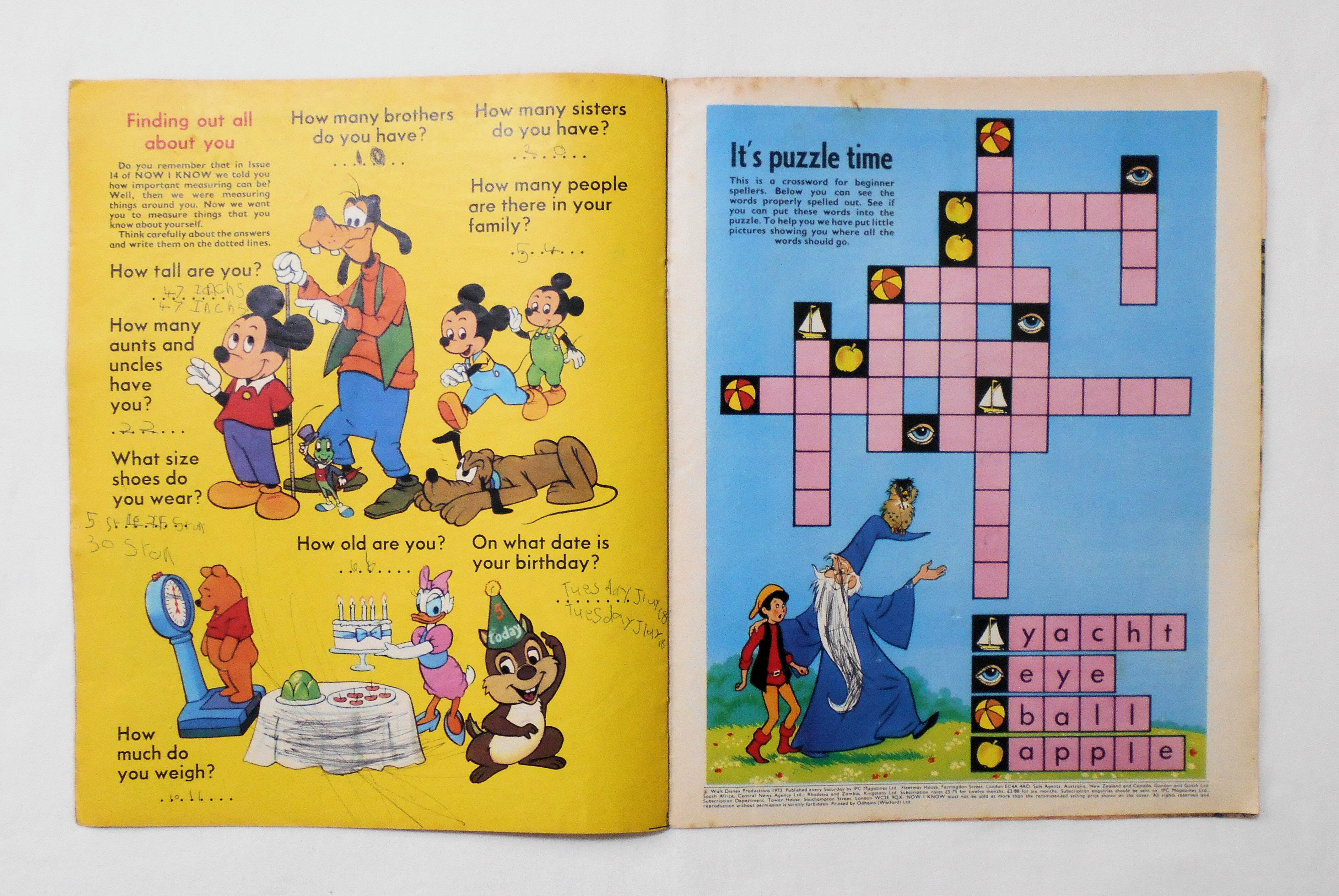 【WALT DISNEY'S NOW I KNOW MAKES LEARNING FUN FOR THE VERY YOUNG】 NO.20 17th FEB. 1973◆中古雑誌。英文表記の洋書となります。◆ぺージ数表記19ページ(表紙、裏表紙を含め) フルカラー 大きさ約32×26センチ◆COPYRIGHT WALT DISNEY PRODUCTIONS 1973◆IPC MAGAZINES, LTD