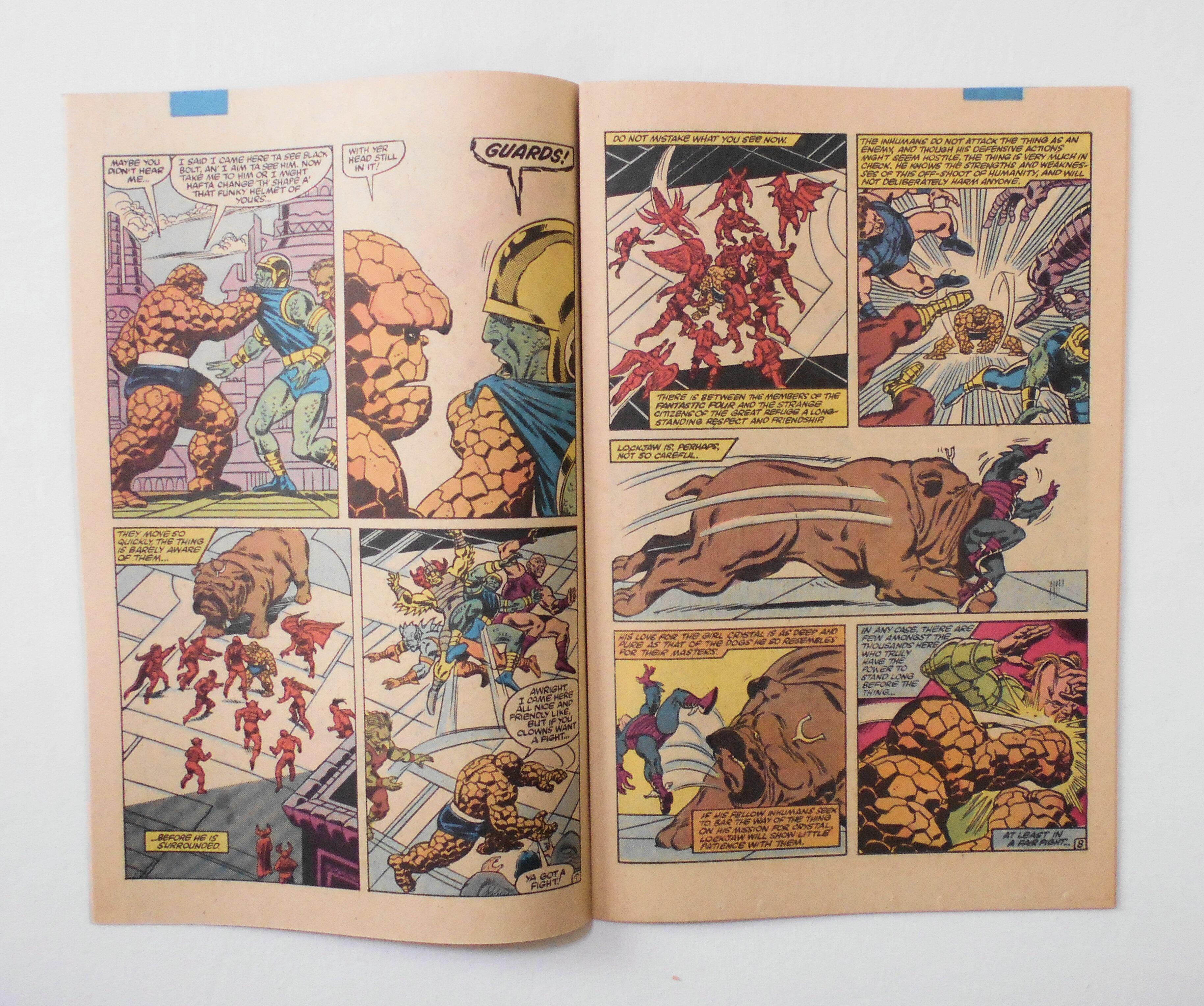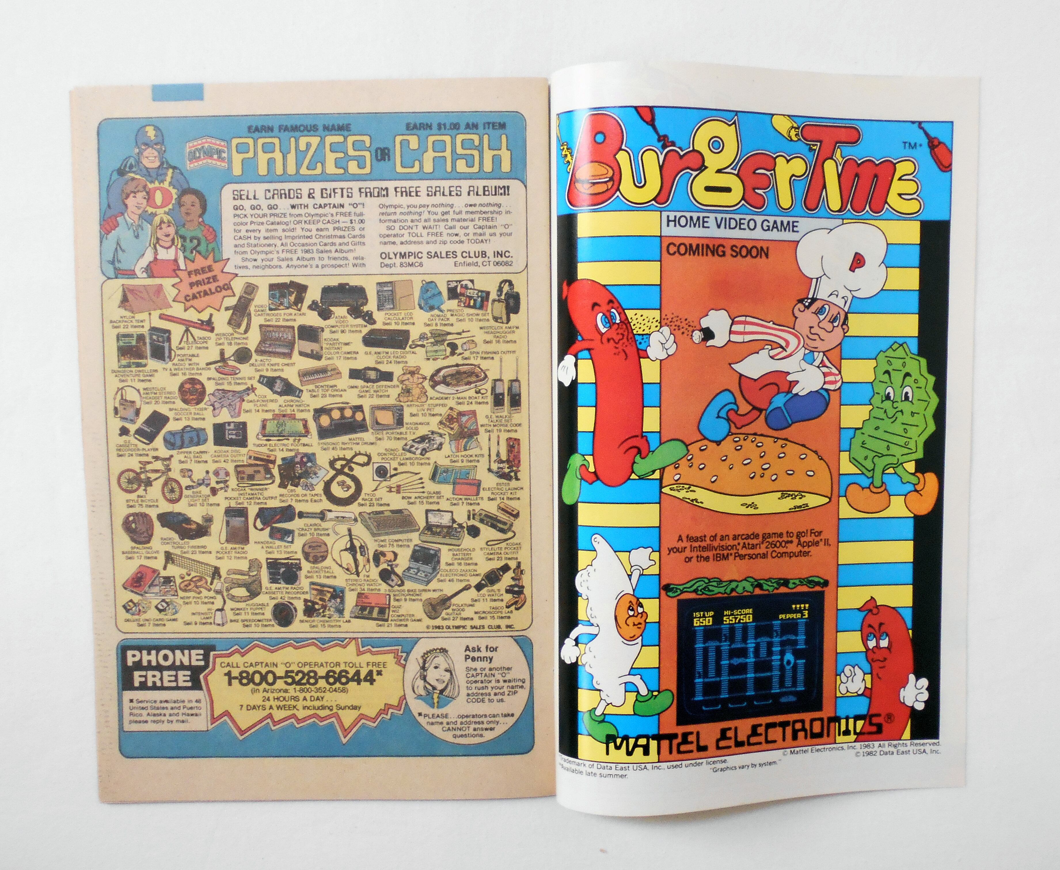 上のホッチキスが留められていません。穴の跡もなく、おそらく製本ミス/付け忘れのようです。他、多少の擦れやシワ、黄ばみ、紙ジミ、角や端の傷みや折れ等があり、経年に伴う使用感は否めませんが、目立った汚れやシミ等はなく、1980年代の輸入中古コミックですので、その点を考慮頂ければ、普通程度~おおむねきれいな状態だと思います。新品同様の美品をお求めの方や、中古品にご理解が頂けない方にはお薦め出来ません。