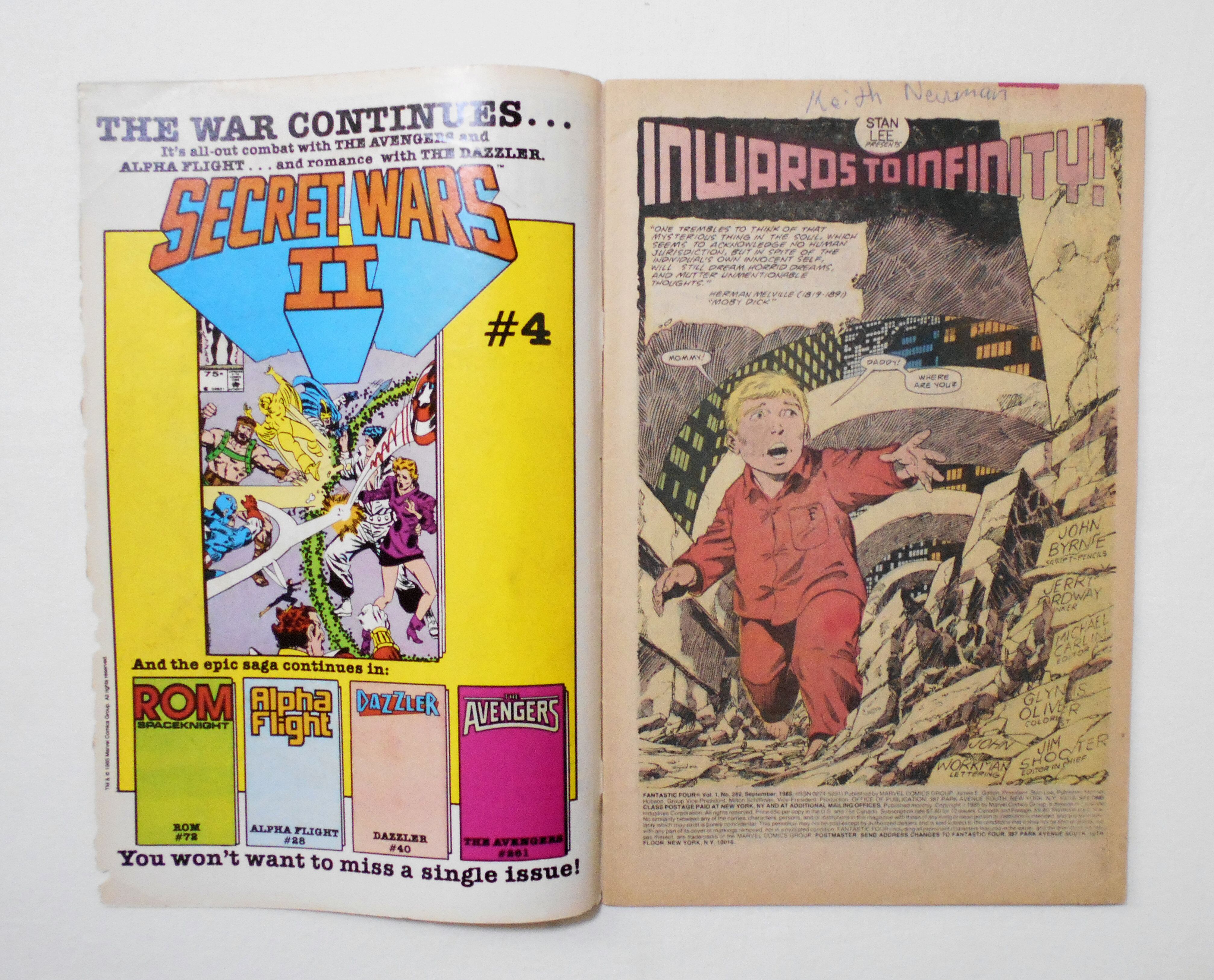 【FANTASTIC FOUR】 VOL.1 NO.282 SEPT. 1985◆SECRET WARS II CONTINUES IN THIS ISSUE!◆中古アメリカン・コミック。英文表記の洋書となります。◆32ページ フルカラー 大きさ約26×17センチ◆MARVEL COMICS GROUP