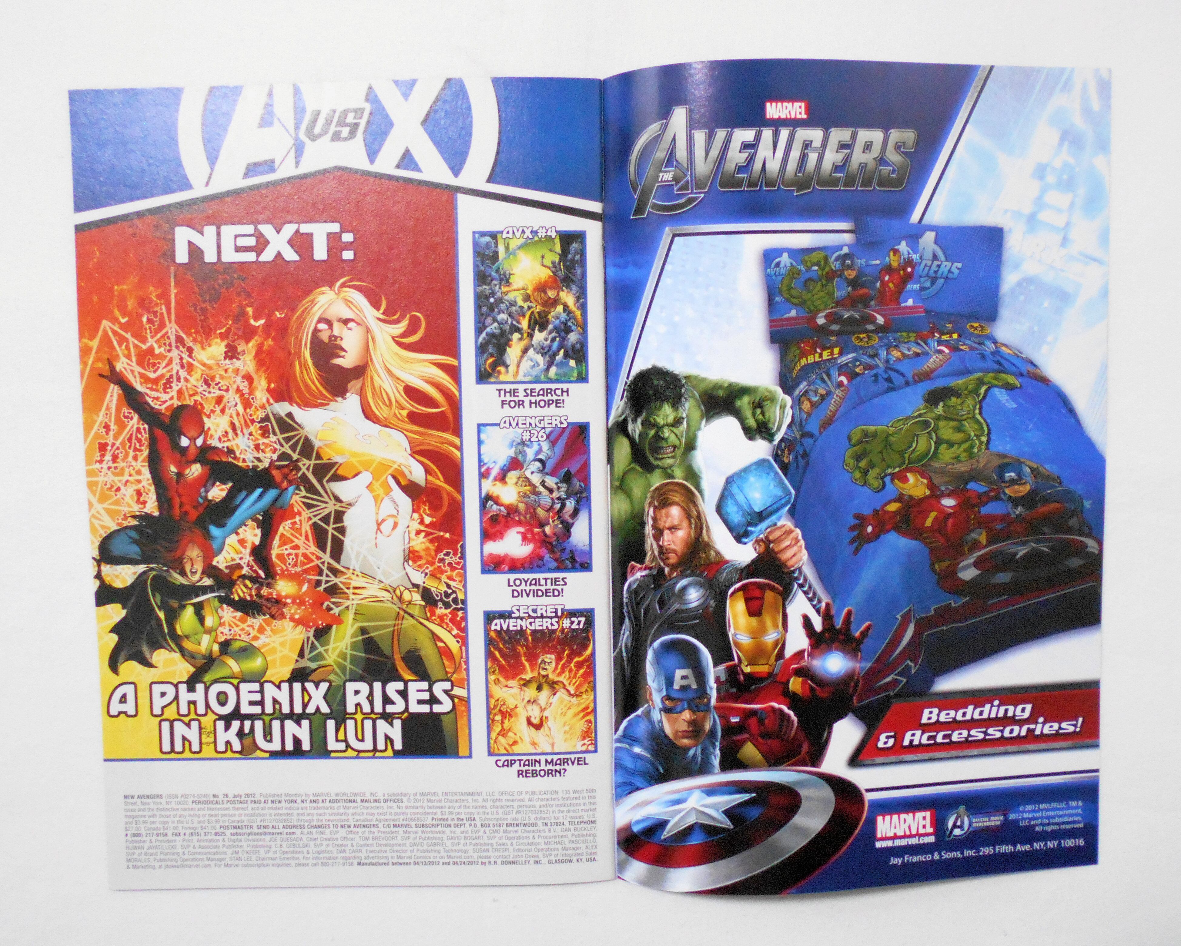 【NEW AVENGERS (AVX AVENGERS VS. X-MEN)】NO.26 JULY 2012◆アベンジャーズ VS Xメン・クロスオーバー・シリーズ◆中古アメリカン・コミック。英文表記の洋書となります。◆32ページ フルカラー 大きさ約26×17センチ◆MARVEL WORLDWIDE,INC.