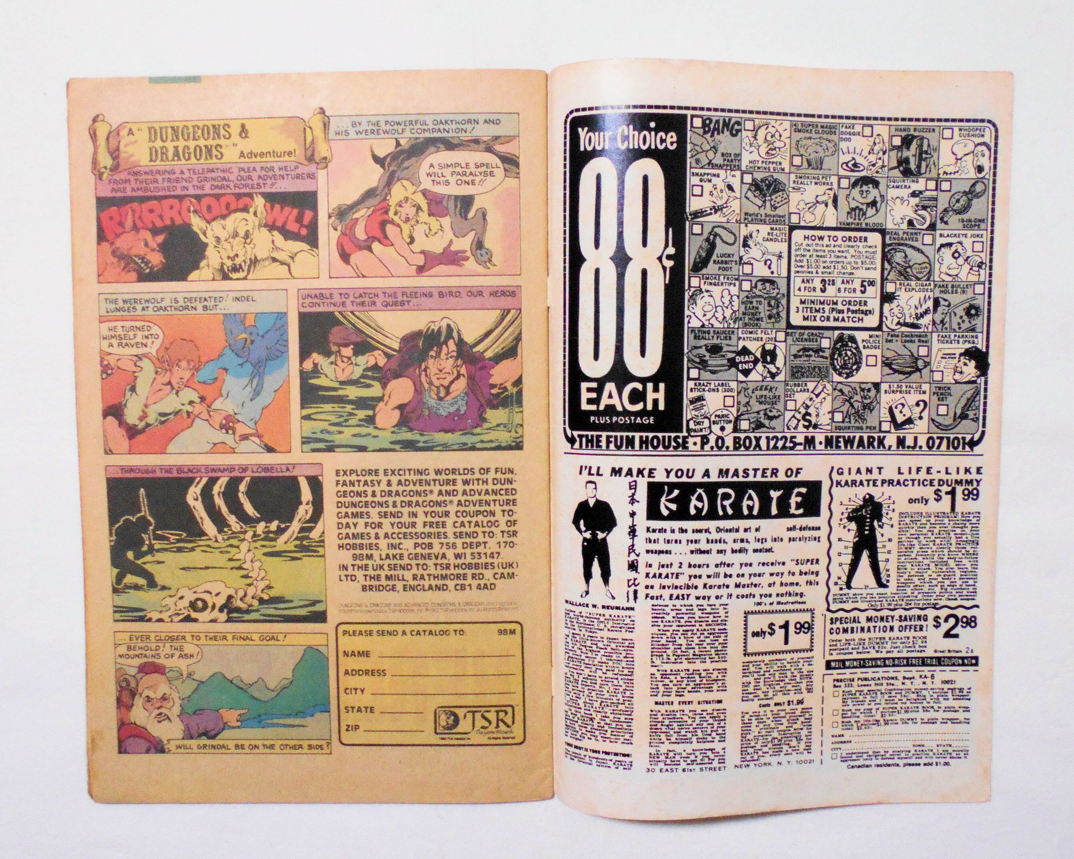 多少の擦れやシワ、黒ずみ、黄ばみ、角や端の傷みや折れ等があり、表紙の折れ等の傷みが目立ち、経年に伴う使用感はやや強めと言え、保存状態はあまり良くありません。1980年代の輸入中古コミックですので、その点を考慮頂ければと思います。中は多少黄ばんでいますが、目立った汚れやシミ等はなく、おおむねきれいな状態ですので、読むのに支障はございません。新品同様の美品をお求めの方や、中古品にご理解を頂けない方にお薦めは出来ません。