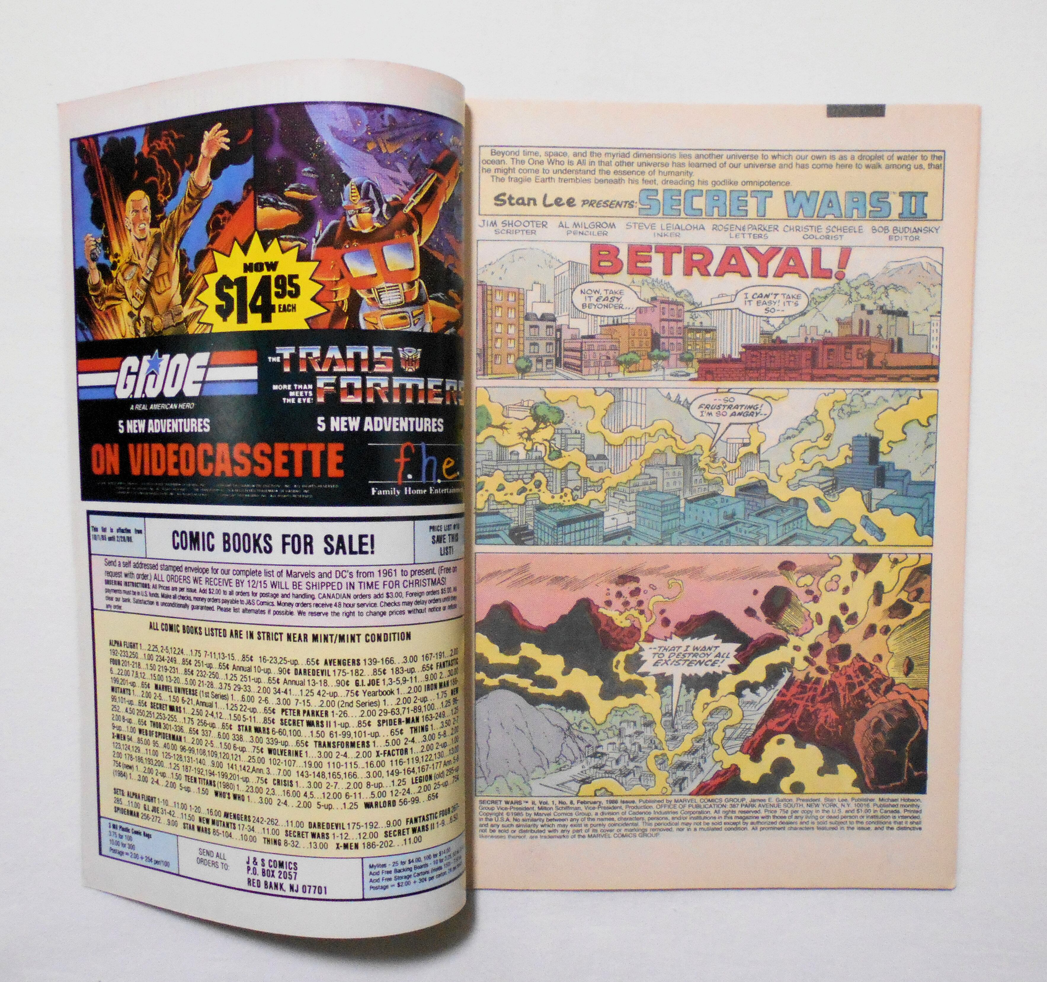 【SECRET WARS II NO.8 IN A NINE-ISSUE LIMITED SERIES】 VOL.1 NO.8 FEB. 1986◆中古アメリカン・コミック。英文表記の洋書となります。◆32ページ フルカラー 大きさ約26×17センチ◆MARVEL COMICS GROUP