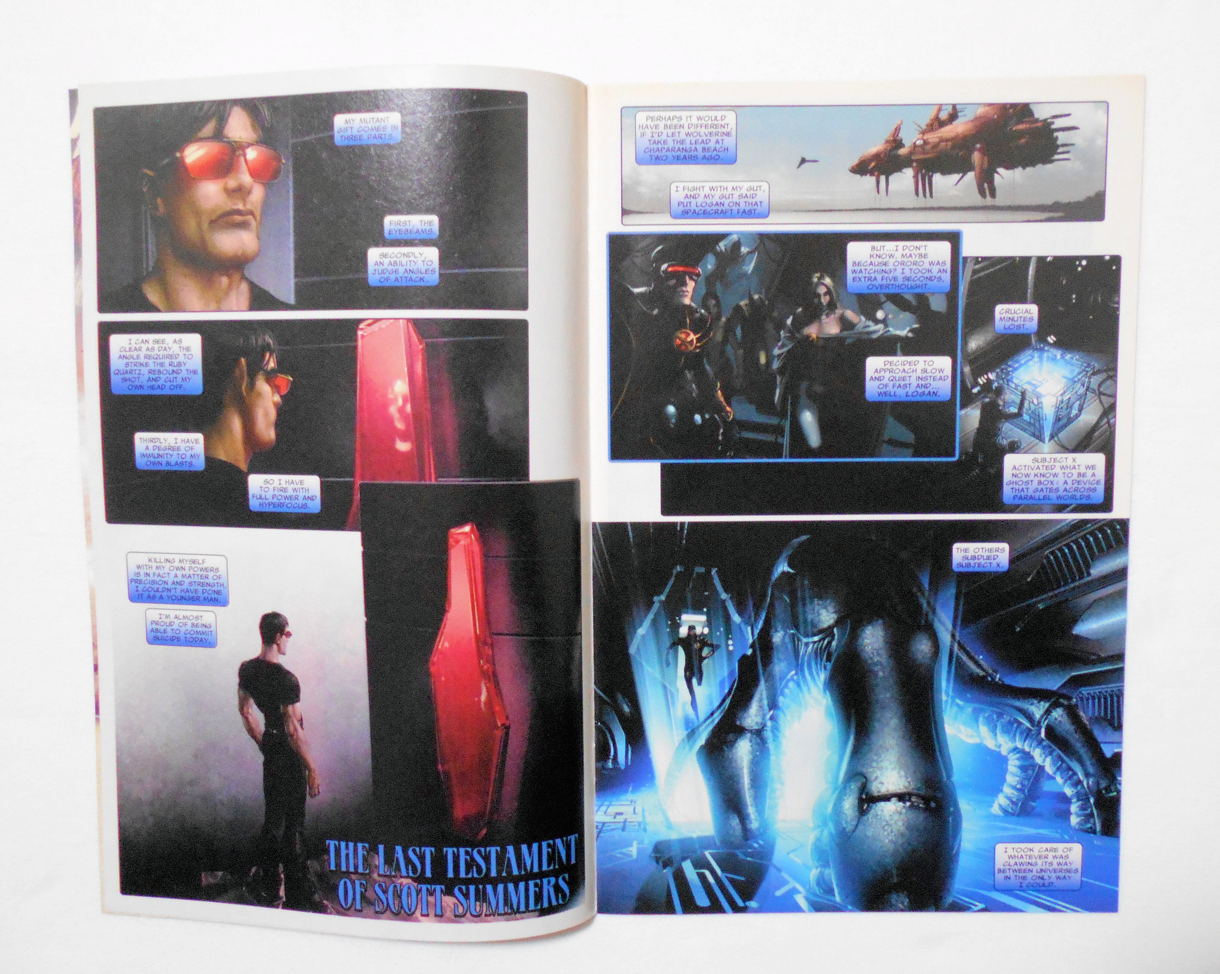 【ASTONISHING X-MEN: GHOST BOXES】 NO.1 DEC. 2008/NO.2 JAN. 2009◆中古アメリカン・コミック。英文表記の洋書となります。◆それぞれ32ページ カラー 大きさ約26×17センチ◆MARVEL PUBLISHING, INC. ◆収録タイトル: NO.1- AGENT X-13'S REPORT ON THE EMERGENCY ANNEXATION OF EARTH-GIG, BEGINNING AN JOURNAL BY MISS EMMA FROST OF NEW PORTSMOUTH BAY IN THE STATE OF NEW ALBION NO.2- THE LAST TESTAMENT OF SCOTT SUMMERS, 4 (全て1話完結) 巻末にスクリプト掲載。