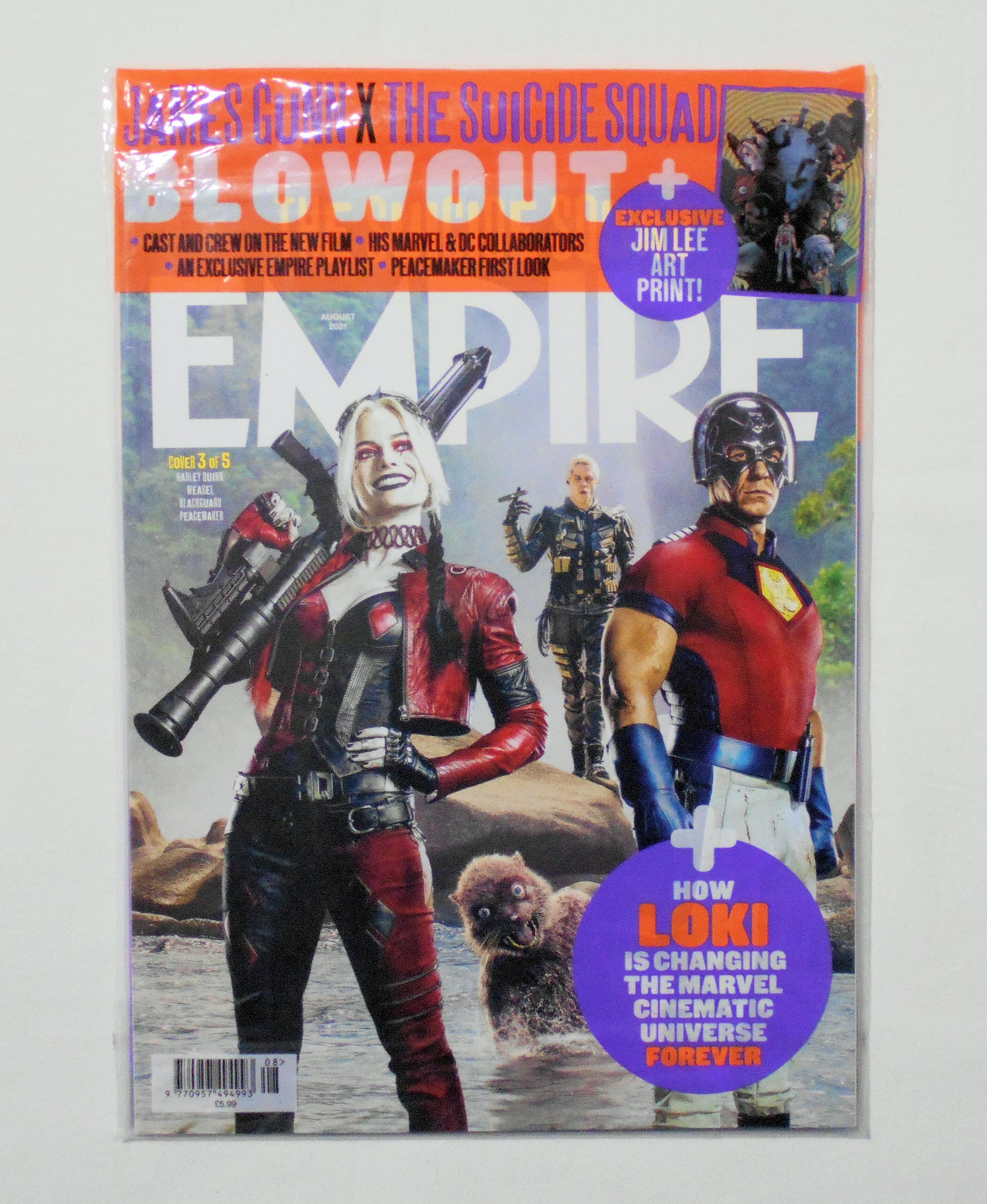 【EMPIRE [UK]】AUG. 2021 COVER 3 of 5 HARLEY QUINN, WEASEL, BLACKGUARD, PEACEMAKER◆中古マガジン。英文表記の洋書となります。◆カラー 本の大きさ約28.5×22センチ パッケージ袋の大きさ約32×24センチ◆BAUER CONSUMER MEDIA LTD.◆特集: THE SUICIDE SQUAD, M. NIGHT SHYAMALAN, PETER JACKSON & EDGAR WRIGHT, LIMBO, TILDA SWINTON, SHREK +EXCLUSIVE JIM LEE ART PRINT + HOW LOKI IS CHANGING THE MARVEL CINEMATIC UNIVERSE FOREVER