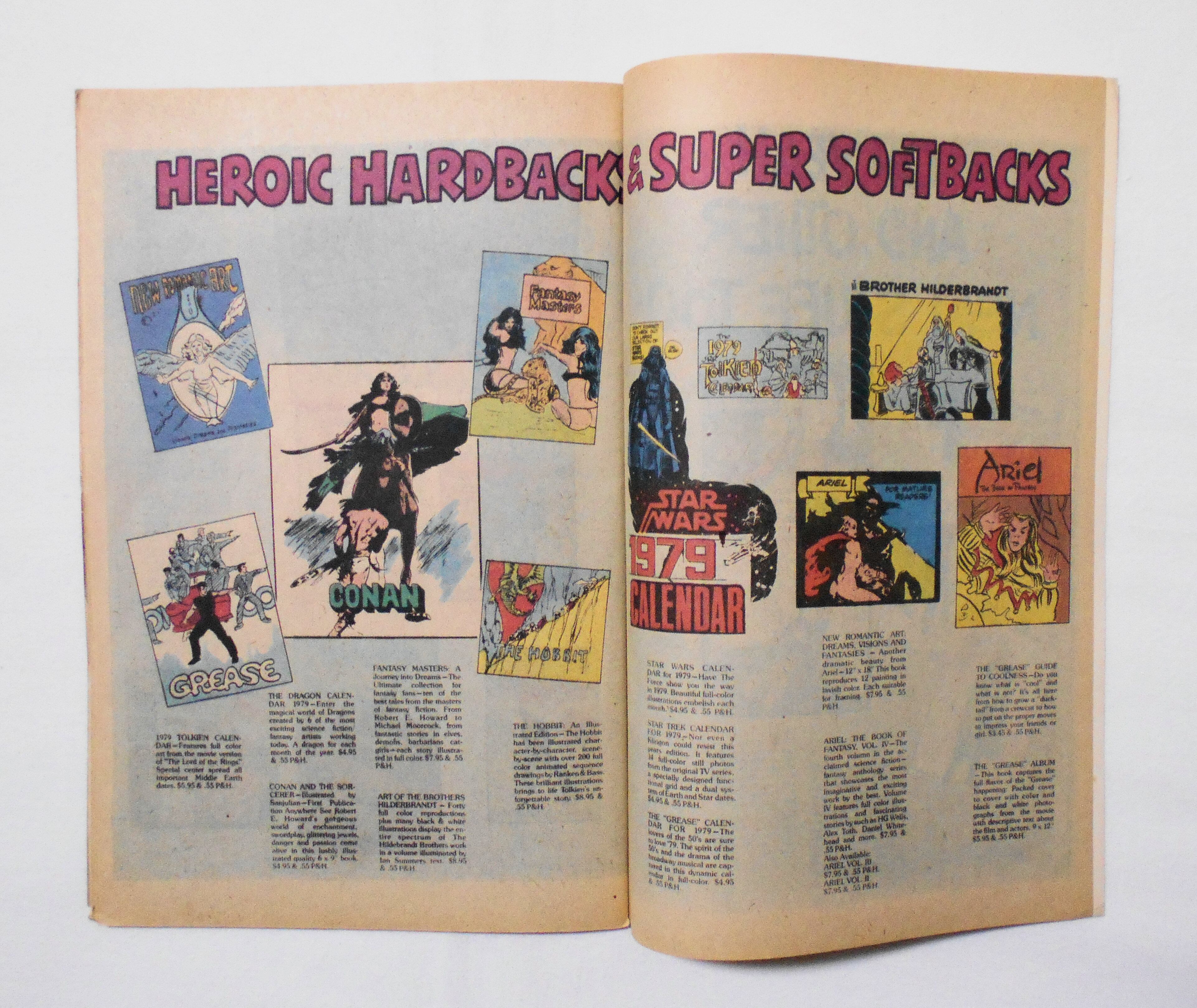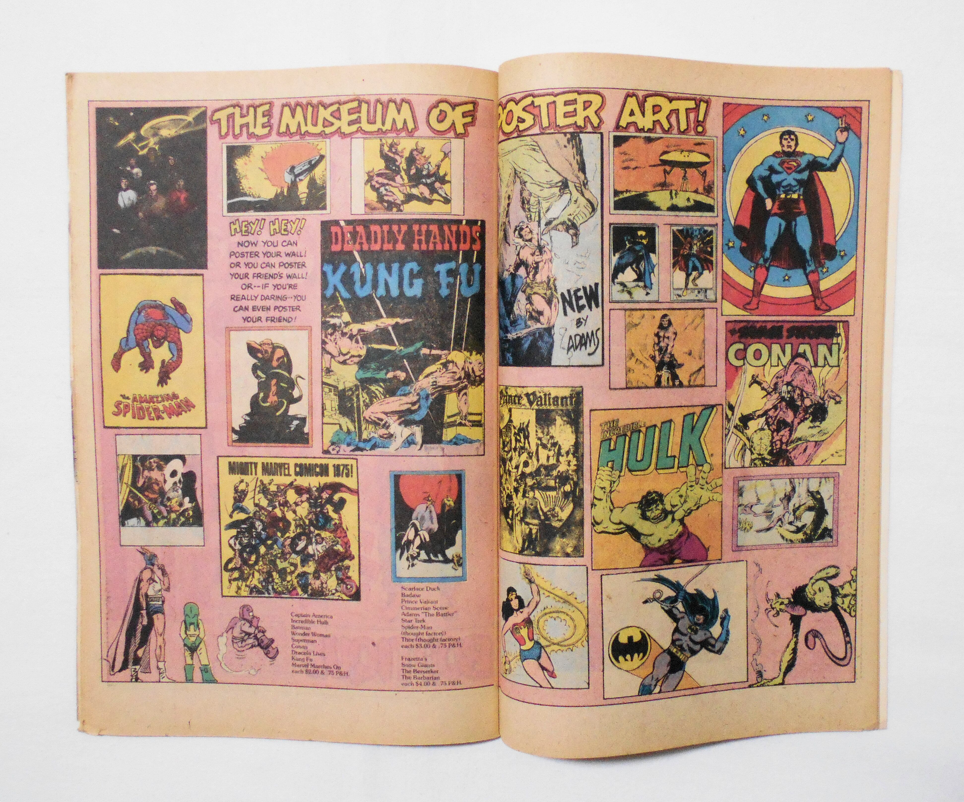 【SUPERHERO ENTERPRISES PRESENTS SUPERHERO CATALOGUE GAMES, BOOKS, TOYS & PUZZLES】VOL.1 NO.5 FALL 1977◆中古アメリカンコミック仕様カタログ。英文表記の洋書となります。◆48ページ フルカラー 大きさ約26×17センチ◆SUPERHERO ENTERPRISES INC.◆COPYRIGHT 1977 by MARVEL COMICS GROUP & NATIONAL PERIODICAL PUBLICATIONS, INC.◆STARRING, SPIDER-MAN, MARVEL HEROES, BAT-MAN, MICRONAUTS, WONDER WOMAN, MEGO SUPERHERO FIGURES, POSTER, COMICS BOOKS, T-SHIRTS, NEIL ADAMS, FRAZETTA, CONAN &MORE!!◆1970年代に出版されたアメリカントイやグッズ、本等のカタログです。写真ではなく、アメコミ風のイラストが読みモノとして面白く、いつまでも見てても飽きません。表紙のヒーローは"SNYDER-MAN"といって、この本の発行人らしいです。