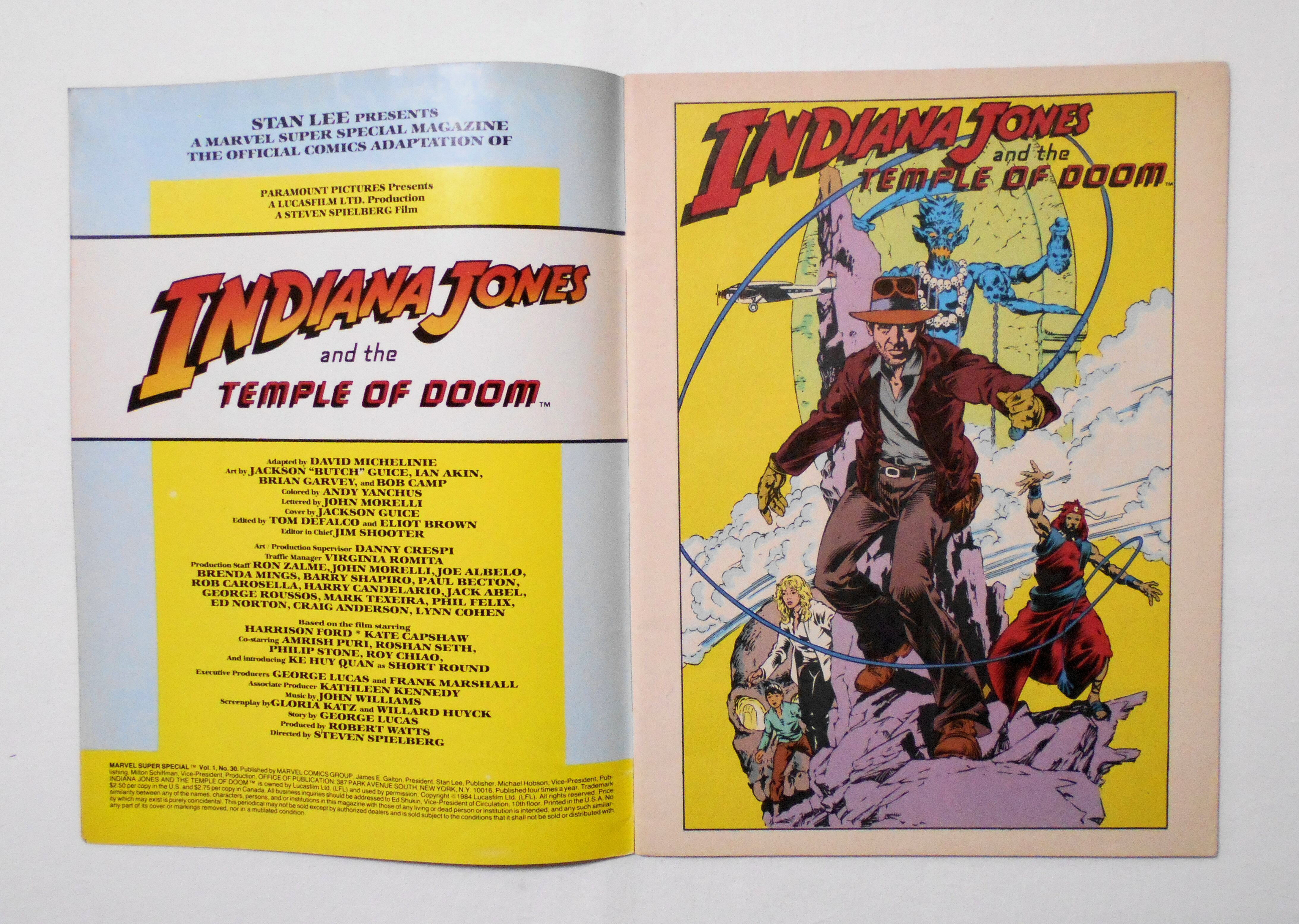 【インディ・ジョーンズ/魔宮の伝説 MARVEL SUPER SPECIAL: INDIANA JONES AND THE TEMPLE OF DOOM】 VOL.1 NO.30◆中古アメコミ。英文表記。◆インディ・ジョーンズ・シリーズ第2弾『INDIANA JONES AND THE TEMPLE OF DOOM (邦題: インディ・ジョーンズ/魔宮の伝説 監督: スティーヴン・スピルバーグ 製作総指揮: ジョージ・ルーカス 主演: ハリソン・フォード』のノベライズコミック◆64ページ フルカラー 大きさ約28×21センチ◆MARVEL COMICS GROUP◆COPYRIGHT 1984 LUCASFILM LTD.