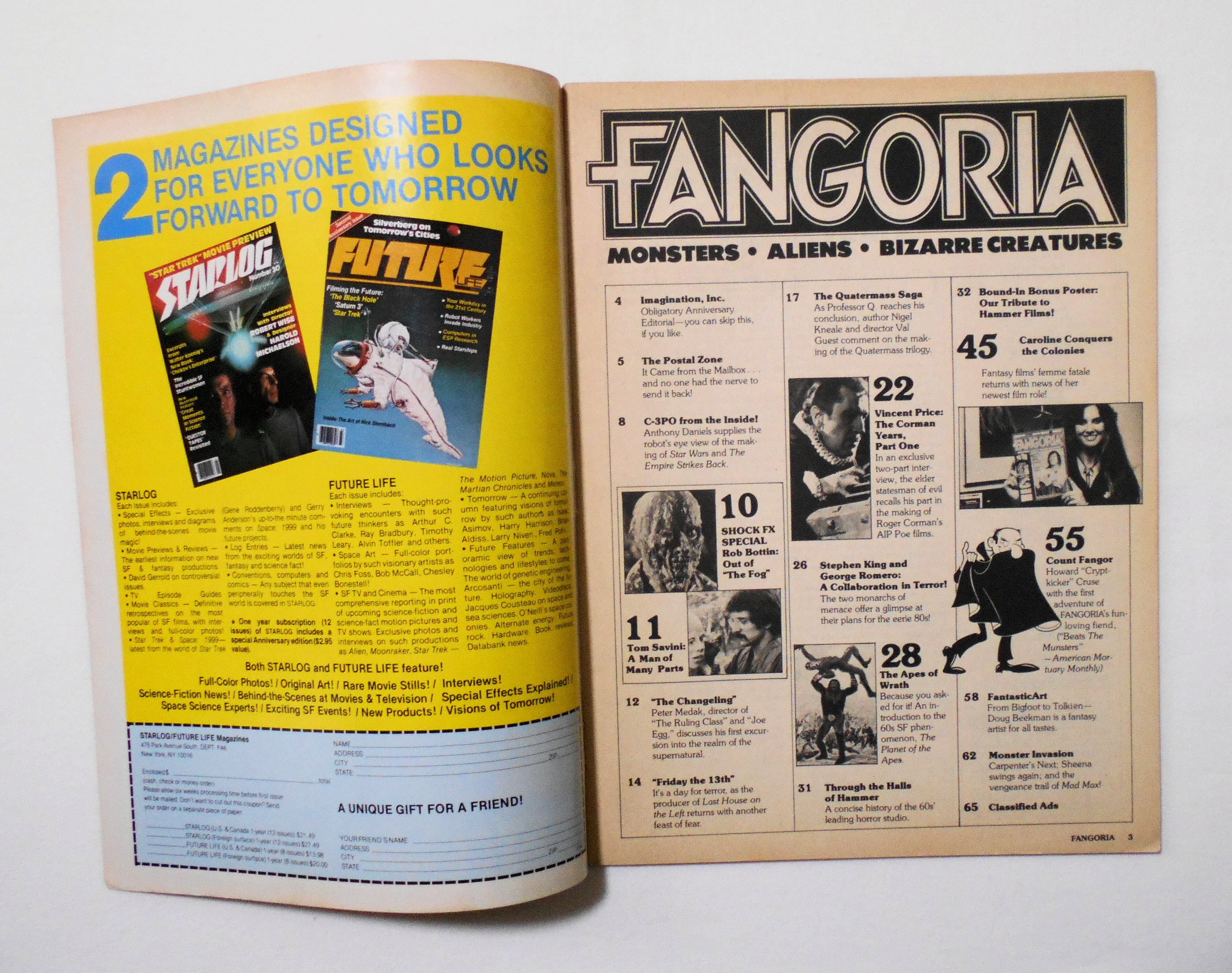 【ファンゴリア FANGORIA: MONSTERS ALIENS BIZARRE CREATURES】 ISSUE #6 VOL.1 1980 O'QUINN STUDIOS - C-3PO STAR WARS / VINCENT PRICE / COUNT FANGOR / FRIDAY THE 13TH etc