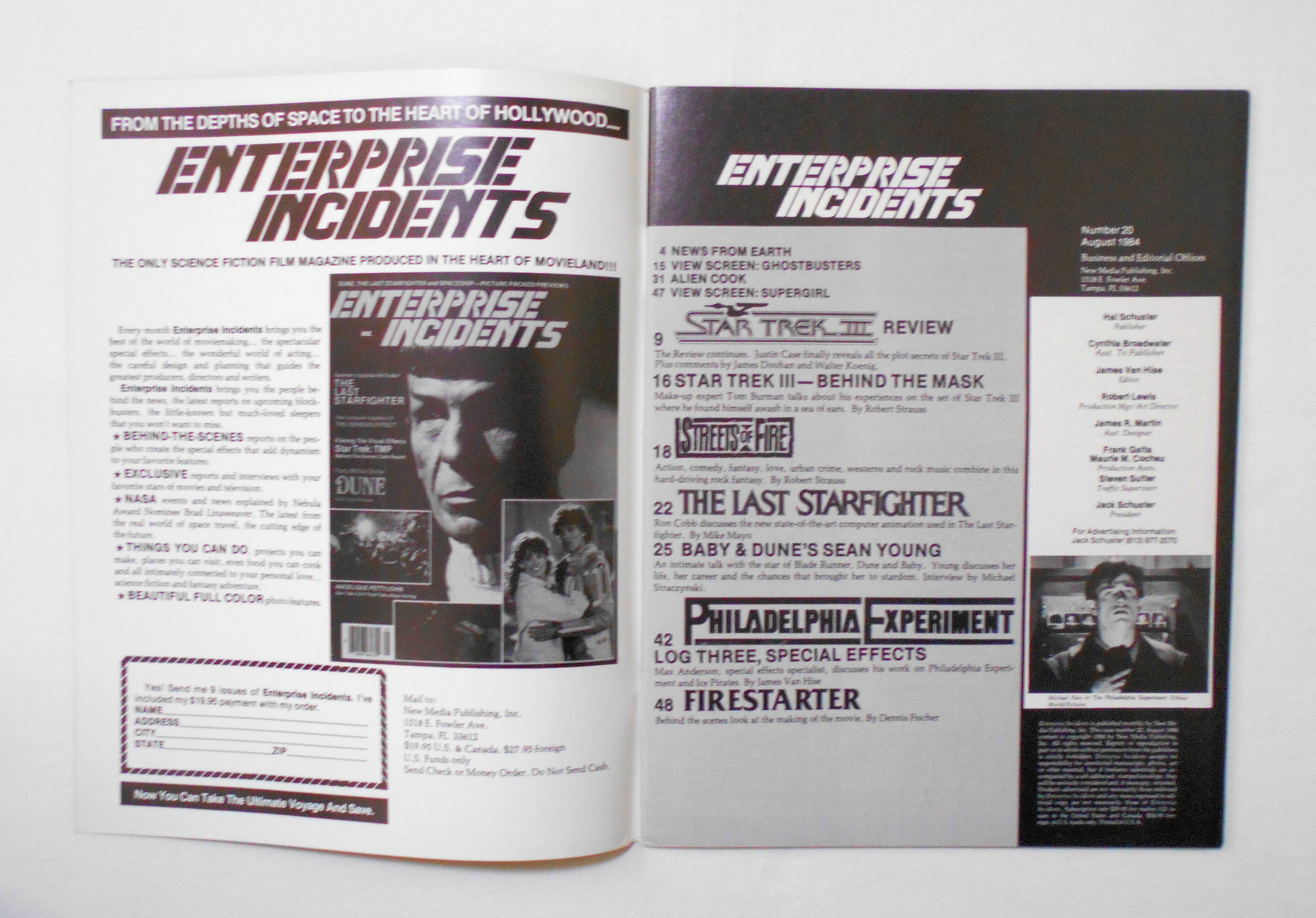 【ENTERPRISE INCIDENTS】 NO.20 AUG. 1984 - STAR TREK / GHOSTBUSTERS / SUPERGIRL / STREETS OF FIRE / THE LAST STARFIGHTER / FIRESTARTER etc