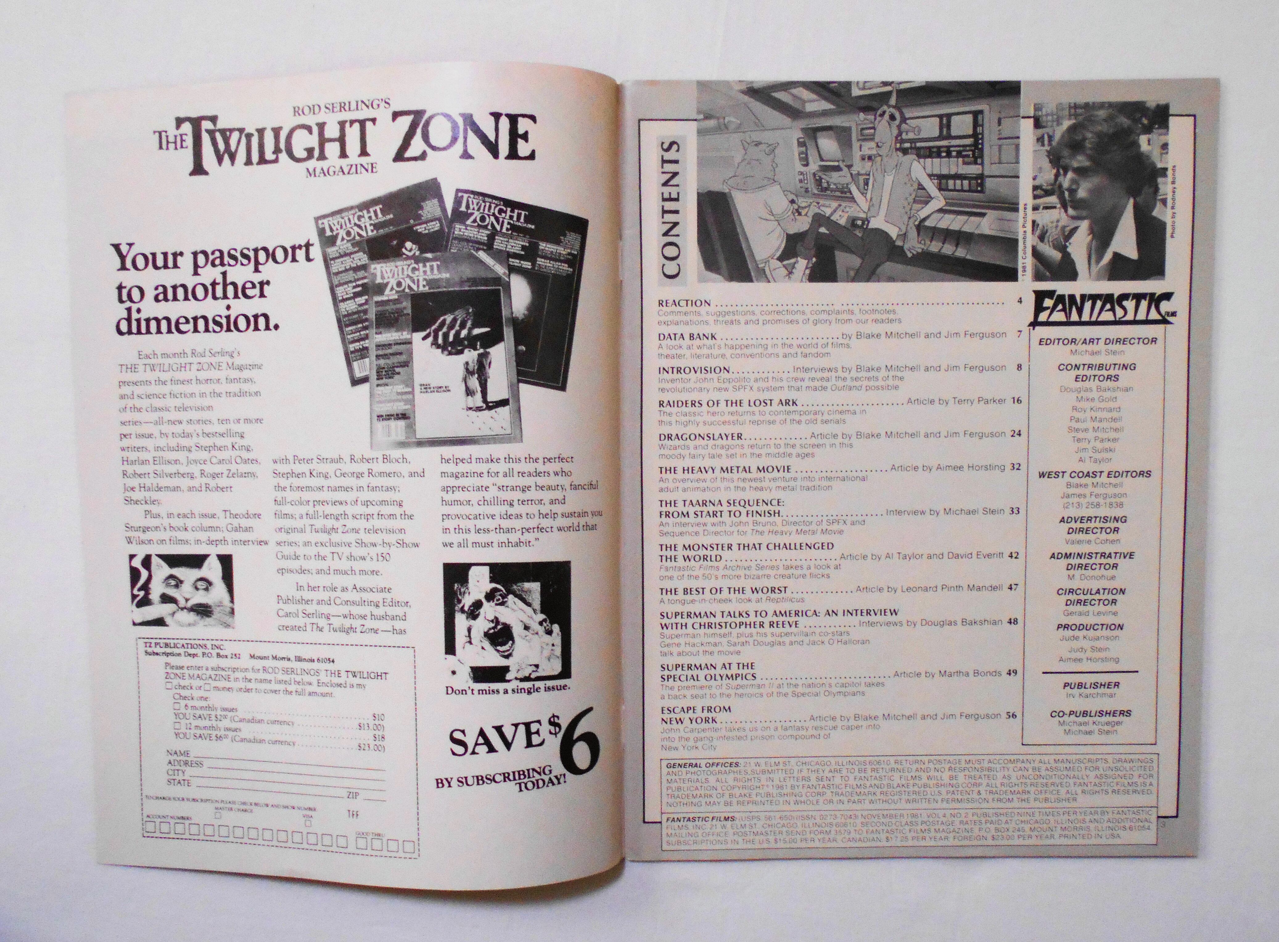 【ファンタスティック・フィルム FANTASTIC FILMS】 #26 VOL.4 NO.2 NOV. 1981 - HEAVY METAL MOVIE / RAIDERS OF THE LOST ARK / DRAGONSLAYER / SUPERMAN II / ESCAPE FROM N.Y. / OUTLAND SPFX etc | LINUS' BLANKET COMIC SHOP