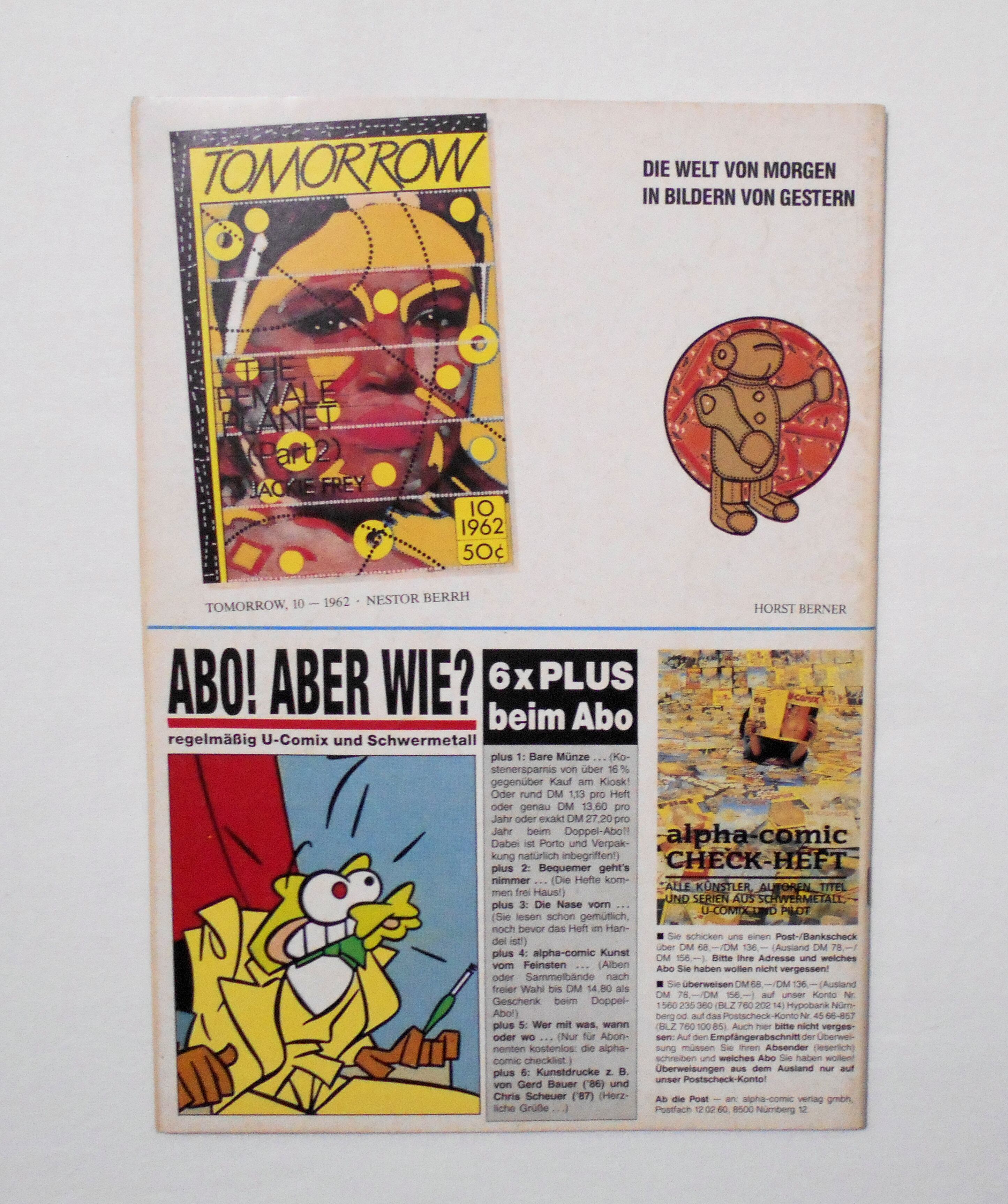 【SCHWERMETAL】 NR.112 1988◆ドイツ語表記◆ページ数表記66ページ 白黒/カラー 大きさ約30×21センチ◆COPYRIGHT 1988 del alpha-comic◆FANTASTISCHE COMICS◆アメリカのアダルト・ファンタジー・コミックマガジン"HEAVY METAL"のドイツ版です。ただ、内容そのままでドイツ語に翻訳されたものなのか、ドイツ独自の編集を行ったものなのかは分かりかねます。もしくは米ヘヴィメタルとは出版上、直接の関係はなく、作風や内容、参加アーティストが似た(似せた?)、同じタイトルのコミックマガジンというだけなのかもしれません(SCHWERMETALはドイツ語でHEAVY METALの意)。予めご理解下さいますようお願い申し上げます。◆アーティスト: HARM BENGEN / PHILIP BERTRAND / INGRID REICHARD / PAUL GILLON / ROBI/GEIER / CLAEYS/NOLANE / BEROY / BESTELLSCHEIN / CARSTEN WIELAND / CHRIS SCHEUER / WALLISER/ABRAHAM / VICTOR / PAOLO E. SERPIERI / NIKOLA / GIRAUD/BATI / HORST BERNER