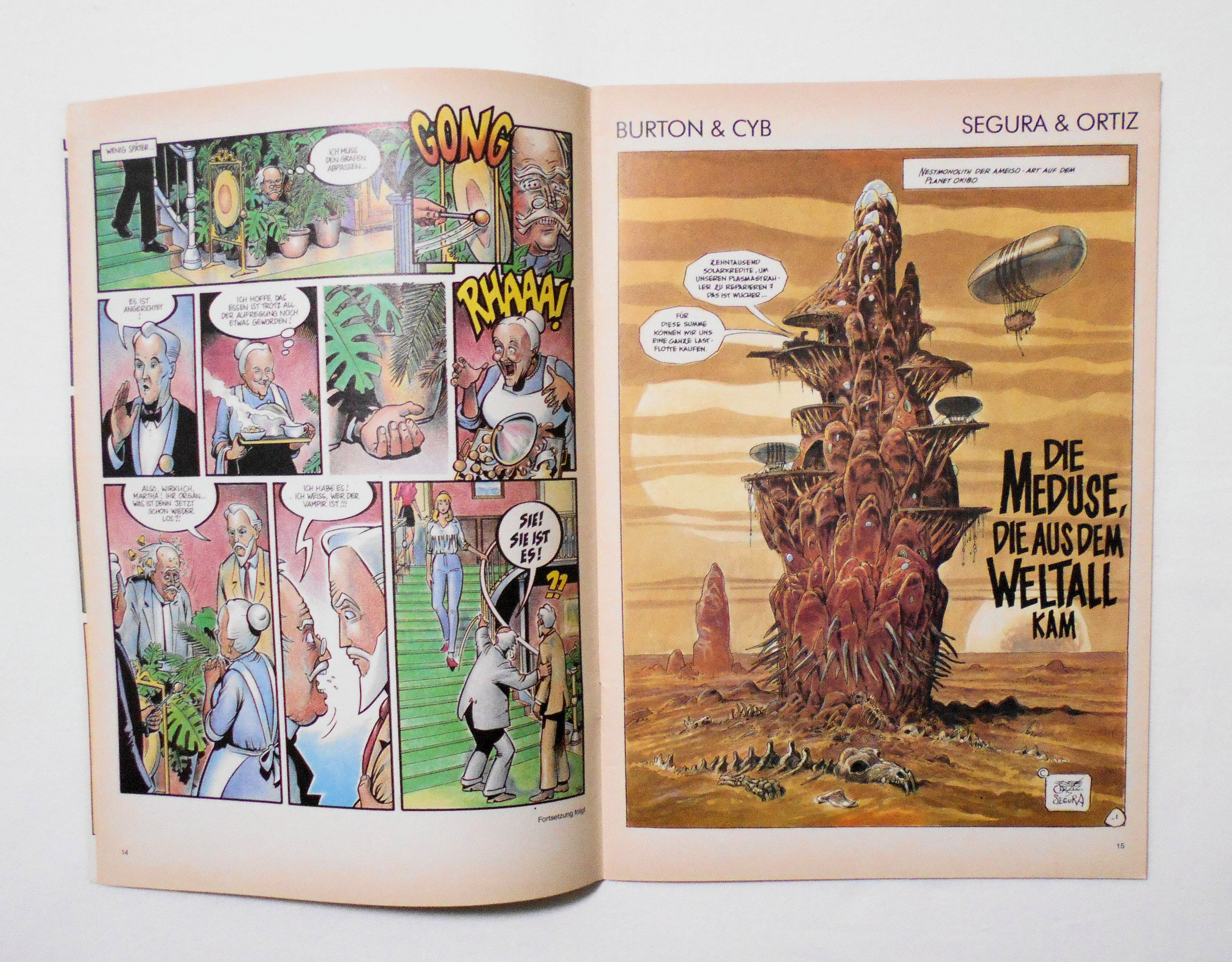 【SCHWERMETAL】 NR.116 1989◆ドイツ語表記◆ページ64(66)ページ 白黒/カラー 大きさ約30×21センチ◆COPYRIGHT 1989 del alpha-comic◆FANTASTISCHE COMICS◆アメリカのアダルト・ファンタジー・コミックマガジン"HEAVY METAL"のドイツ版です。ただ、内容そのままでドイツ語に翻訳されたものなのか、ドイツ独自の編集を行ったものなのかは分かりかねます。もしくは米ヘヴィメタルとは出版上、直接の関係はなく、作風や内容、参加アーティストが似た(似せた?)、同じタイトルのコミックマガジンというだけなのかもしれません(SCHWERMETALはドイツ語でHEAVY METALの意)。予めご理解下さいますようお願い申し上げます。◆アーティスト: CHICHONI(cover) / PHILIPPE BERTRAND / HARM BENGEN / SEGURA/ORTIZ / ROBI/GEIER / BEROY / BESTELLSCHEIN / FRETET / CHARLES BURN / MICRNER & HENDRIK DORGATHEN / ANDREAS