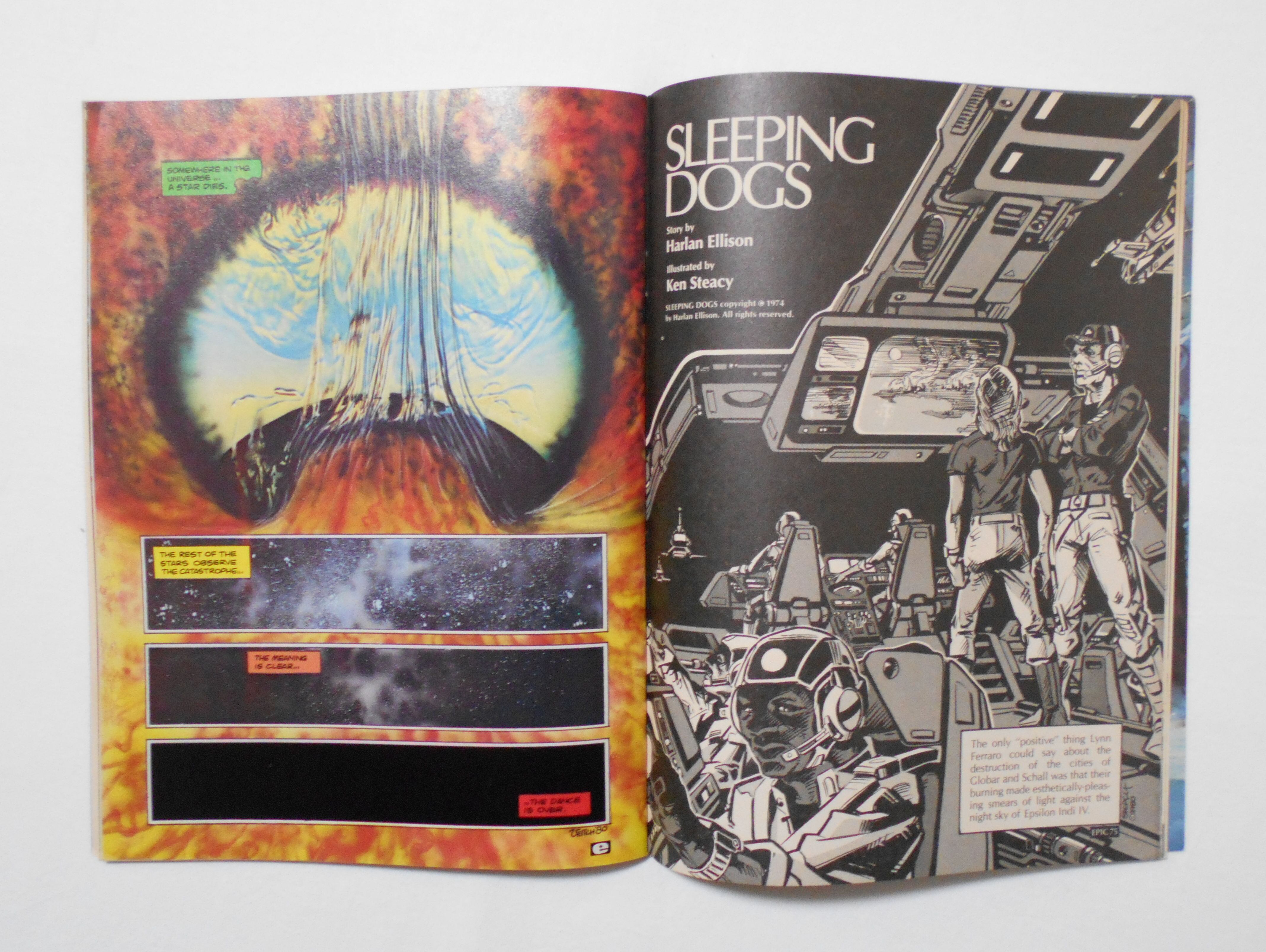 【EPIC ILLUSTRATED - ADULT FANTASY & SCIENCE FICTION feat. ROBERT E.HOWARD, HARLAN ELLISON, MICHAEL MOORCOCK & many more】 WINTER 1980 VOL.1 NO.4◆中古コミック雑誌。英文表記の洋書となります。◆98ページ カラー/白黒 大きさ約27.5×20.5センチ◆MARVEL COMICS GROUP◆COVER ART by MICHAEL W. KALUTA◆“PORTFOLIO: THE ART of SHOTARO ISHIMORI”と題した、石ノ森章太郎(当時は石森)特集(3ページ)他、HARLAN ELLISONの短篇をコミック化した"SLEEPING DOGS"等、サイエンス・フィクション&ファンタジー系の大人向けコミック作品を収録。