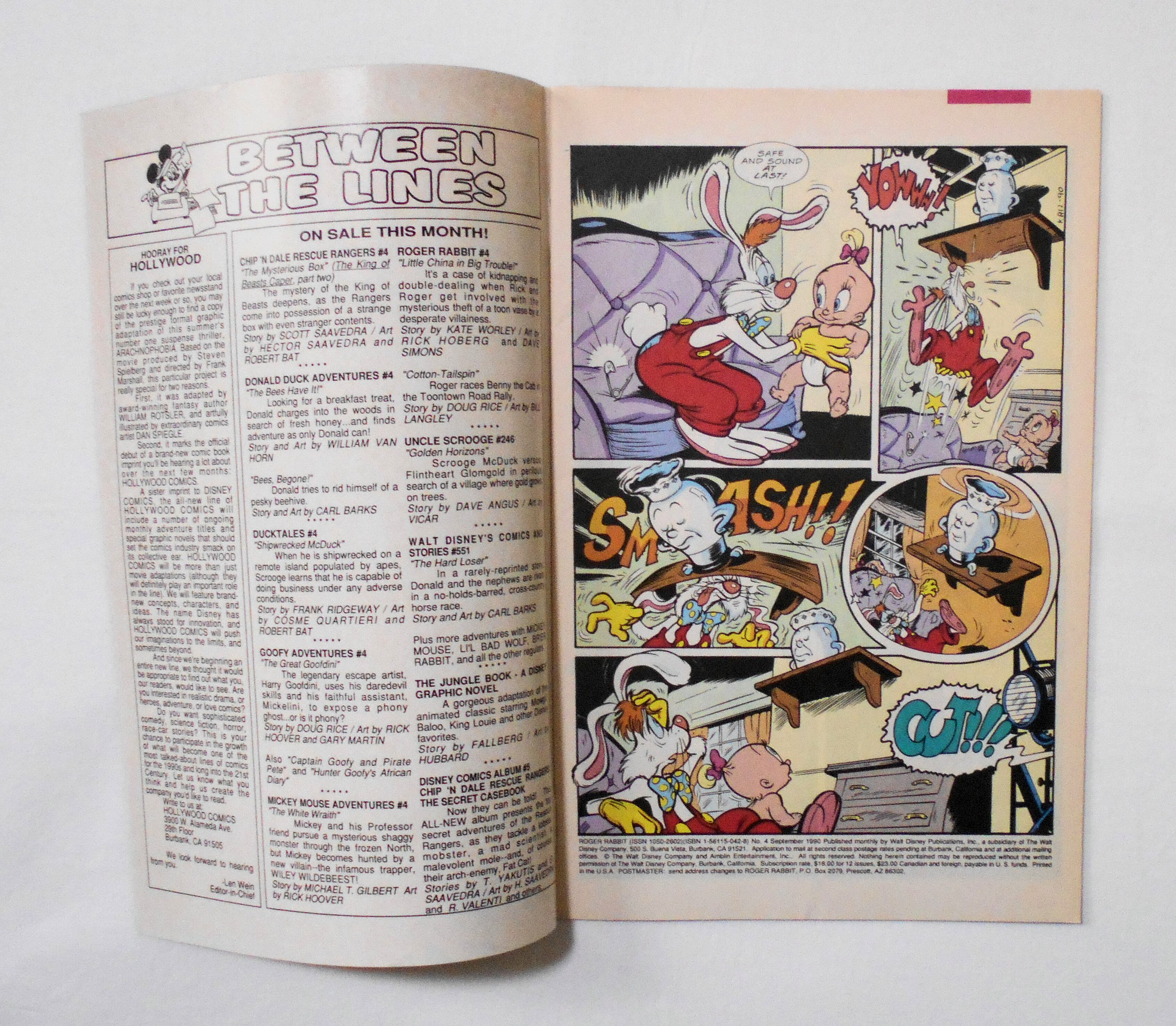 【ROGER RABBIT ロジャー・ラビット】 NO.4 SEPT. 1990◆中古アメリカン・コミック。英文表記の洋書となります。◆32ページ カラー 大きさ約26×17センチ◆WALT DISNEY PUBLICATIONS, INC.◆THE WALT DISNEY COMPANY & AMBLIN ENTERTAINMENT, INC.