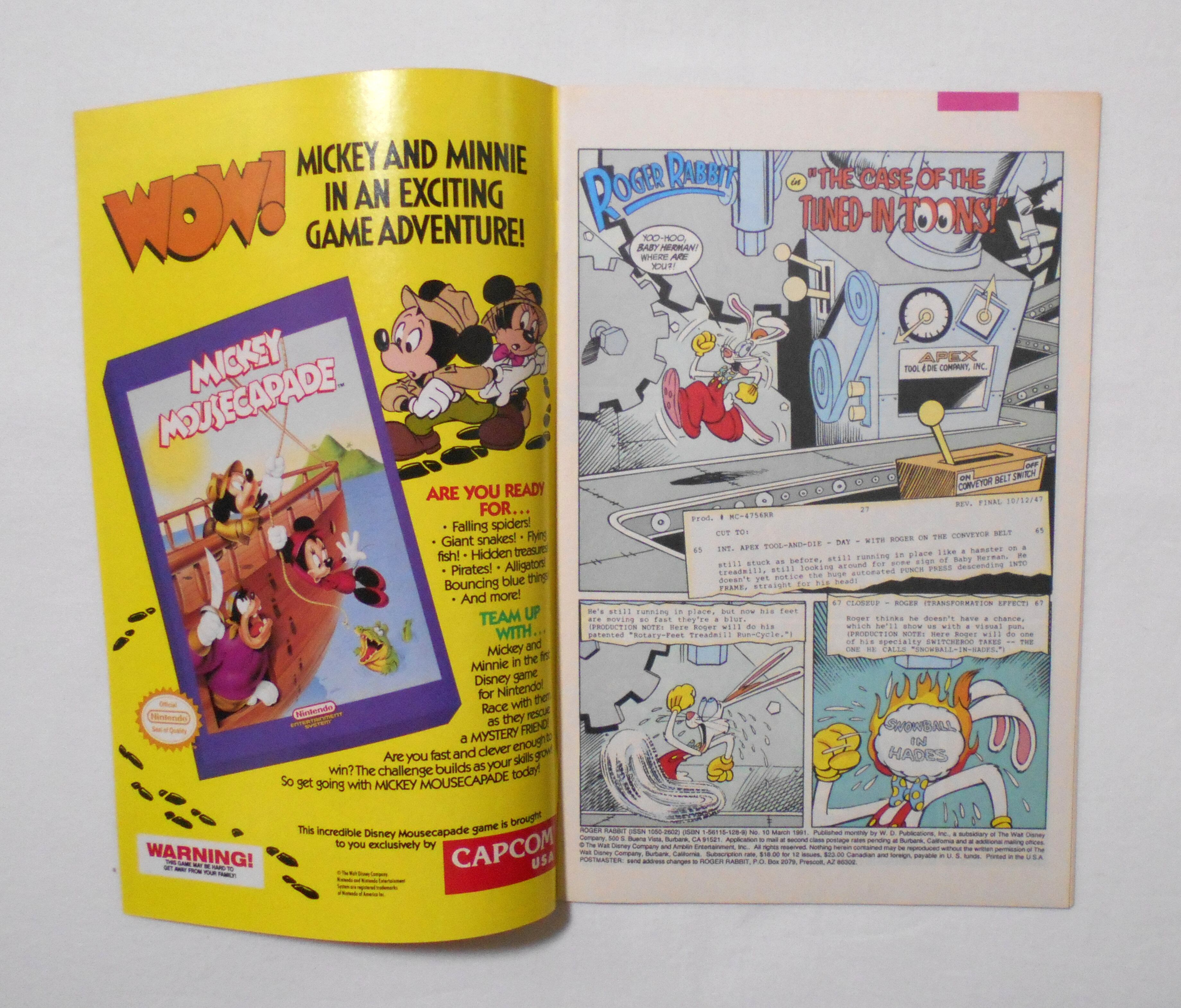 【ROGER RABBIT ロジャー・ラビット】 NO.10 MARCH 1991◆中古アメリカン・コミック。英文表記の洋書となります。◆32ページ カラー 大きさ約26×17センチ◆WALT DISNEY PUBLICATIONS, INC.◆THE WALT DISNEY COMPANY & AMBLIN ENTERTAINMENT, INC.