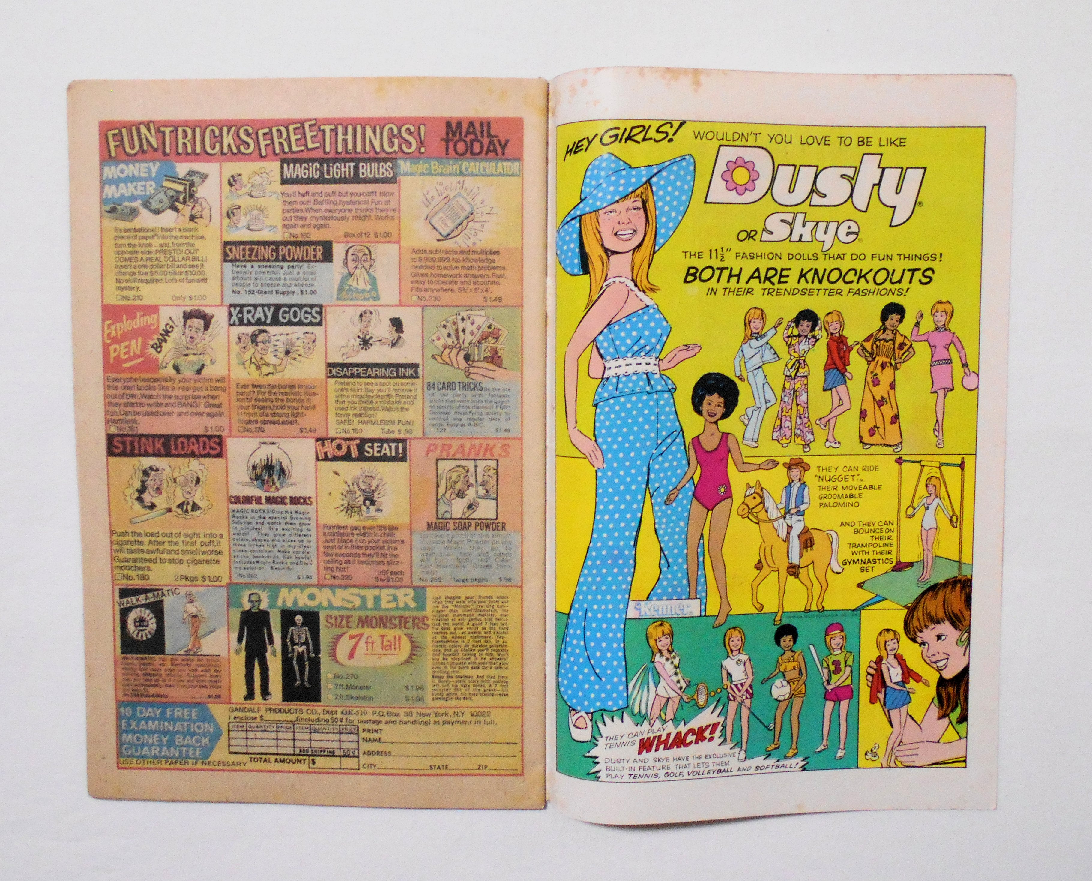 多少の擦れやシワ、黄ばみ、紙ジミ、角や端の傷みや折れ、微破れ等があり、経年に伴う使用感はやや強めと言えますが、目立った汚れやシミ等はなく、1970年代の輸入中古コミックですので、その点を考慮頂ければ、普通程度~おおむねきれいな状態だと思います。新品同様の美品をお求めの方や、中古品にご理解が頂けない方にはお薦め出来ません。