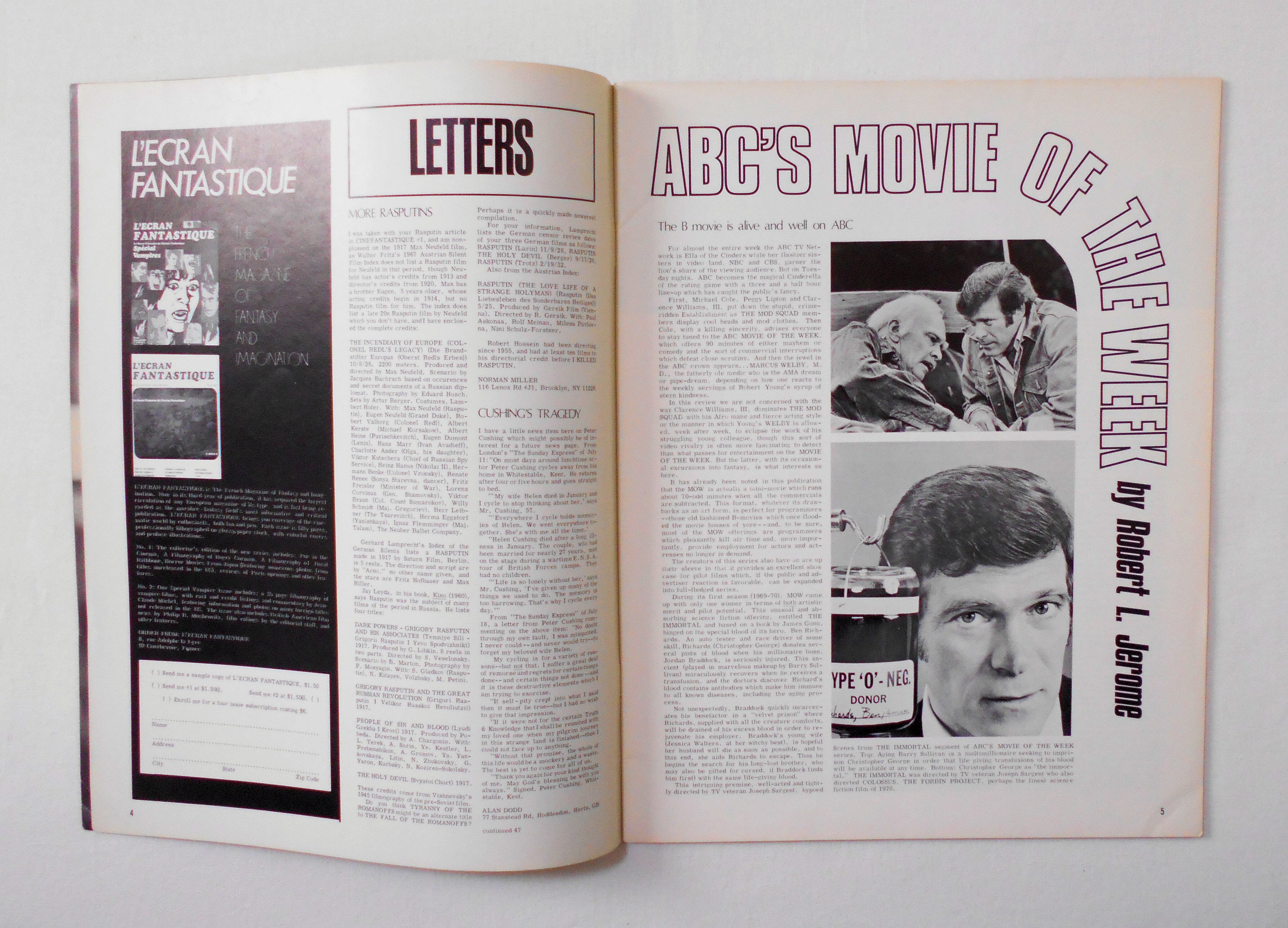 【CINEFANTASTIQUE MAGAZINE】 VOL.1 NO.4 FALL 1971◆GEORGE PAL/TV MOVIES/FILMMUSIC/ PHOTOS NEWS AND REVIEWS OF THE WORLD OF HORROR, FANTASY AND SCIENCE FICTION FILMS◆中古雑誌。英文表記の洋書となります。◆ページ数表記47ページ 白黒/カラー 大きさ約28×21センチ◆COPYRIGHT 1971 by FREDERICK S. CLARKE