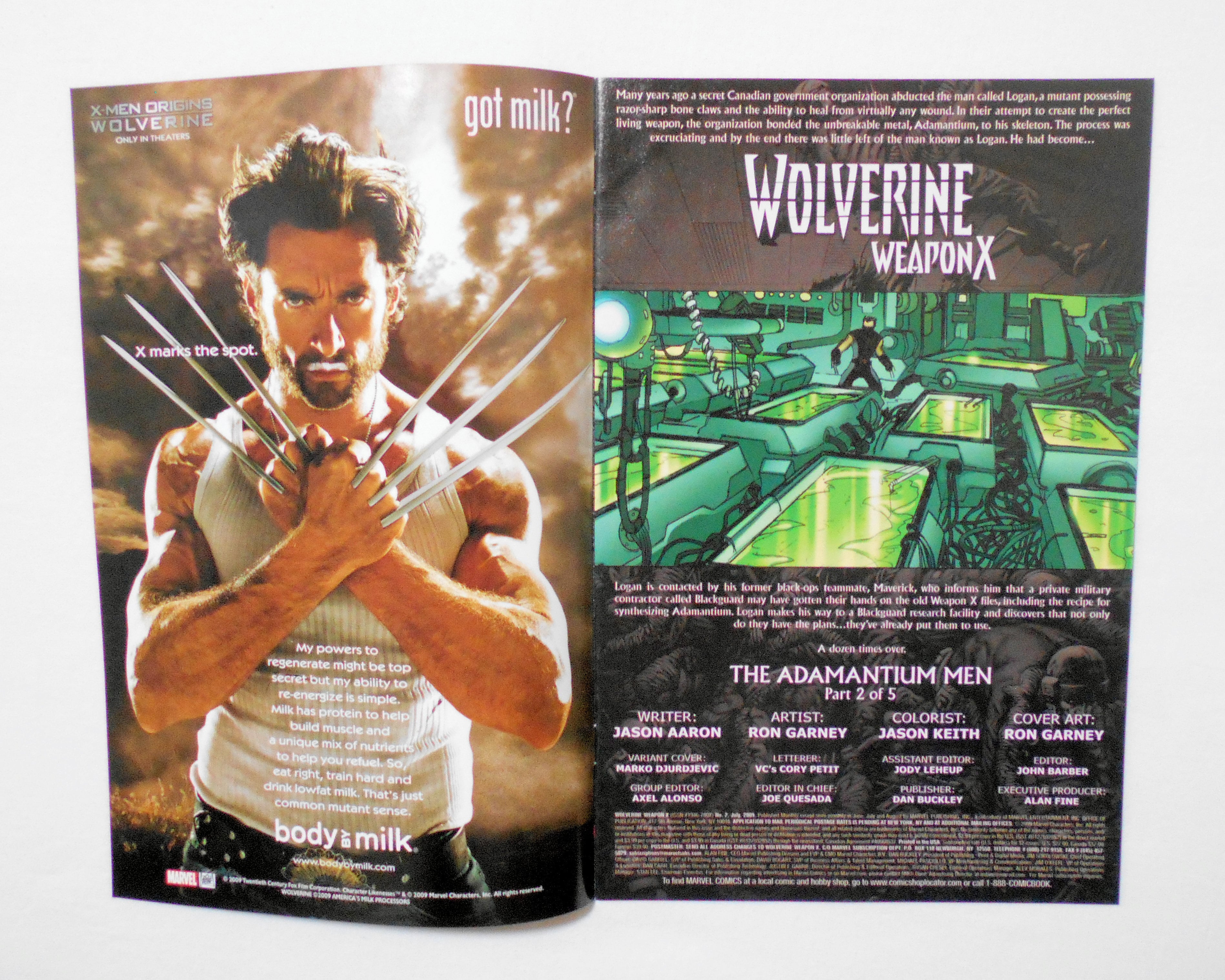 【WOLVERINE WEAPON X】 NO.2 VARIANT EDITION JULY 2009◆"THE ADAMANTIUM MEN PART 2 of 5"◆中古アメリカン・コミック。英文表記の洋書となります。◆32ページ カラー 大きさ約26×17センチ◆MARVEL PUBLISHING,INC.