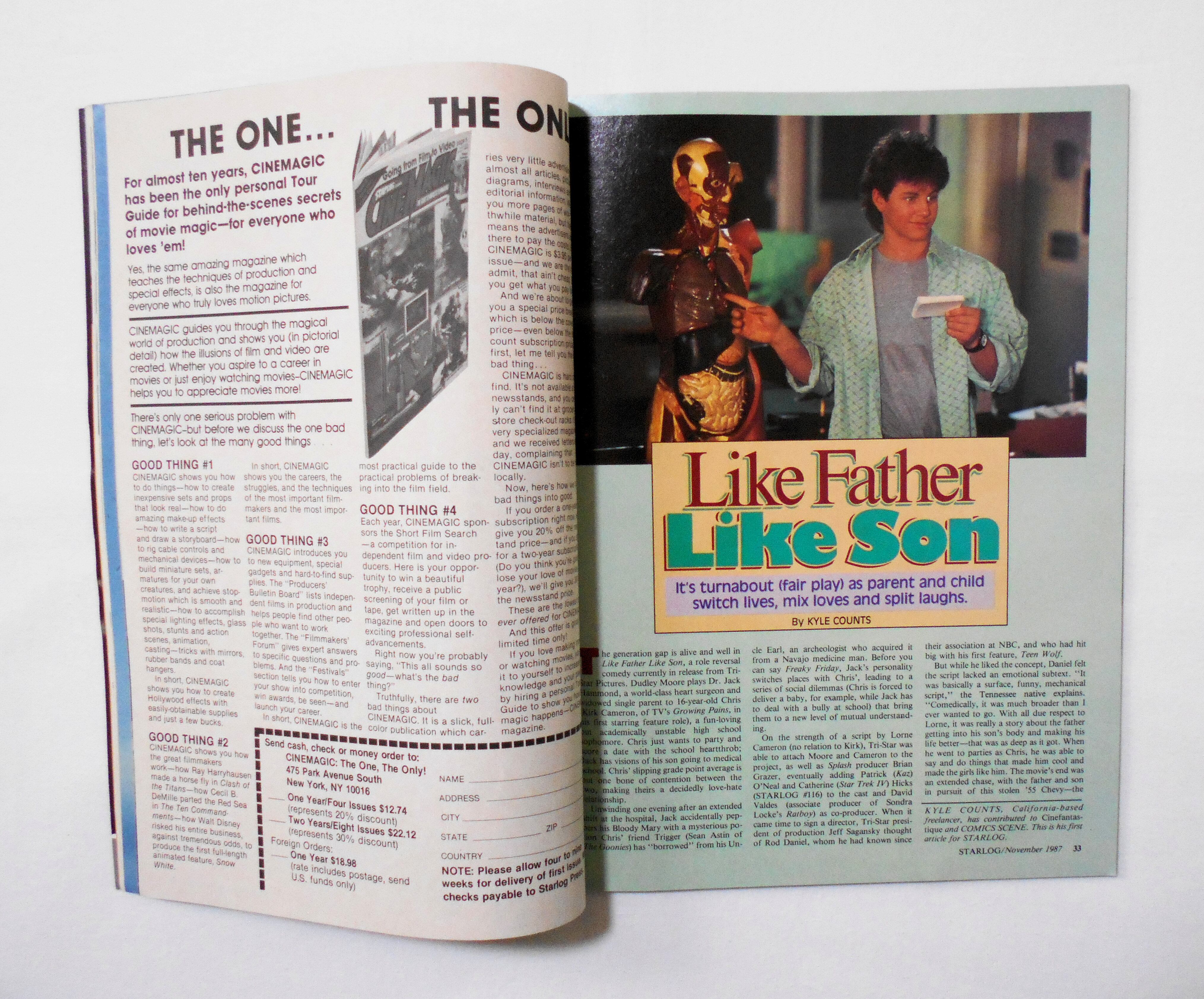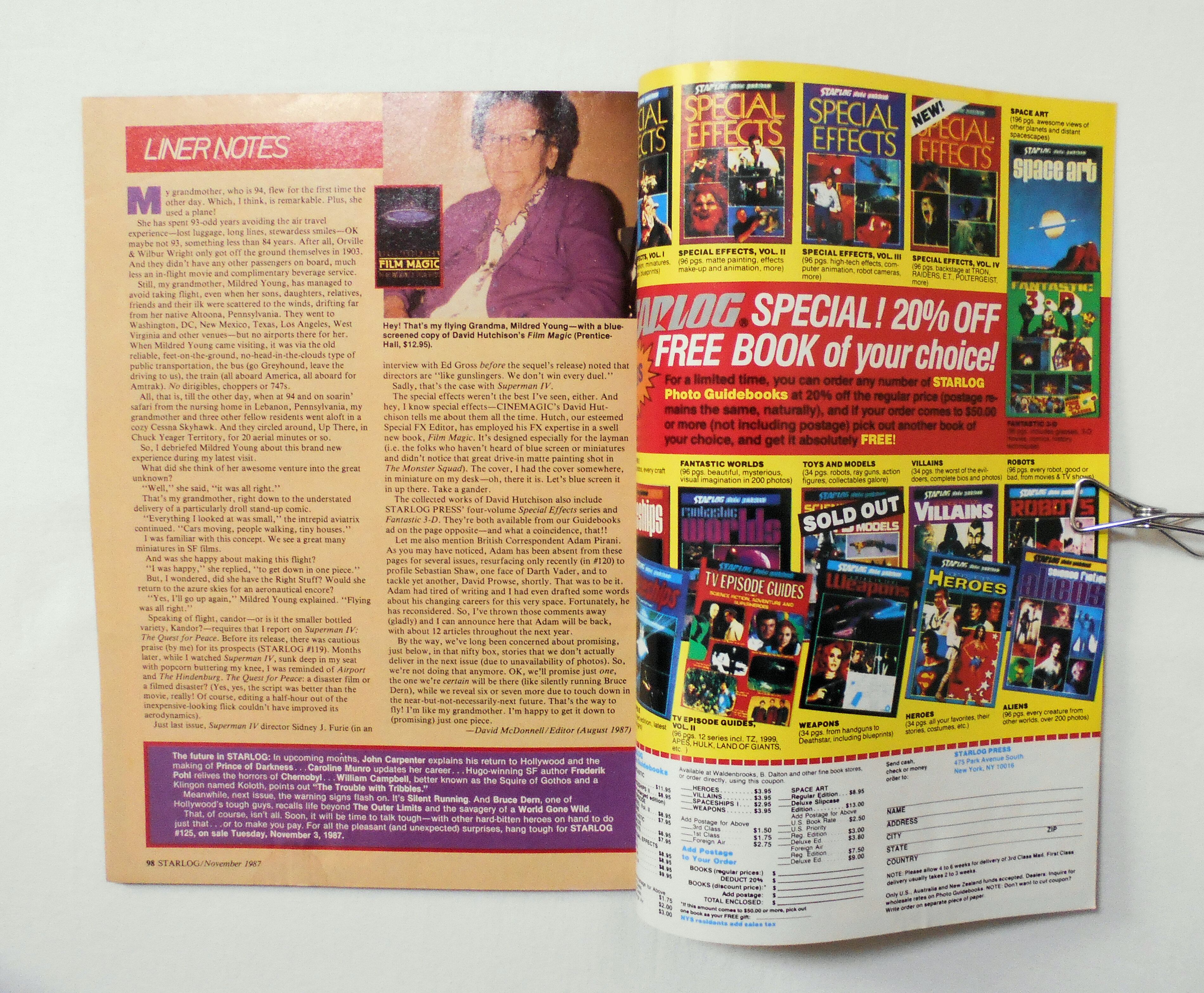 【STARLOG THE SCIENCE FICTION UNIVERSE】 NO.124 NOV. 1987◆中古雑誌。英文表記の洋書となります。◆98ページ カラー/白黒 大きさ約27.5×20.5センチ◆O'QUINN STUDIOS,INC.