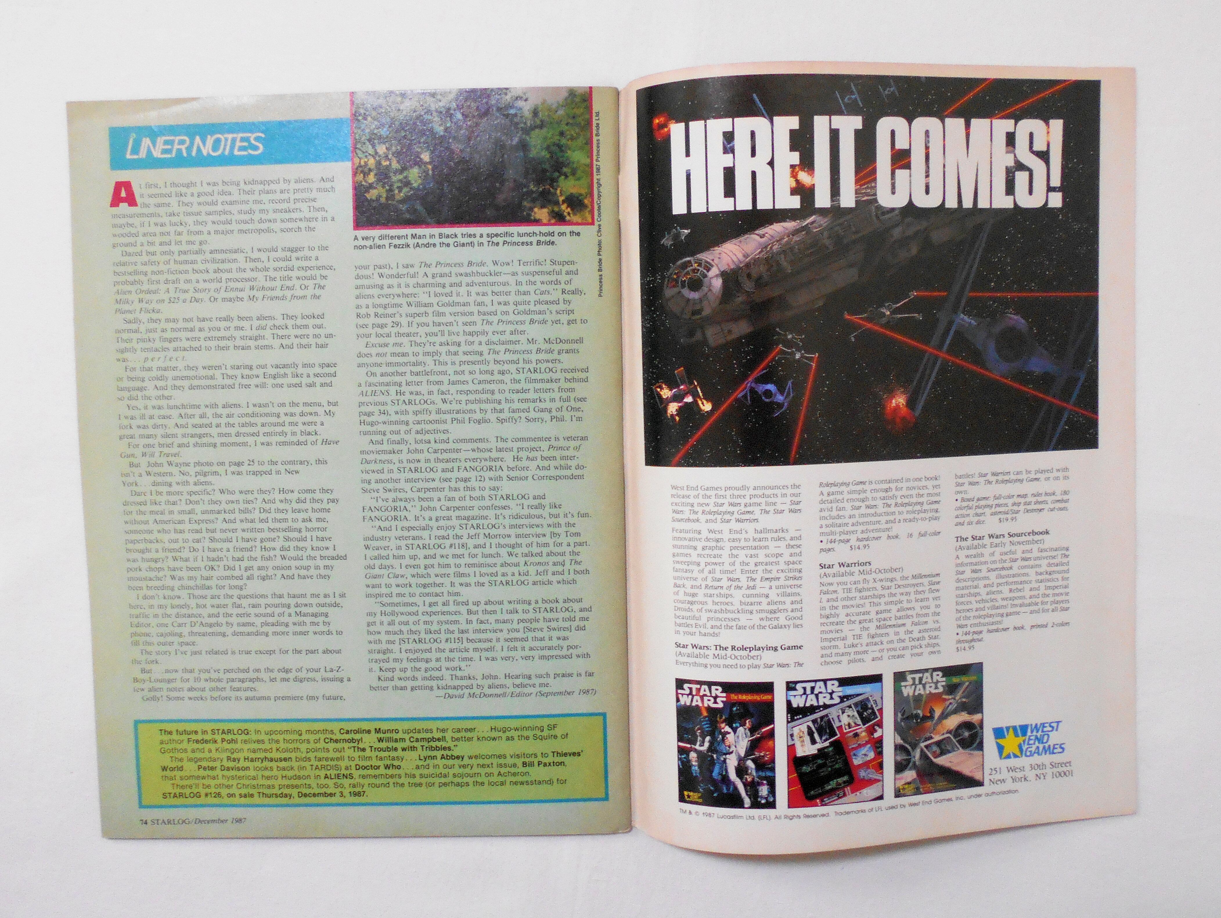 【STARLOG THE SCIENCE FICTION UNIVERSE】 NO.125 DEC. 1987◆中古雑誌。英文表記の洋書となります。◆74ページ カラー/白黒 大きさ約27.5×20.5センチ◆O'QUINN STUDIOS,INC.