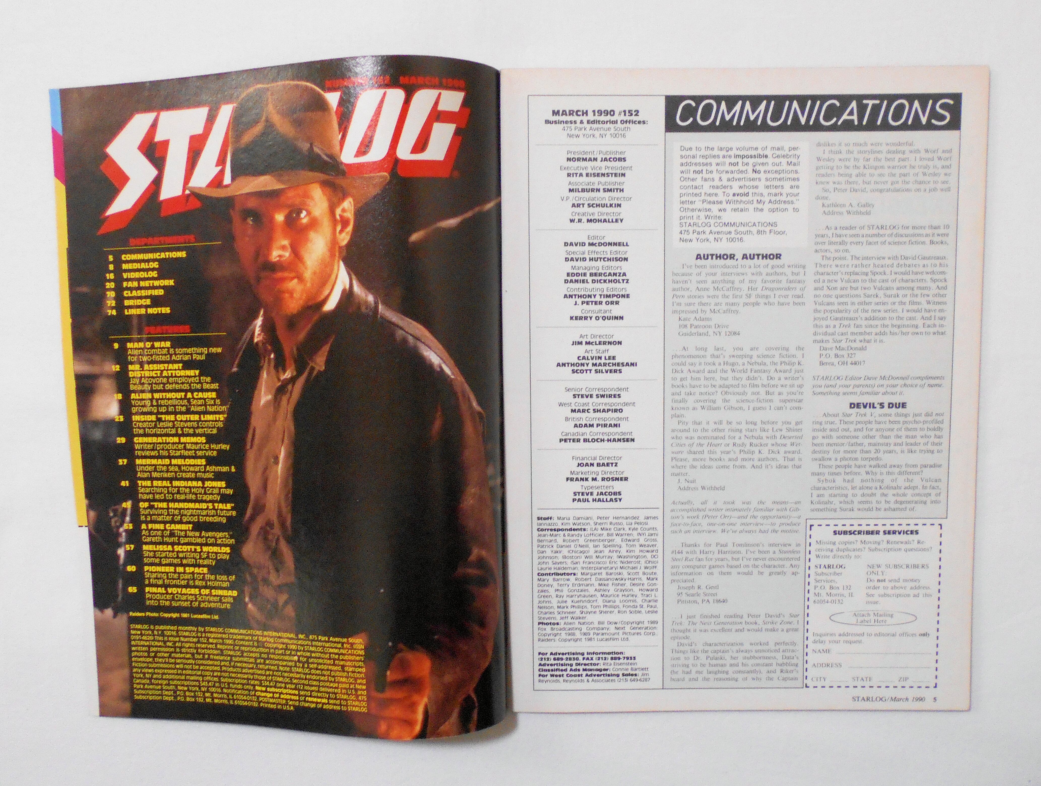 【STARLOG THE SCIENCE FICTION UNIVERSE US版スターログ】 NO.152 <1990年> INDIANA JONES / THE OUTER LIMITS / ALIEN NATION / BEAUTY & THE BEAST / LITTLE MERMAID etc | LINUS' BLANKET COMIC SHOP