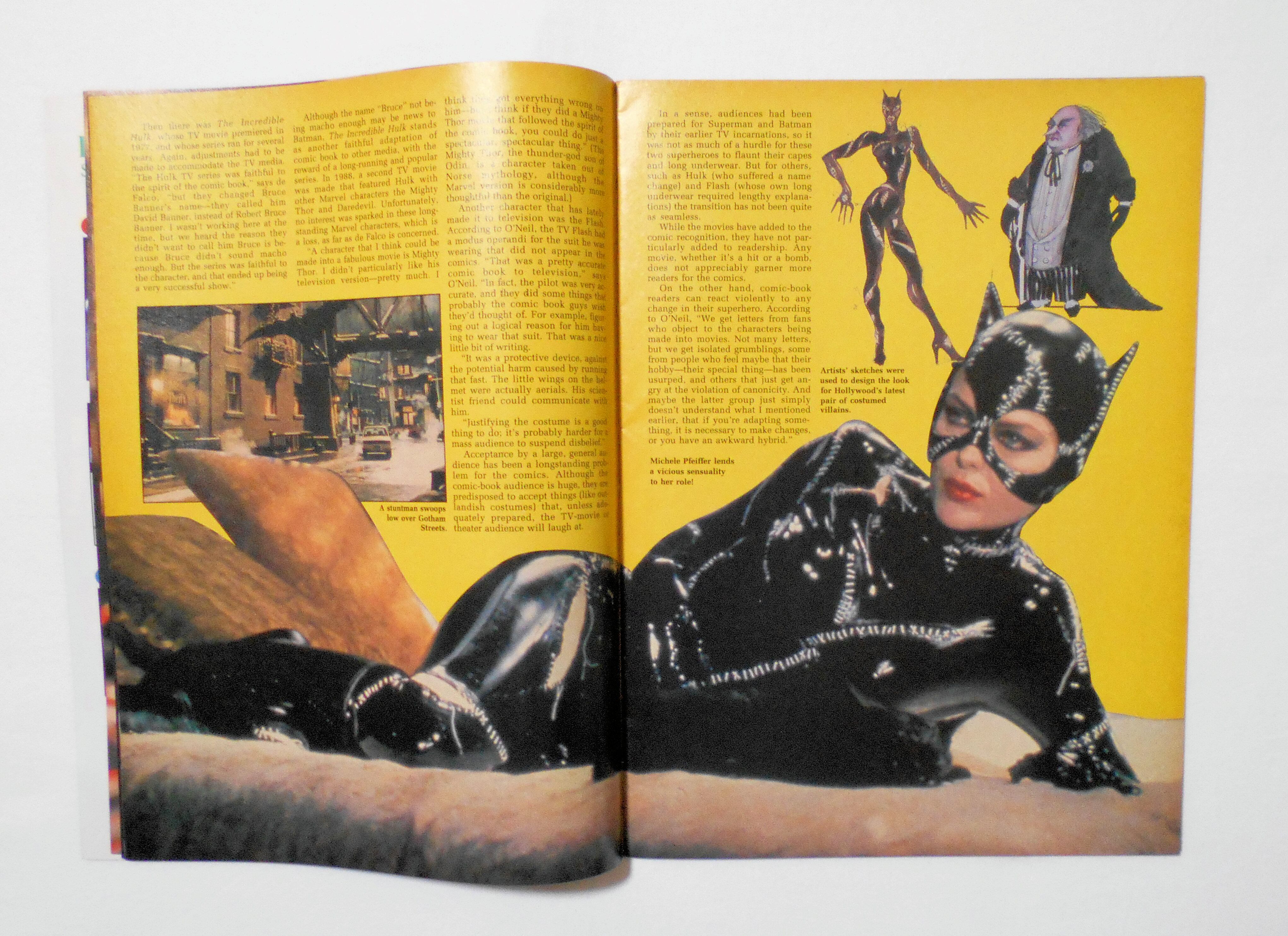 26~42ページが欠品、特集"X-CARDS! THE TRADING IS HOT!"の殆どがなく、またおそらくですが、表紙に記載のPOSTERS! PENGUIN! CATWOMAN! BATMOBILE! MORE! もこの欠品部分に含まれていたと思います。背の下端~下ホッチキスまで切れています。他、多少の擦れやシワ、黄ばみ、角や端の傷みや折れ等があり、経年に伴う使用感は否めませんが、目立った汚れやシミ等はなく、1990年代の輸入中古雑誌ですので、その点を考慮頂ければ、普通程度~おおむねきれいで良好と言える保存状態だと思います。新品同様の美品をお求めの方や、中古品にご理解が頂けない方にはお薦め出来ません。