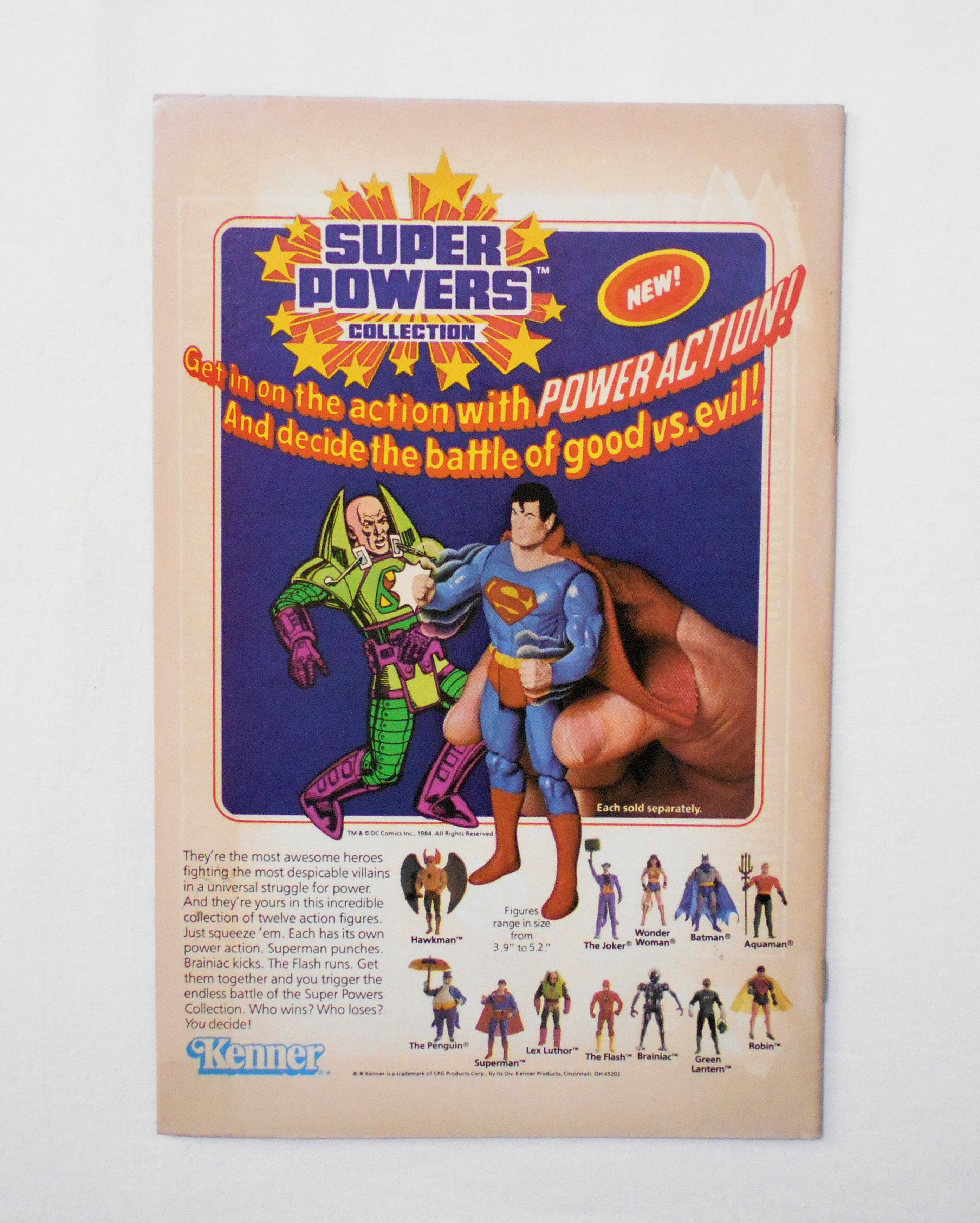 背から内側へ約1センチ縦方向に折れ目が付いています。他、多少の擦れやシワ、黄ばみ、紙ジミ、角や端の傷みや折れ等があり、経年に伴う使用感は否めませんが、目立った汚れやシミ等はなく、1980年代の輸入中古コミックですので、その点を考慮頂ければ、普通程度~おおむねきれいな状態だと思います。新品同様の美品をお求めの方や、中古品にご理解を頂けない方にお薦めは出来ません。