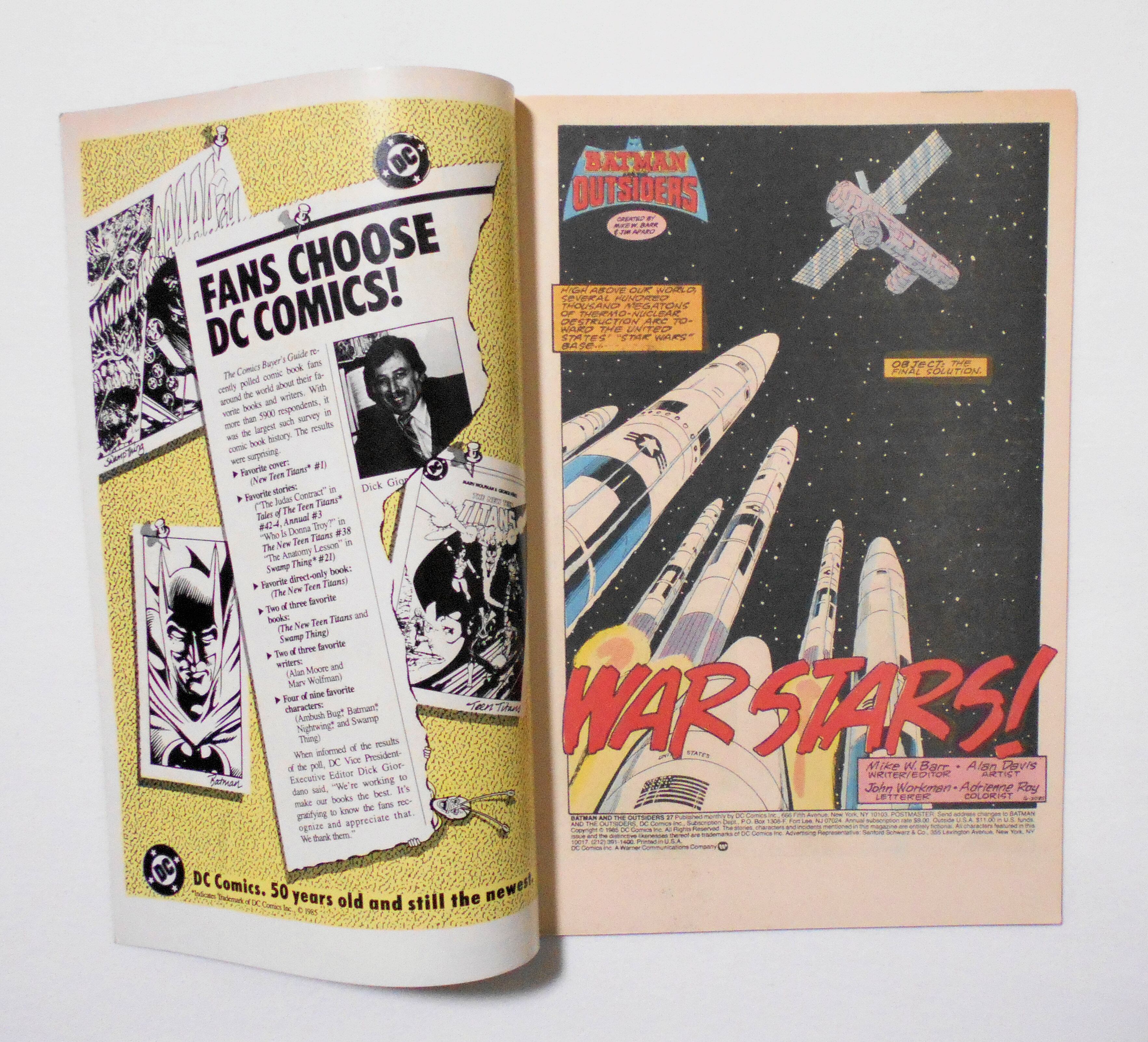 【BATMAN & THE OUTSIDERS】#27 NOV. 1985◆中古アメリカン・コミック。英文表記の洋書となります。◆48ページ フルカラー 大きさ約26×17センチ◆DC COMICS INC.◆INCLUDE "SPECIAL MASK PREVIEW"(15ページ)