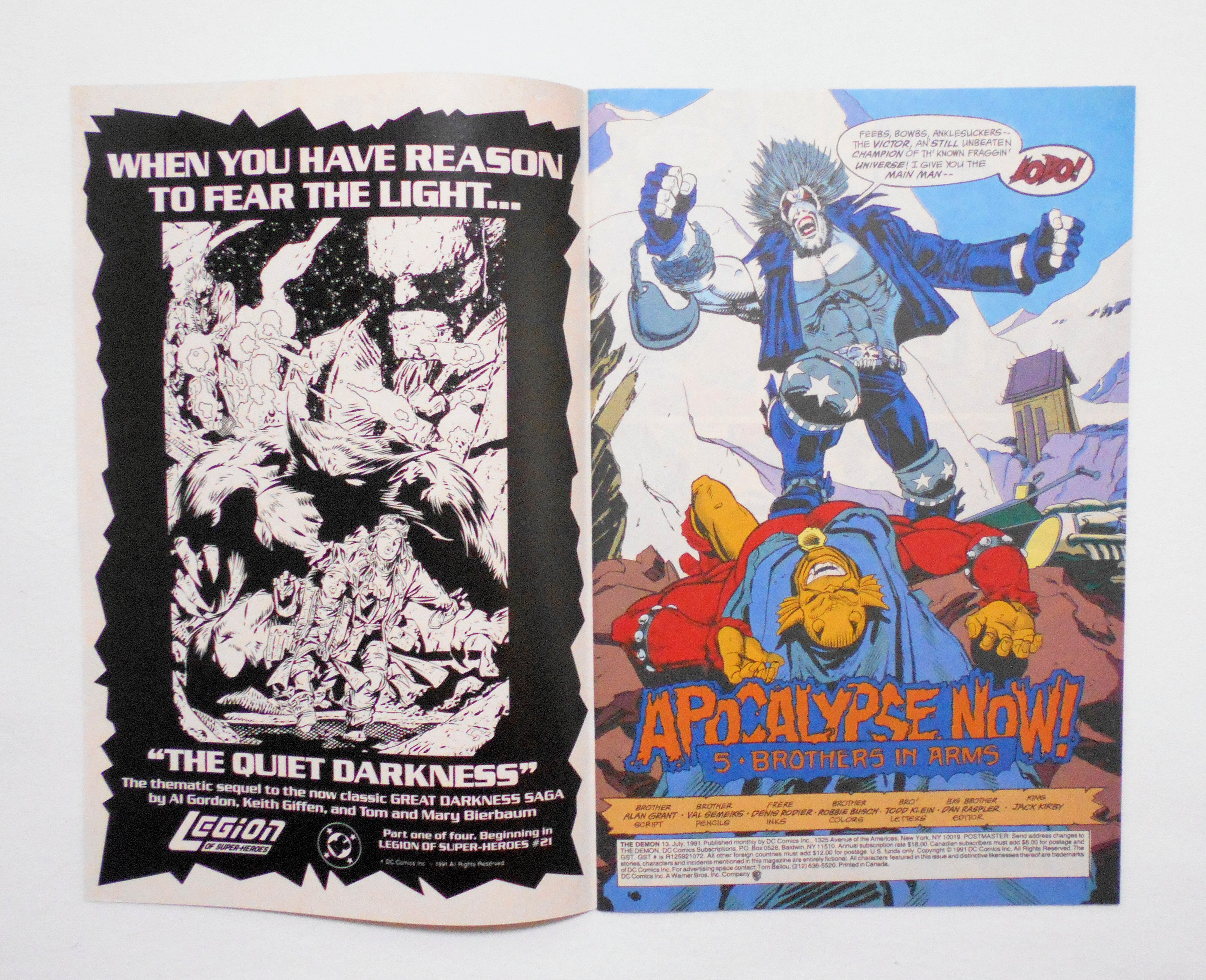 【THE DEMON】 #13 JULY 1991◆APOCALYPSE NOW! PART 5: BROTHERS IN ARMS◆by GRANT/SEMEIKS/ RODIER◆中古アメリカン・コミック。英文表記の洋書となります。◆32ページ フルカラー 大きさ約26×17センチ◆DC COMICS