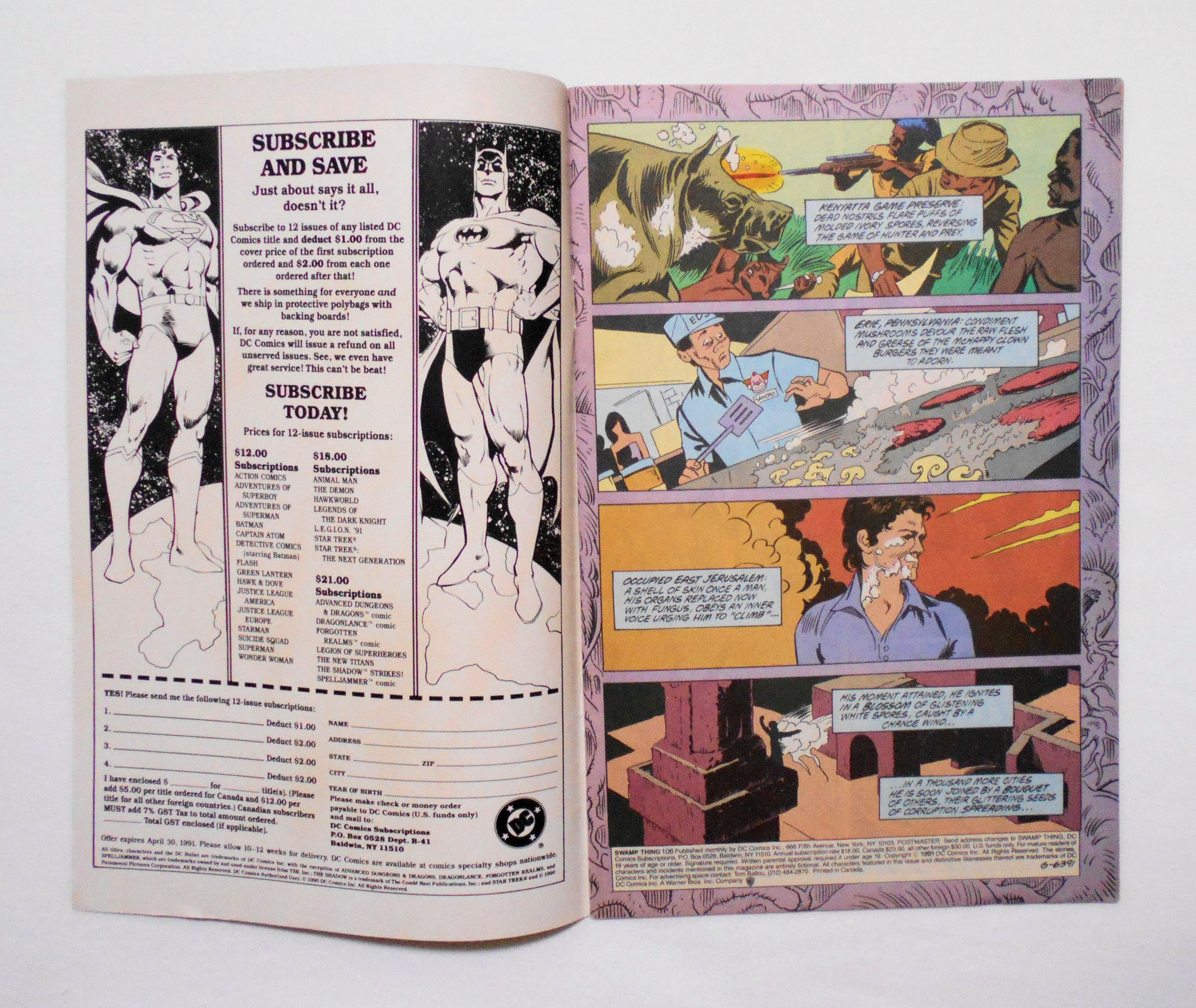 【SWAMP THING】 #106 APRIL 1991◆THE QUEST FOR THE ELEMENTALS: 3◆SUGGESTED FOR MATURE READERS◆中古アメリカン・コミック。英文表記の洋書となります。◆32ページ フルカラー 大きさ約26×17センチ◆DC COMICS, INC.