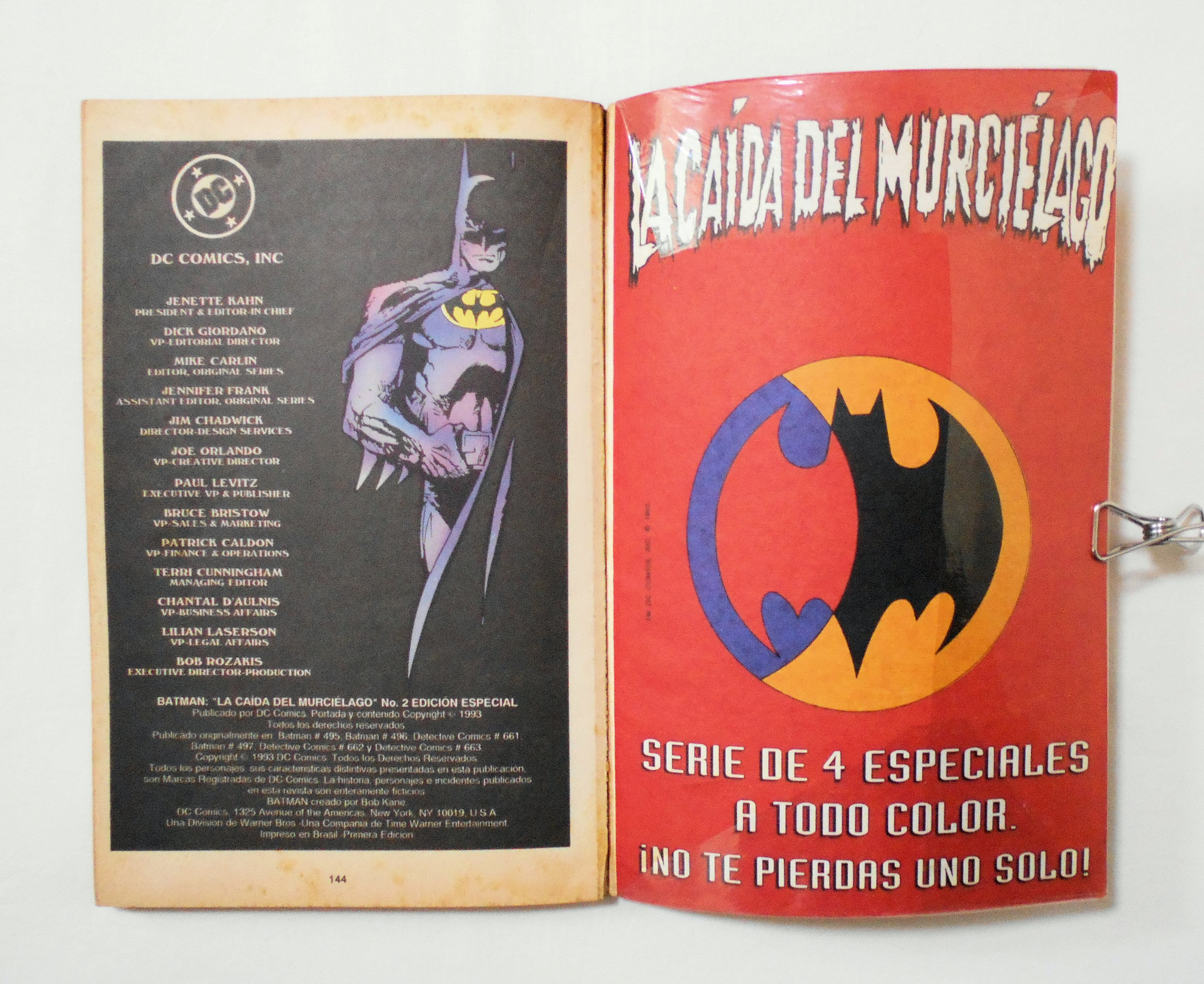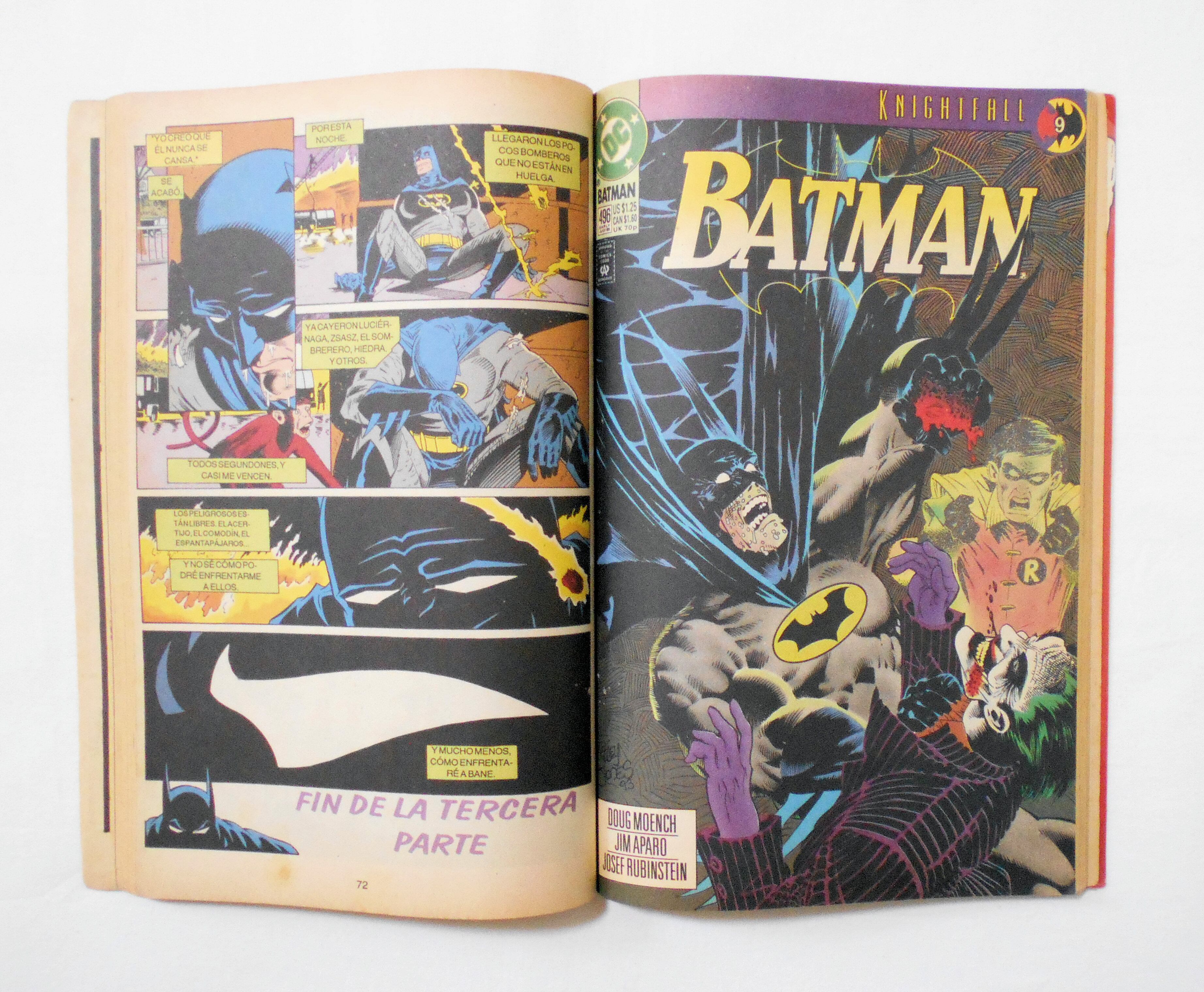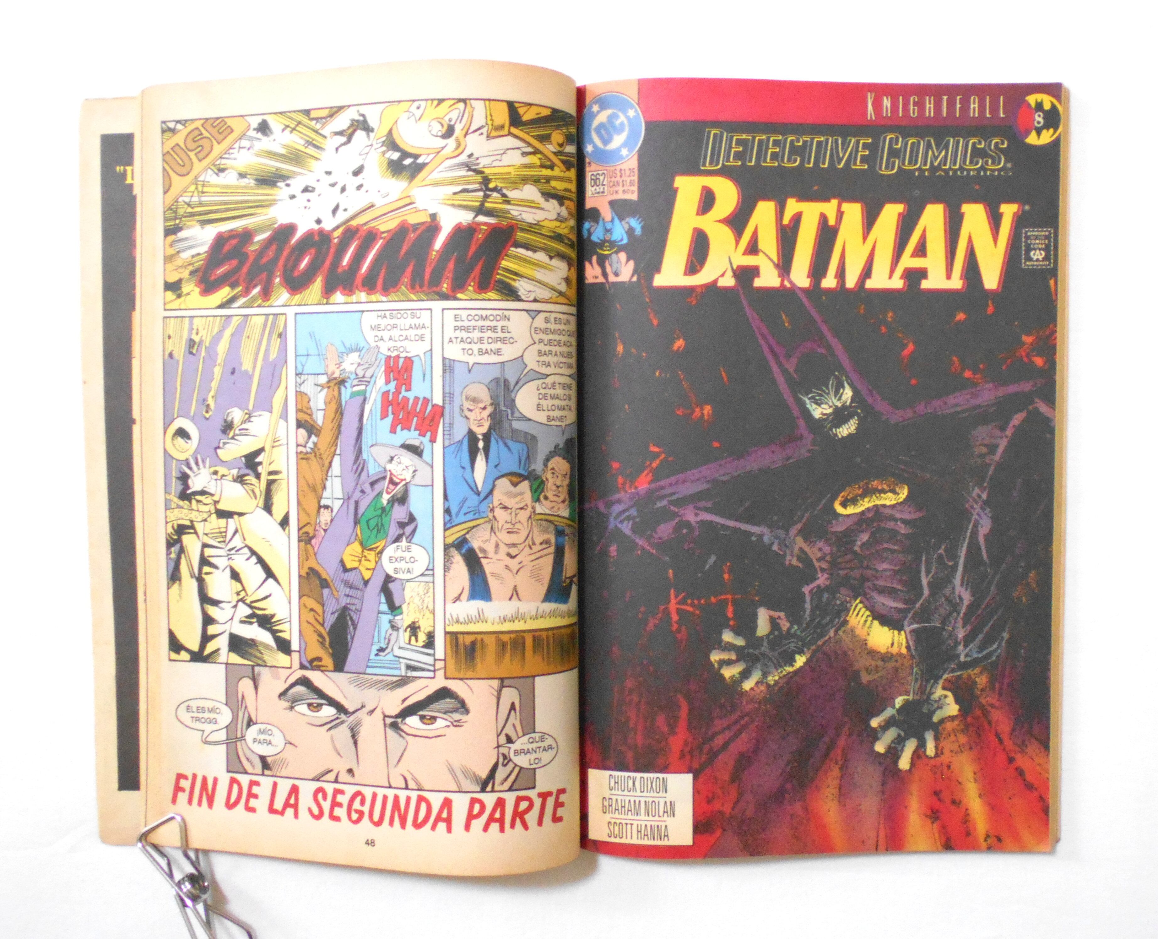 【LA DAIDA DEL MURCIELAGO TOMO 2】TPB◆ORIGINALLY PUBLISHED as DETECTIVE COMICS #661 (KNIGHTFALL #6), BATMAN #495 (KNIGHTFALL #7), DETECTIVE COMICS #662 (KNIGHTFALL #8), BATMAN #496 (KNIGHTFALL #9) & DETECTIVE COMICS #663 (KNIGHTFALL #10) ←最後のページに詳細が記載されていますが、間違っており、こちらが正しいものとなります。◆中古アメリカン・コミック。ポルトガル語表記の洋書となります。◆ページ数表記144ページ フルカラー 大きさ約26×16.5センチ◆DC COMICS◆映画『ダークナイト ライジング "The Dark Knight Rises" ('12)』の原案となったことでも有名なエピソード"KNIGHTFALL"を編集したポルトガル版コミックです。日本でポルトガル版コミックの需要は分かりませんが、レア度の高い入手困難なコミックには間違いございません。