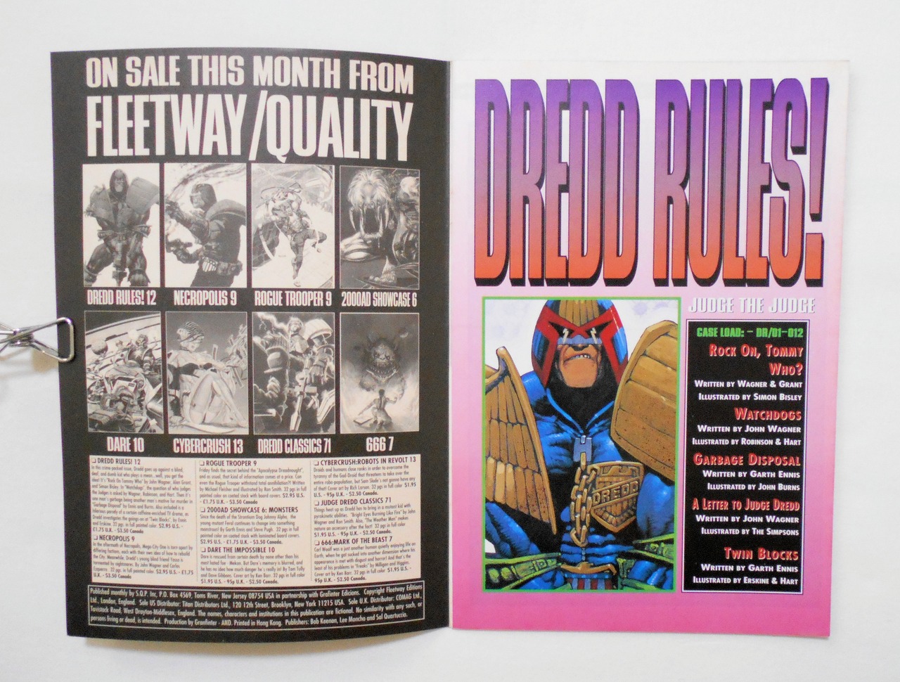 【DREDD RULES!】 #12◆中古アメリカン・コミック。英文表記の洋書となります。◆32ページ フルカラー 大きさ約26×17センチ◆SQ.P. INC./FLEETWAY EDITIONS LTD(UK)/TITAN DISTRIBUTORS LTD(US)◆WAGNER, GRANT & SIMON BISLEY による "ROCK ON, TOMMY WHO?" 収録。