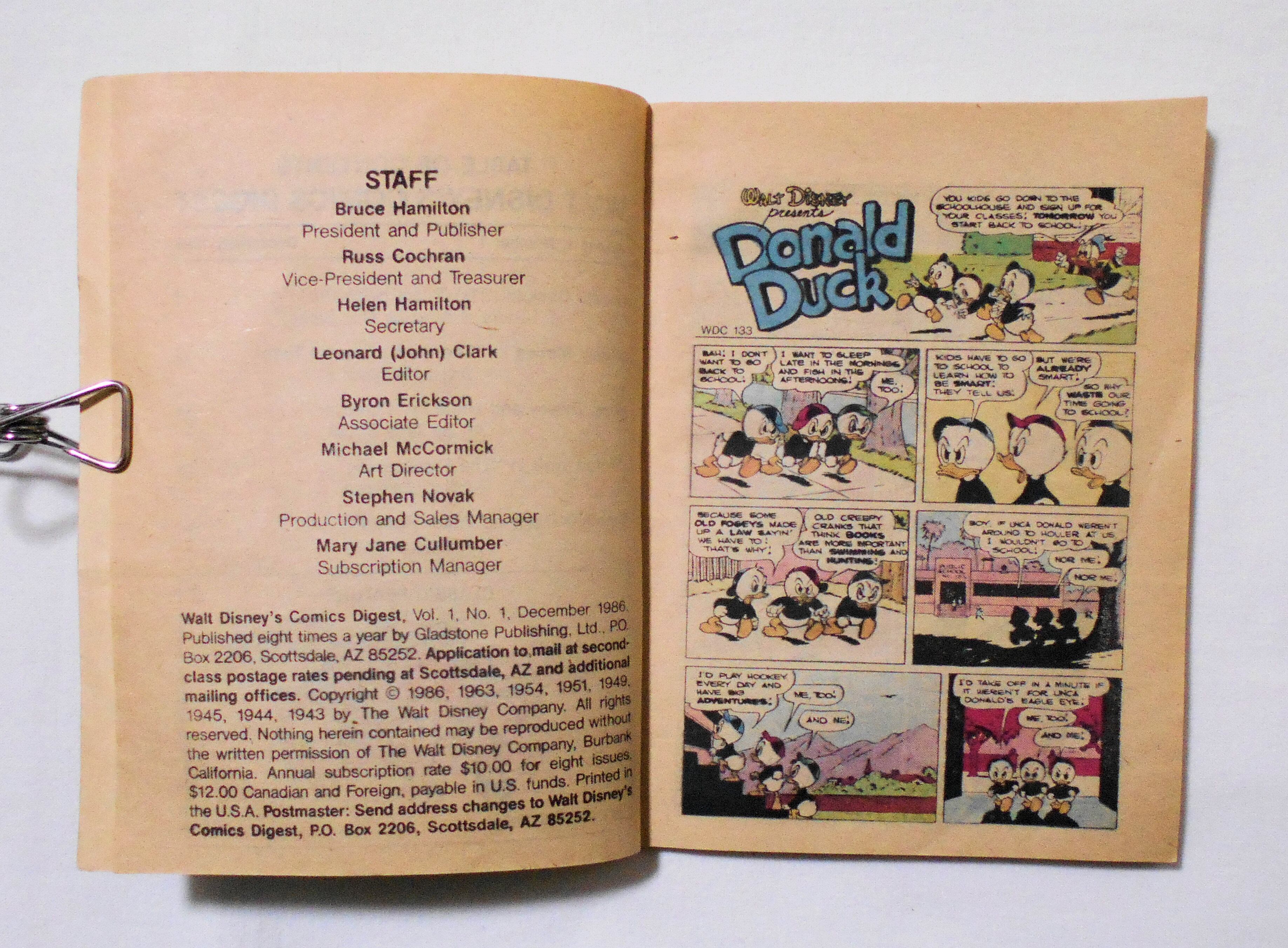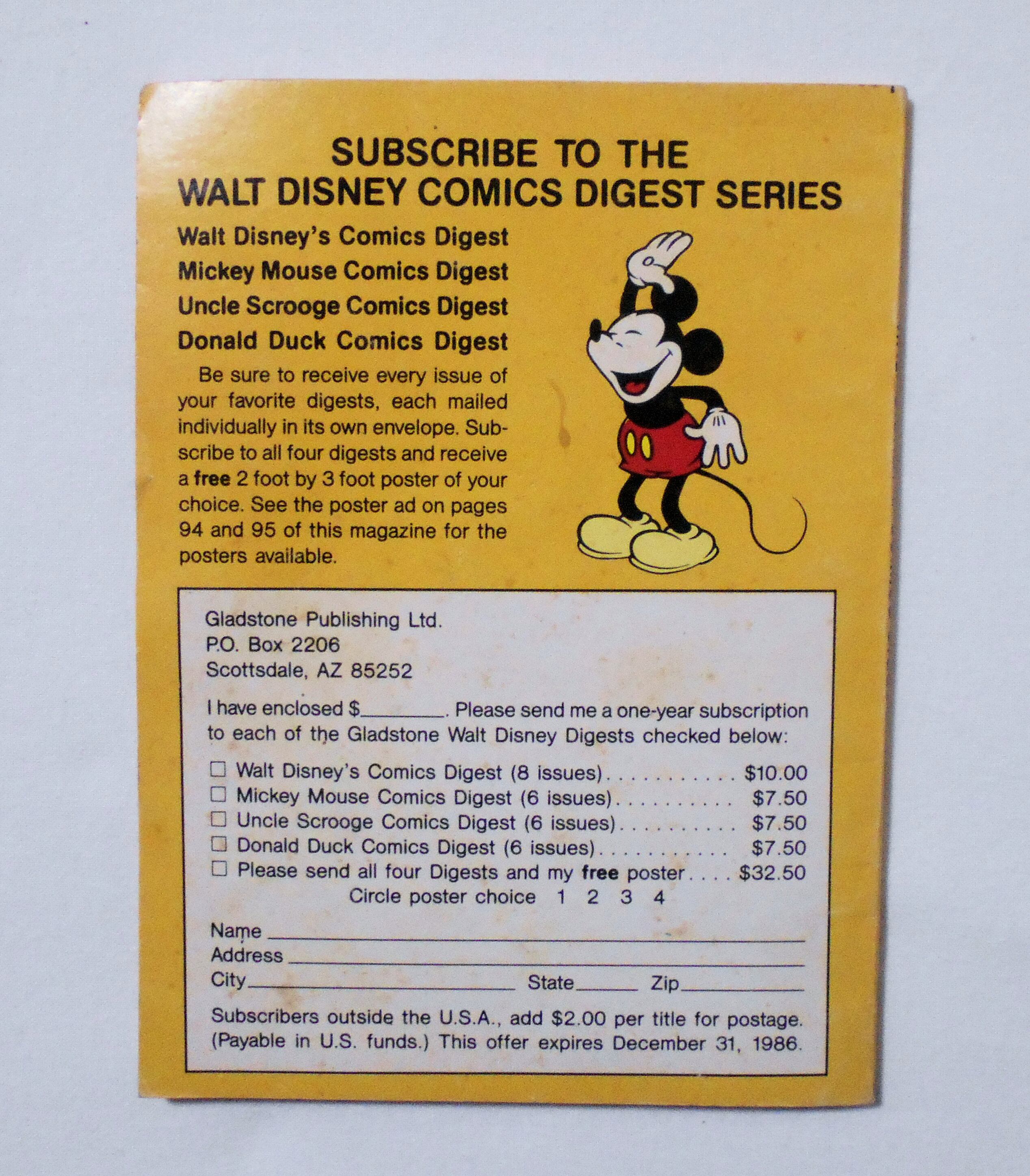 【WALT DISNEY'S COMICS DIGEST】 VOL.1 NO.1 GLADSTONE <1986年> DISNEY アメコミ アメリカンコミック | LINUS' BLANKET COMIC SHOP