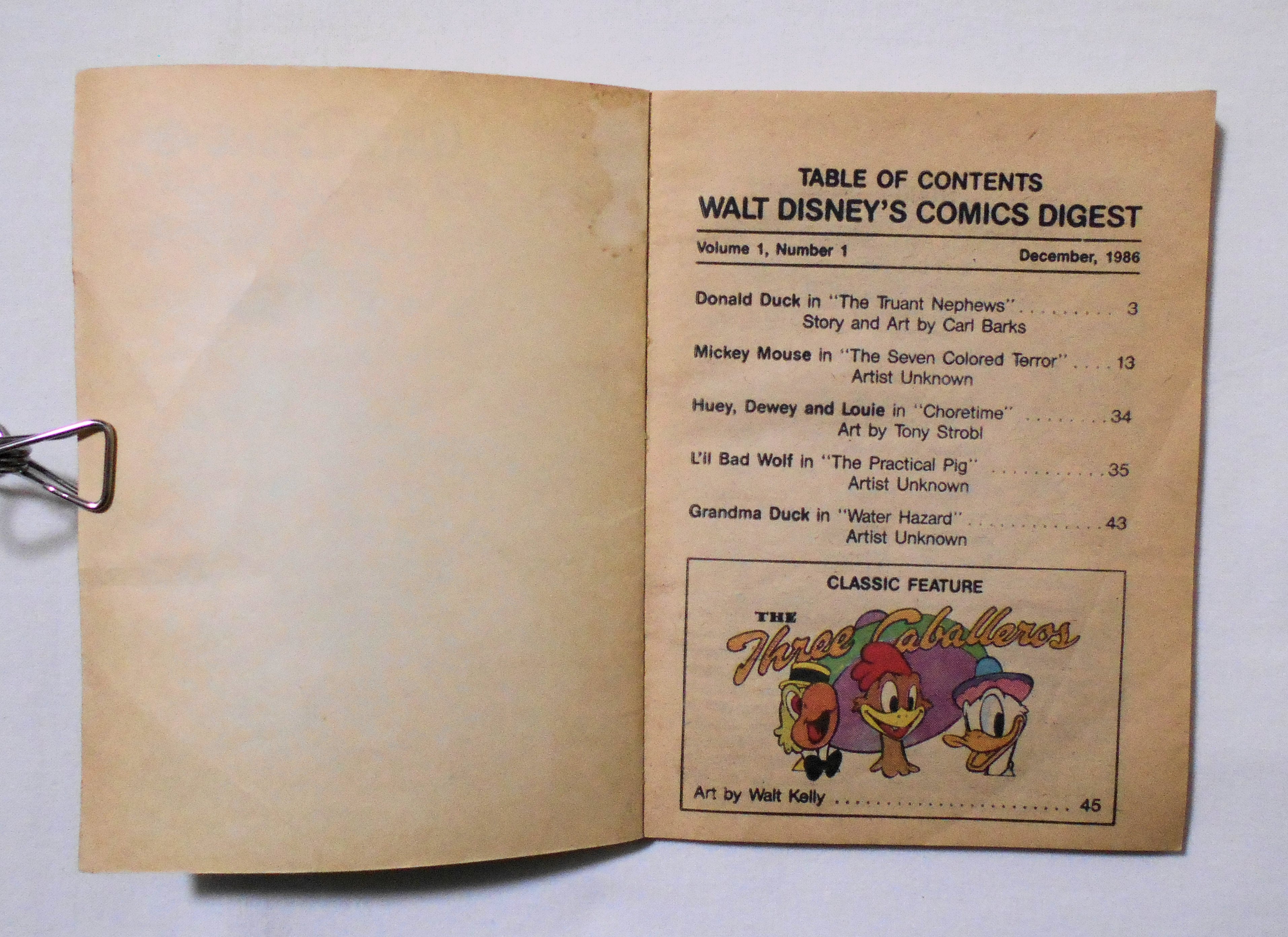 【WALT DISNEY'S COMICS DIGEST】 VOL.1 NO.1 DEC. 1986◆中古アメリカン・コミック。英文表記の洋書となります。◆96ページ フルカラー 大きさ約17×12.5センチ◆GLADSTONE PUBLISHING, LTD.◆COPYRIGHT 1982, 1963, 1954, 1951, 1949, 1945, 1944, 1943 by THE WALT DISNEY COMPANY