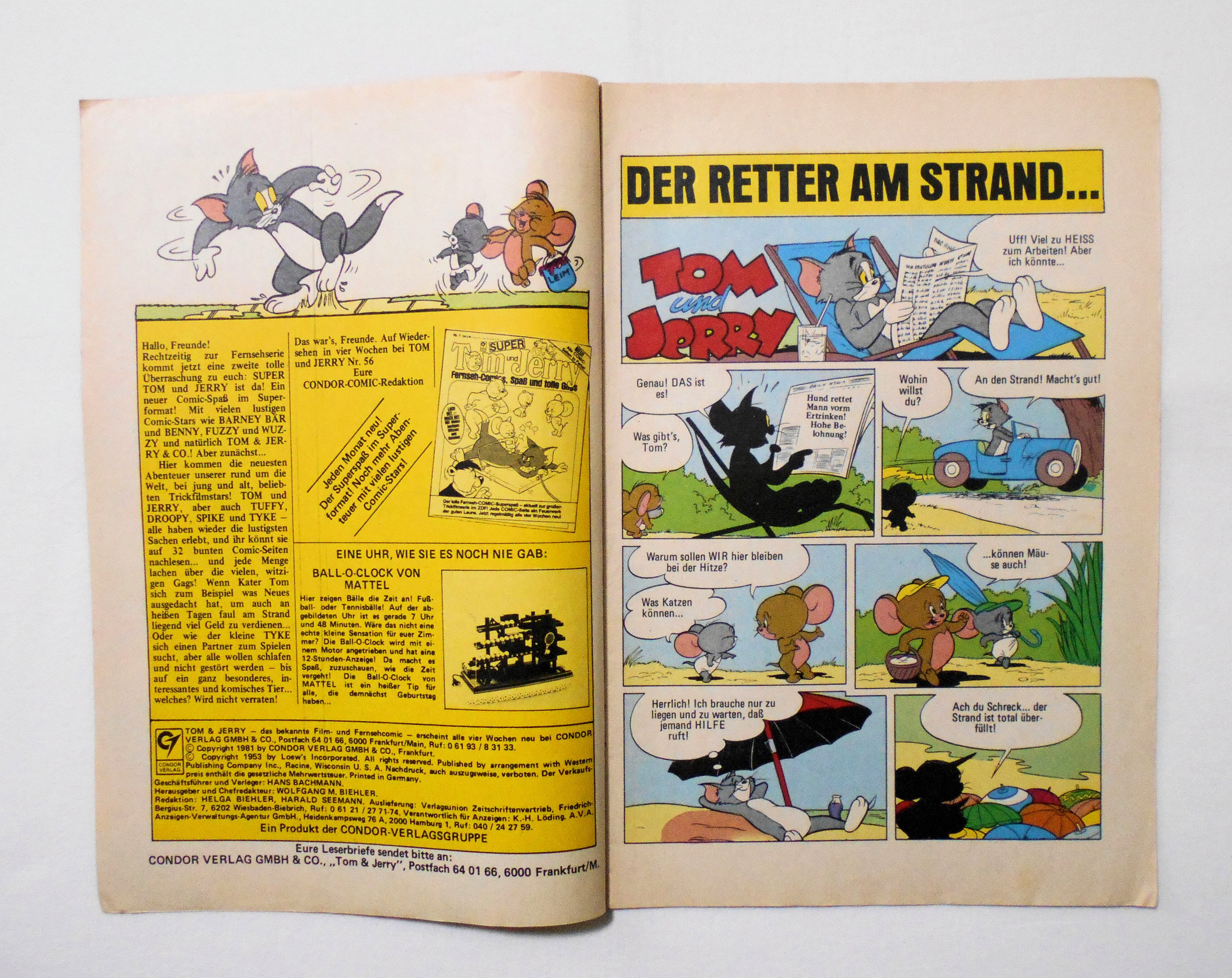 【TOM und JERRY】 Nr.55◆中古アメリカン・コミック。ドイツ語表記の洋書となります。◆28ページ フルカラー 大きさ約26×17.5センチ◆copyright 1981 by CONDOR VERLAG GMBH & CO. COPYRIGHT 1953 by LOEW'S INCORPORATED