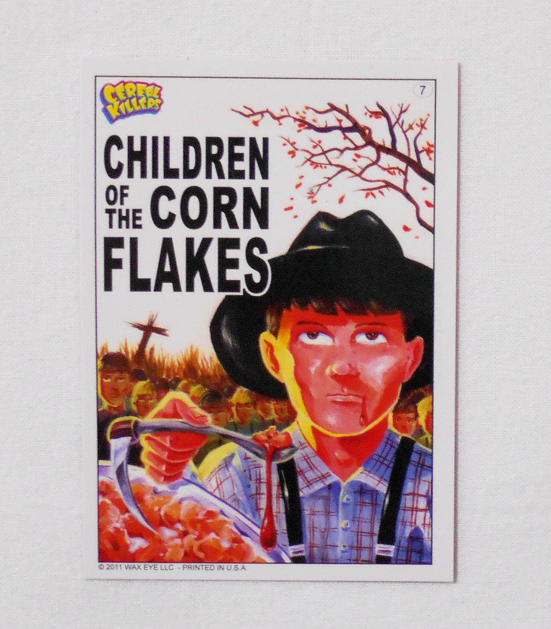 【NO.7 CHILDREN OF THE CORN FLAKES [CEREAL KILLERS TRADING CARDS 1st SERIES]】◆スティーヴン・キング原作のホラー映画『トウモロコシ畑の子供たち CHILDREN OF THE CORN』のパロディ◆大きさ約9×6.5センチ◆COPYRIGHT 2011 WAX EYE LLC ALL RIGHT RESERVED◆PRINTED IN USA