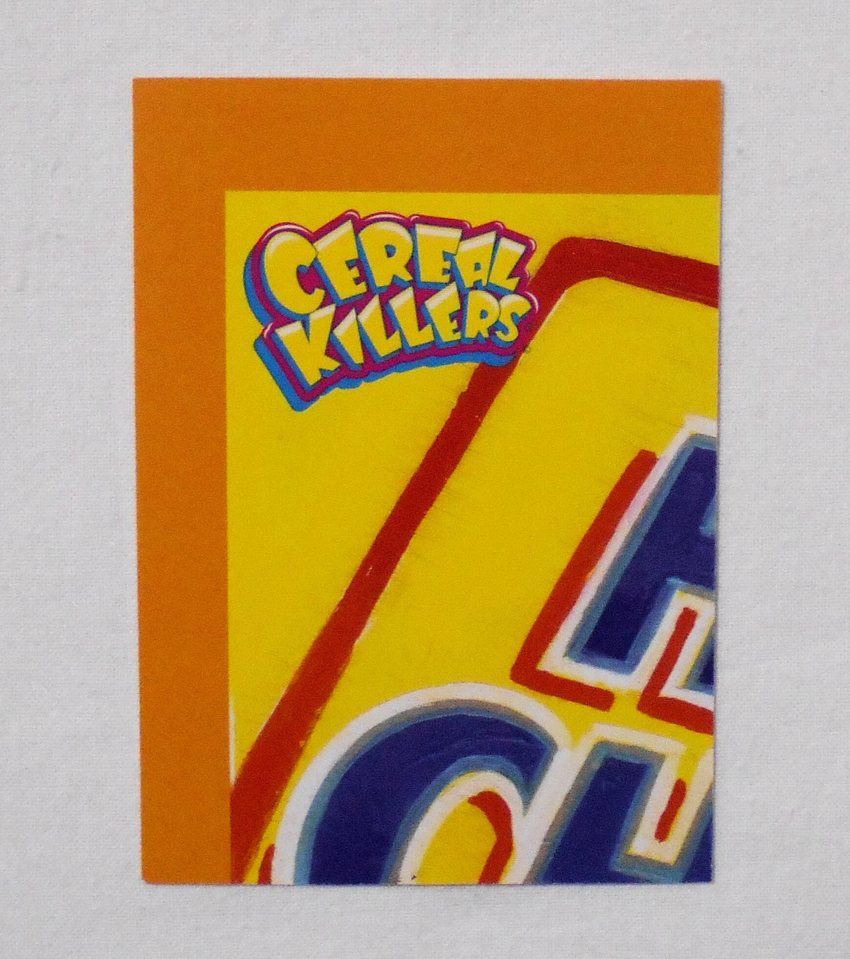 “シリアルキラー/異常連続殺人鬼”と、牛乳をかけて食べる”シリアル”の、"シリアル"繋がりで、アメリカのスーパーで売られているシリアルと、ホラー映画を組み合わせパロったシリアルキラーズ・ファーストシリーズ。カード裏もいろいろで、集めれば1枚の大きなカードになるパターンや、チェックリスト、ゲーム等、裏も注目です。